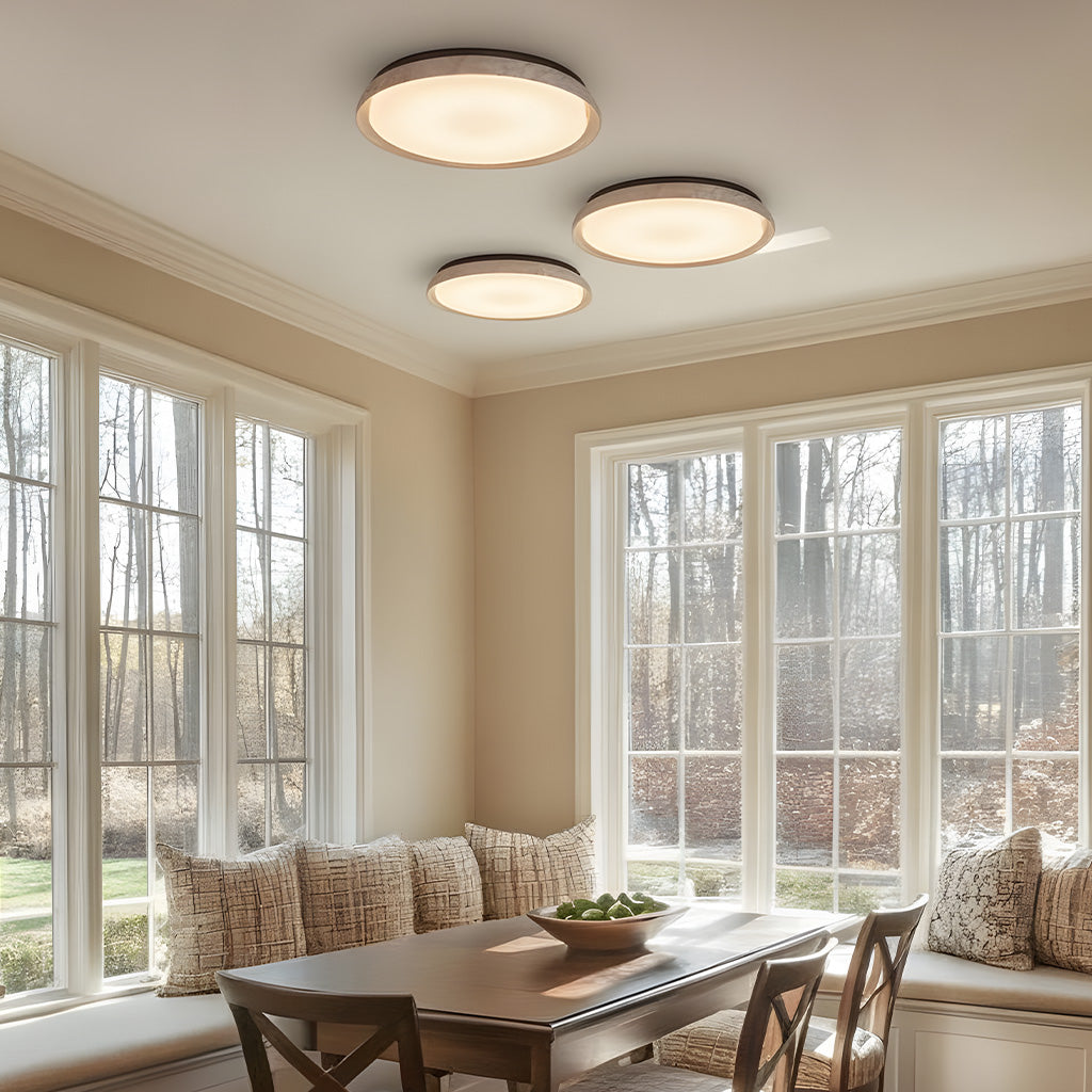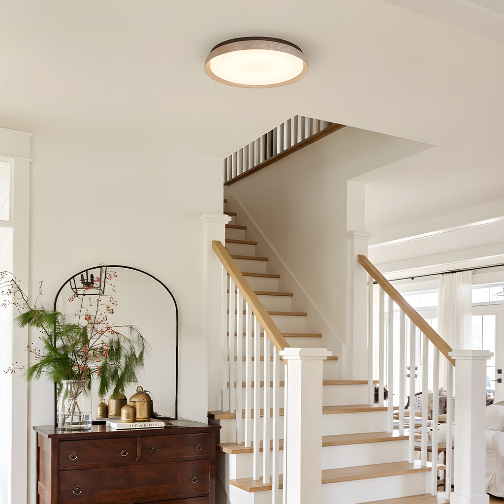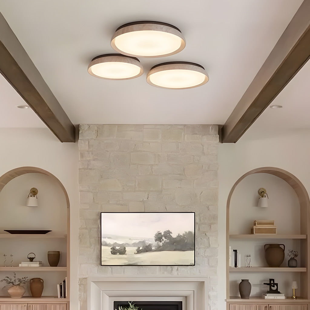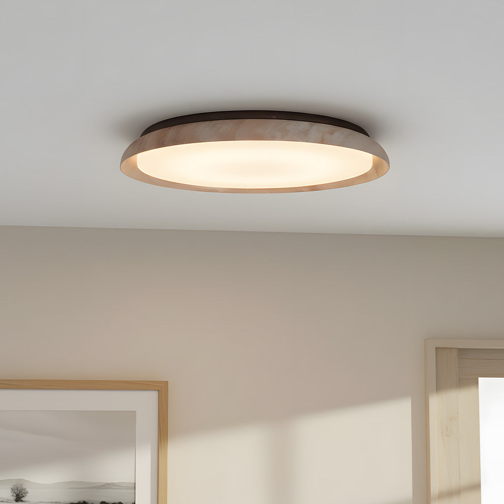 This round ceiling light pairs a travertine-inspired frame with soft, diffused LED lighting for a modern yet natural look.Its rounded shape and gentle glow bring quiet style to any minimalist space.