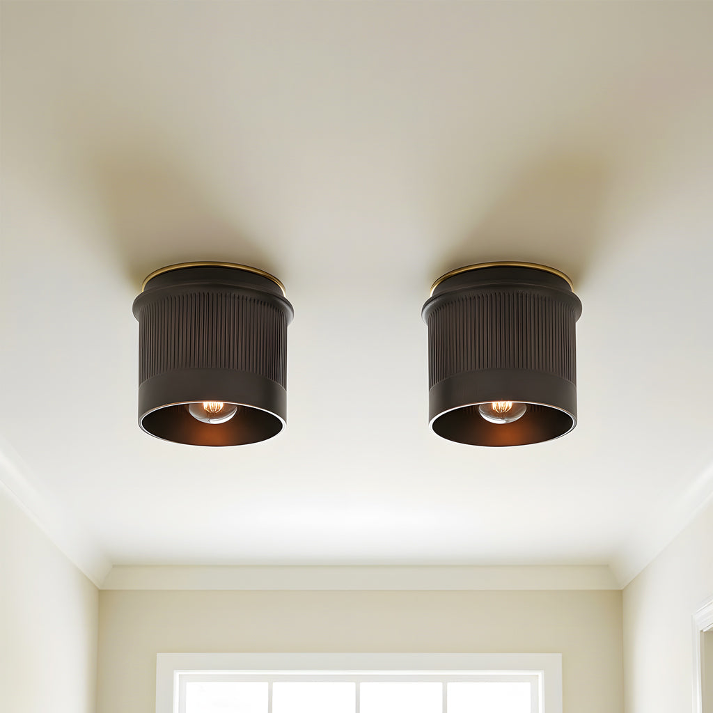 Vintage Rustic Black Metal Industrial Flush Mount Ceiling Light