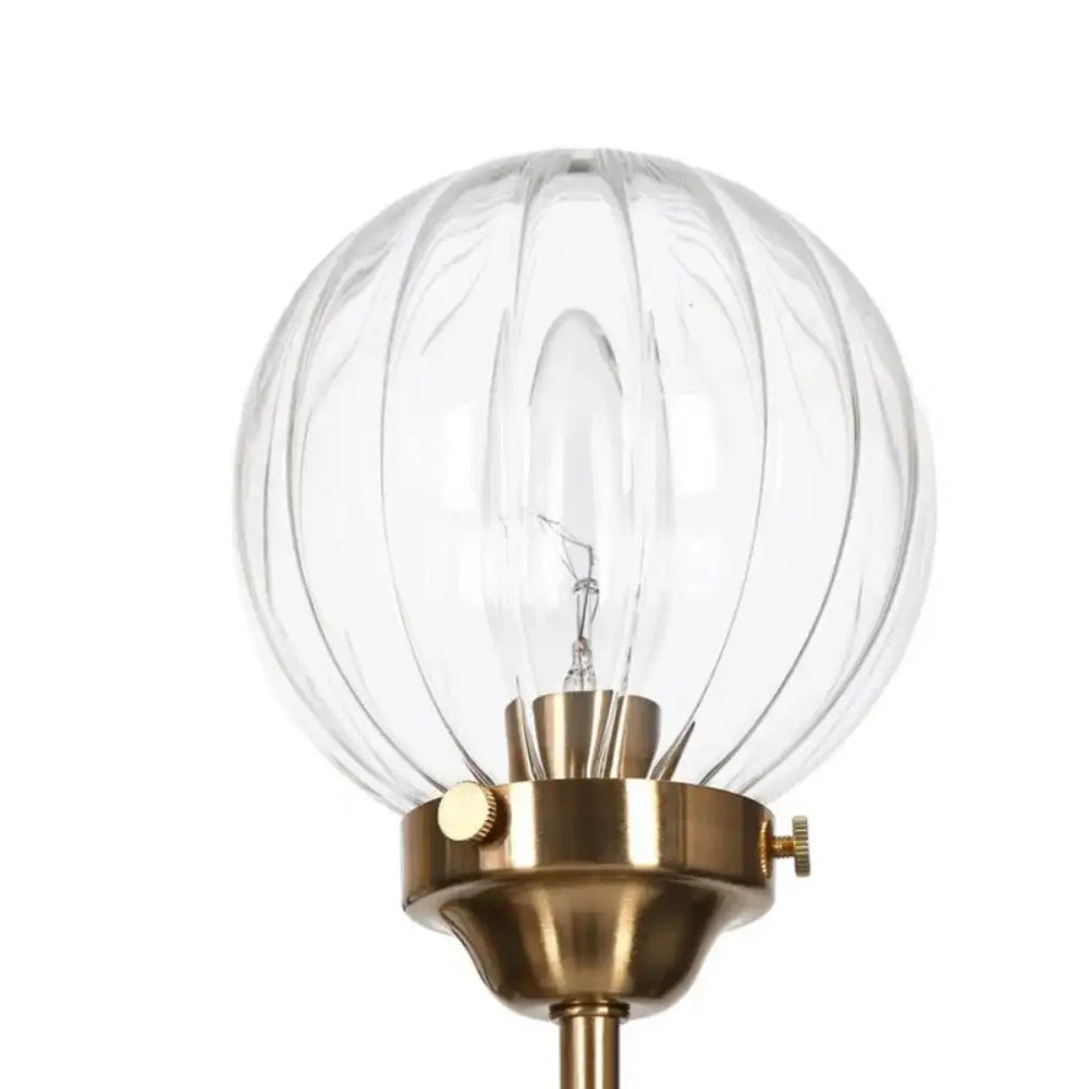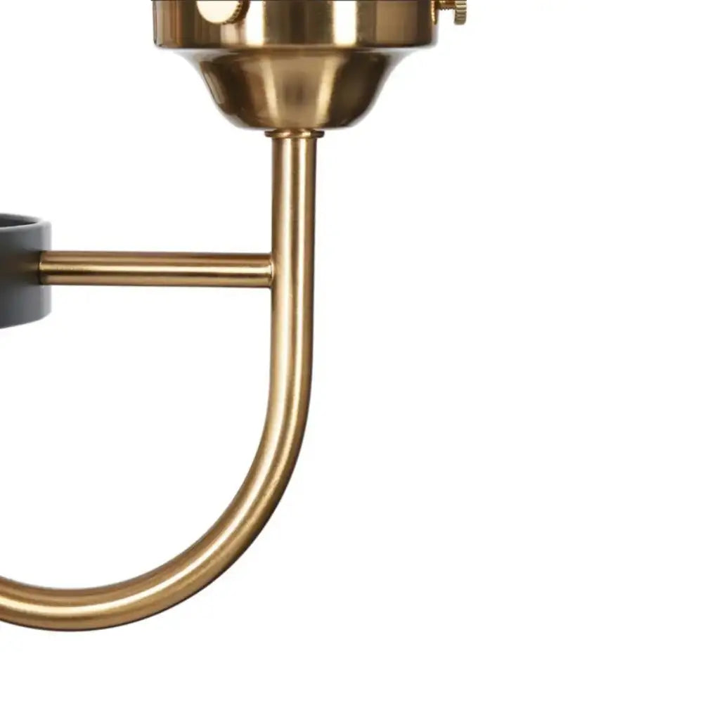 This Chandelier features a polished brass & matte black frame and pumpkin ribbed clear glass shades. It is adjustable and suitable for bedrooms and living rooms, blending medieval charm with modern style.
