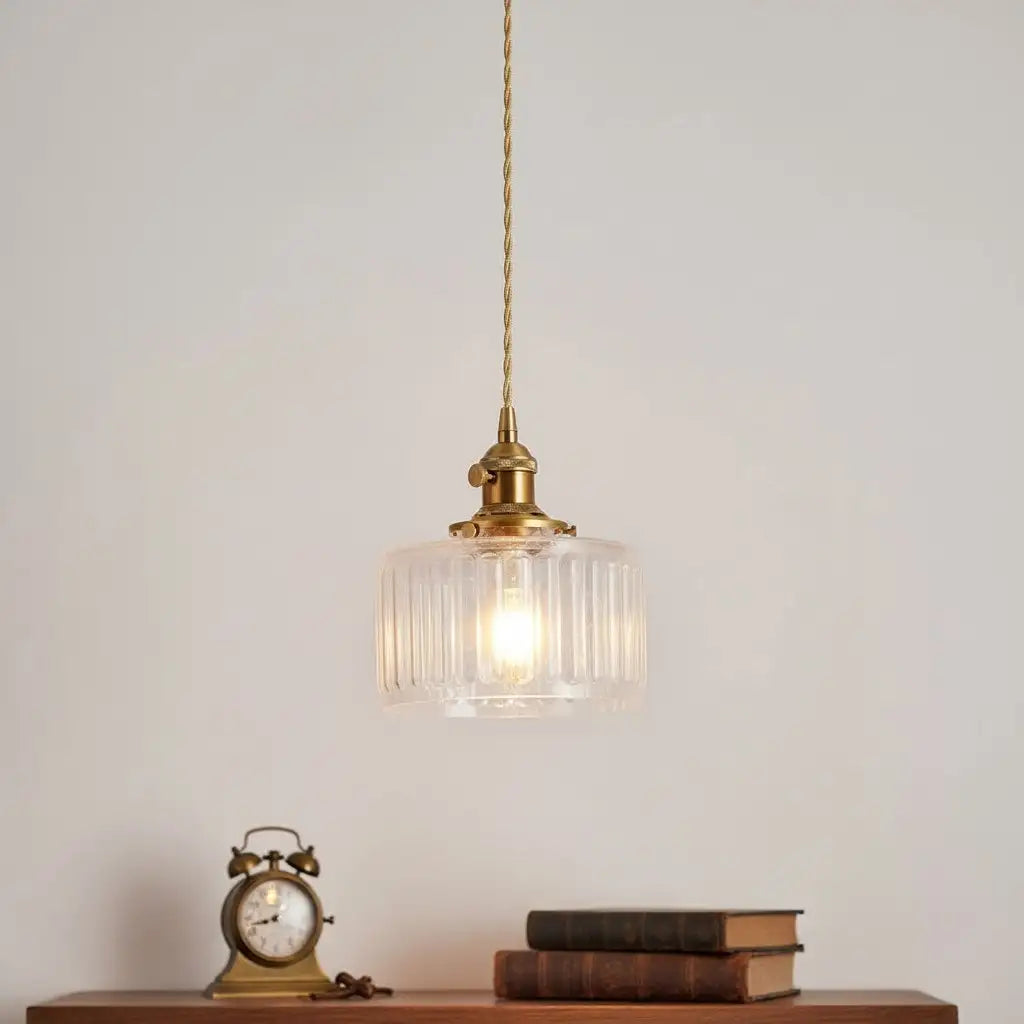 Brass and ribbed clear glass exude classic nostalgic atmosphere.