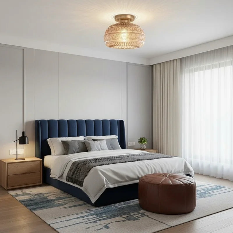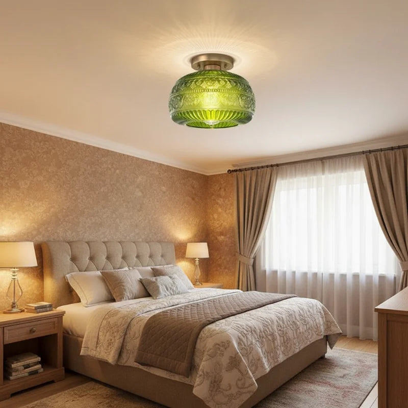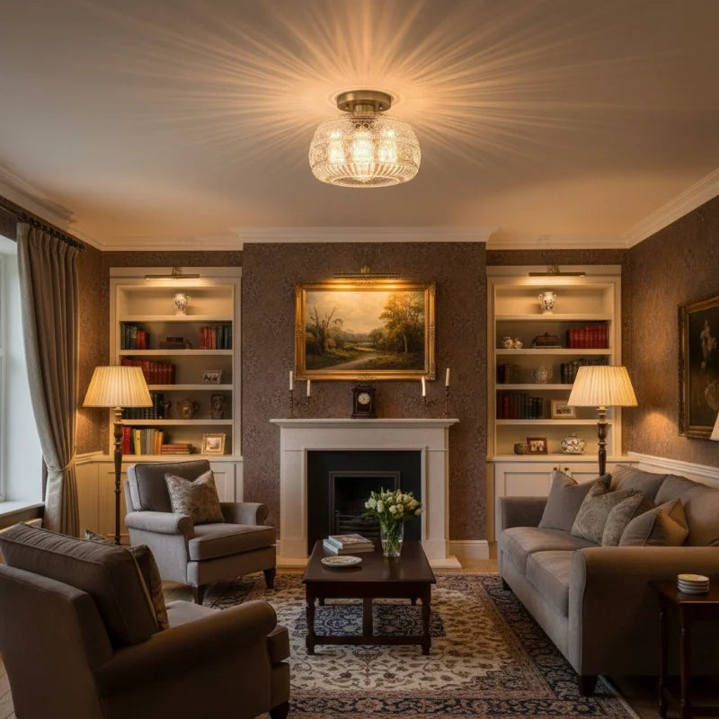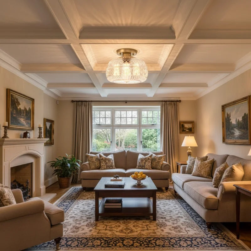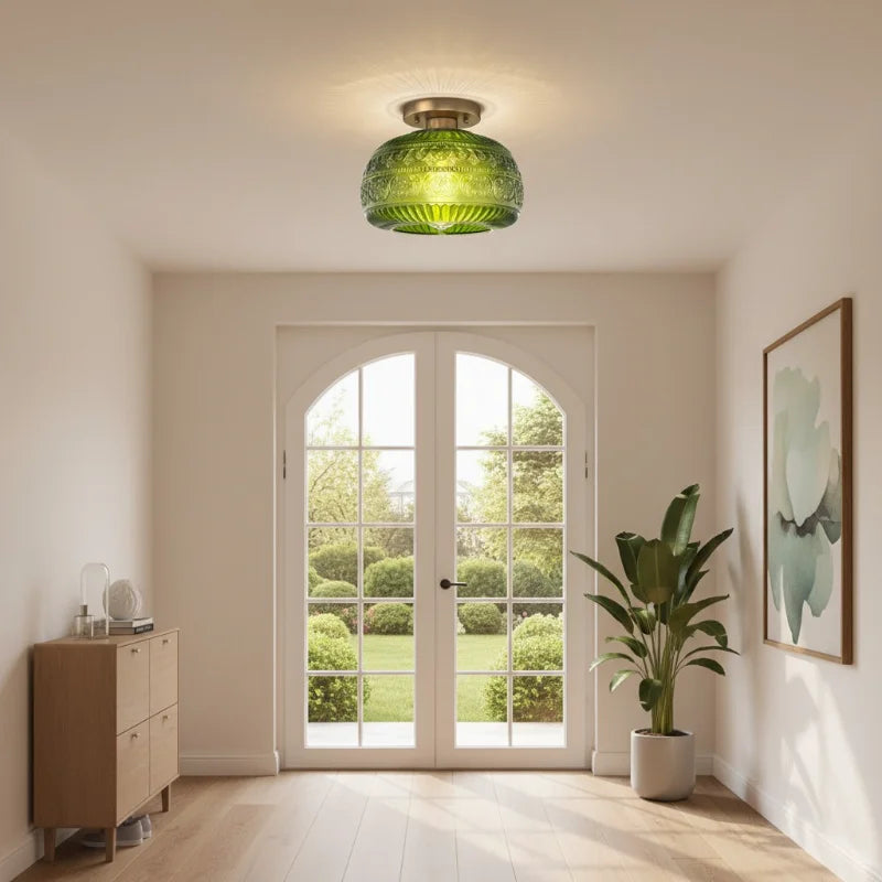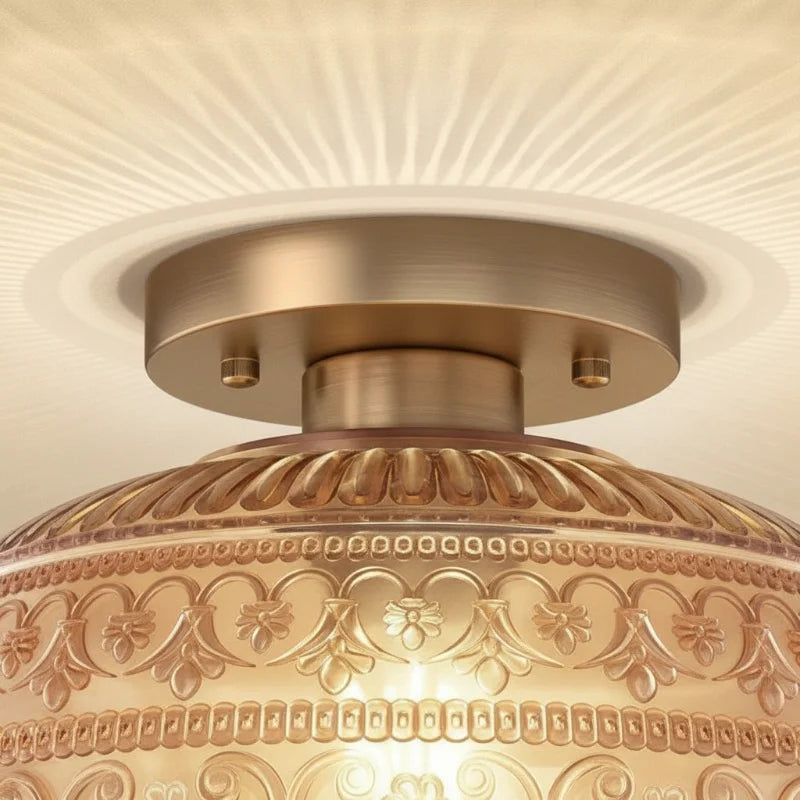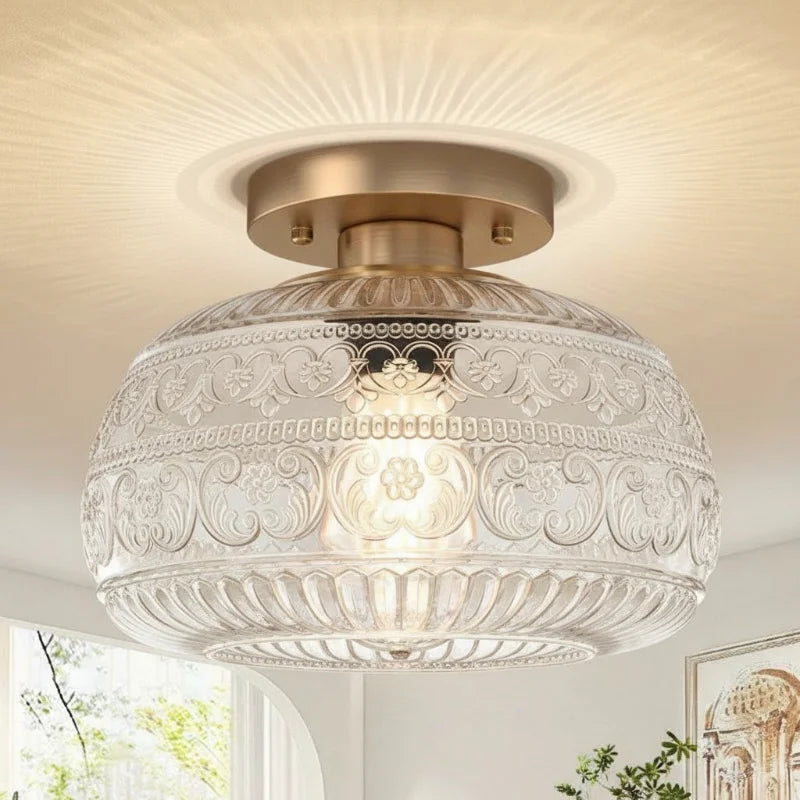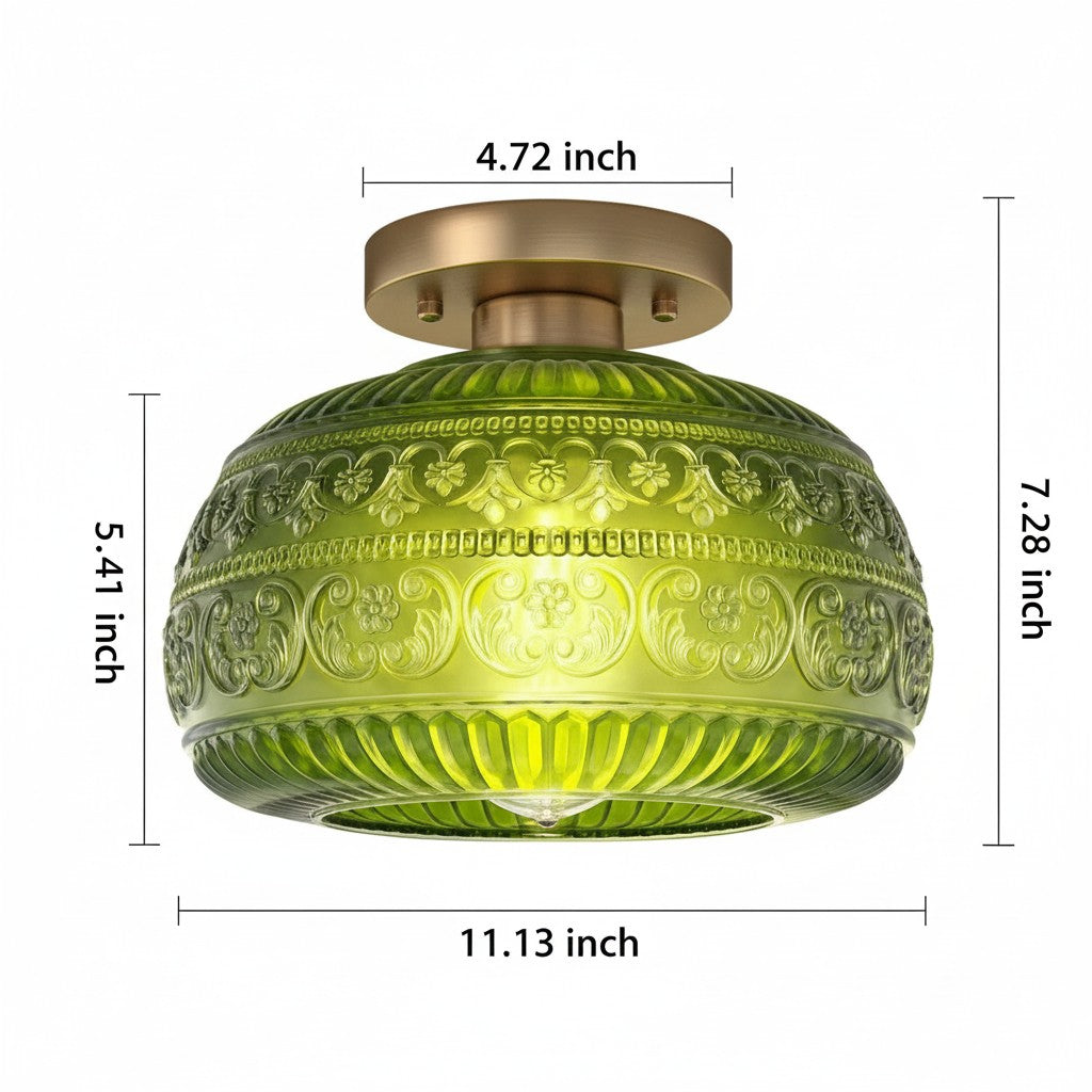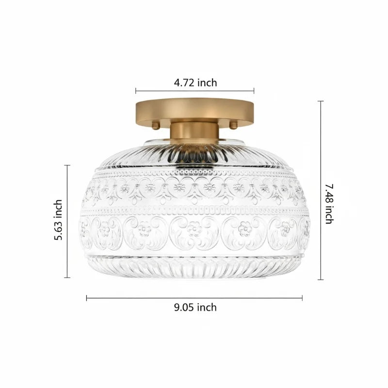 Elevate your interior with the exquisite charm of our Oval Semi Flush Mount Ceiling Light, a perfect fusion of Vintage character and Modern sensibility. It is adorned with a beautifully detailed Carved Glass shade, featuring an intricate Relief Sculpture Pattern that casts captivating shadows and creates a warm, inviting ambiance.