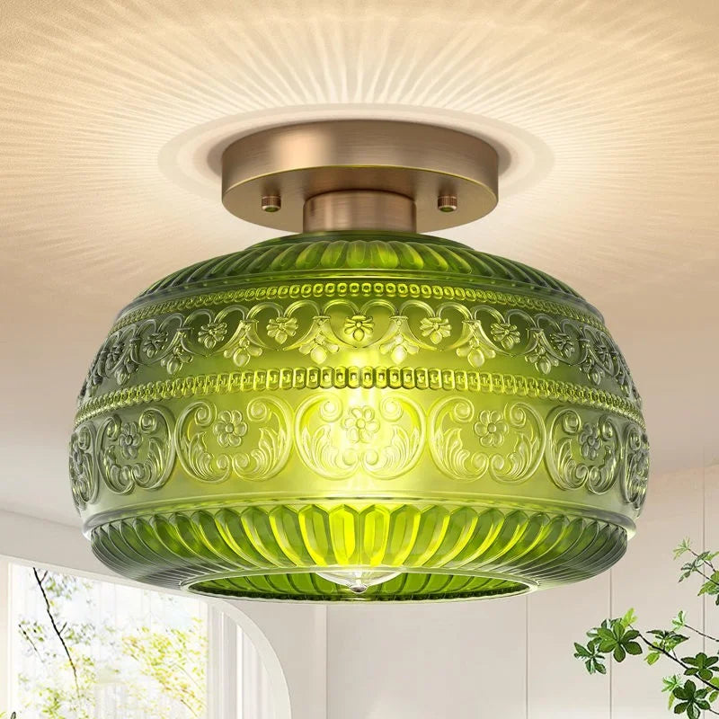 Oliver Carved Glass Oval Vintage Semi Flush Mount Ceiling Light