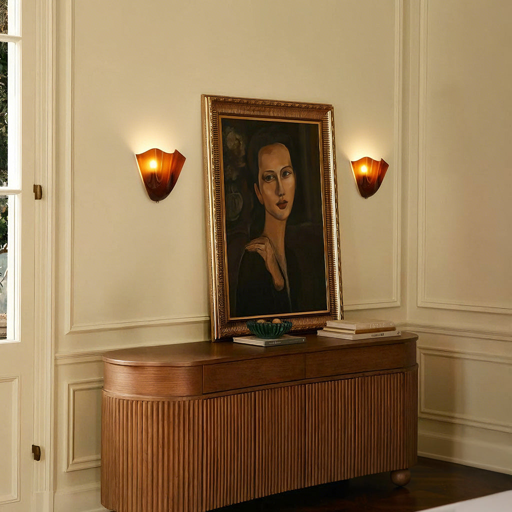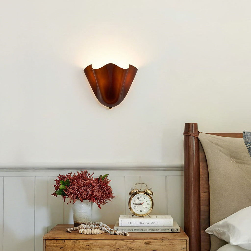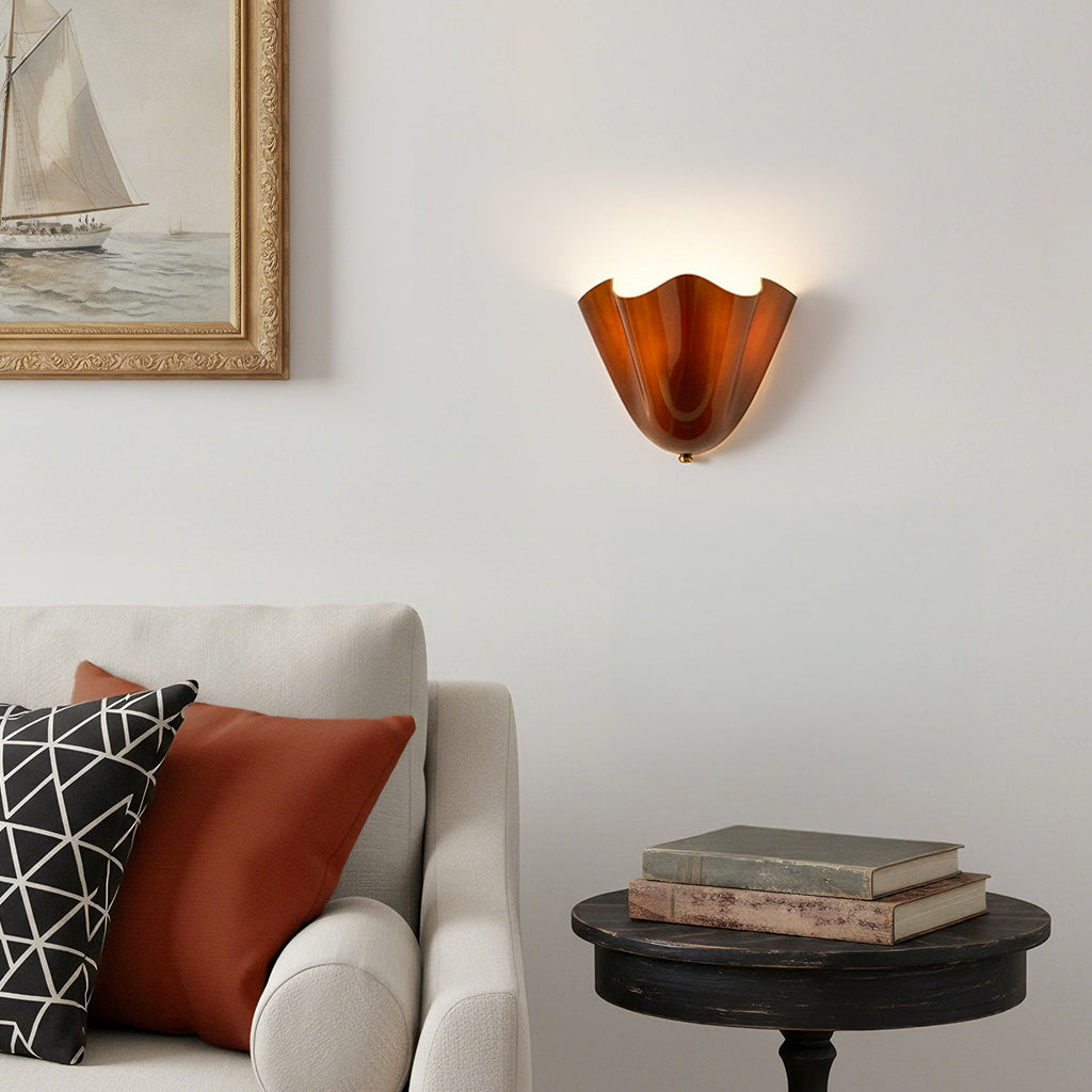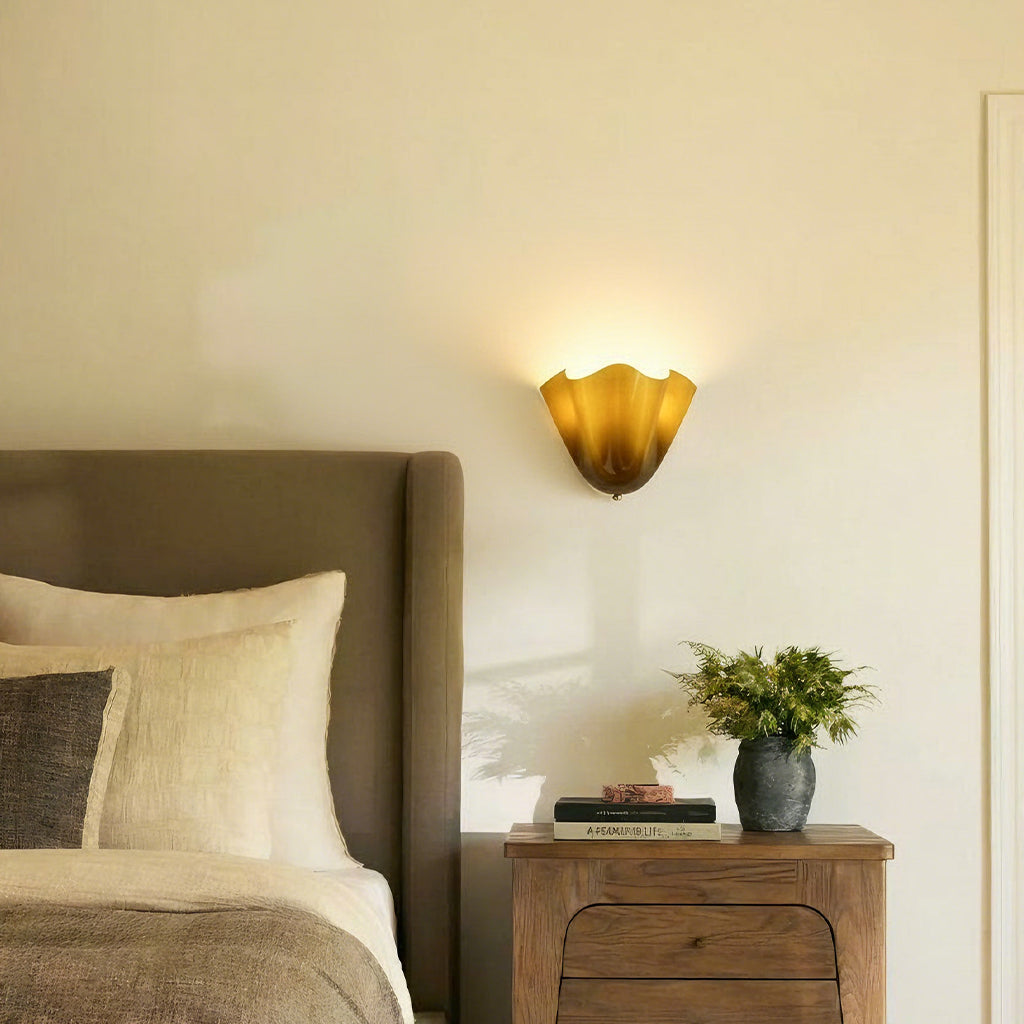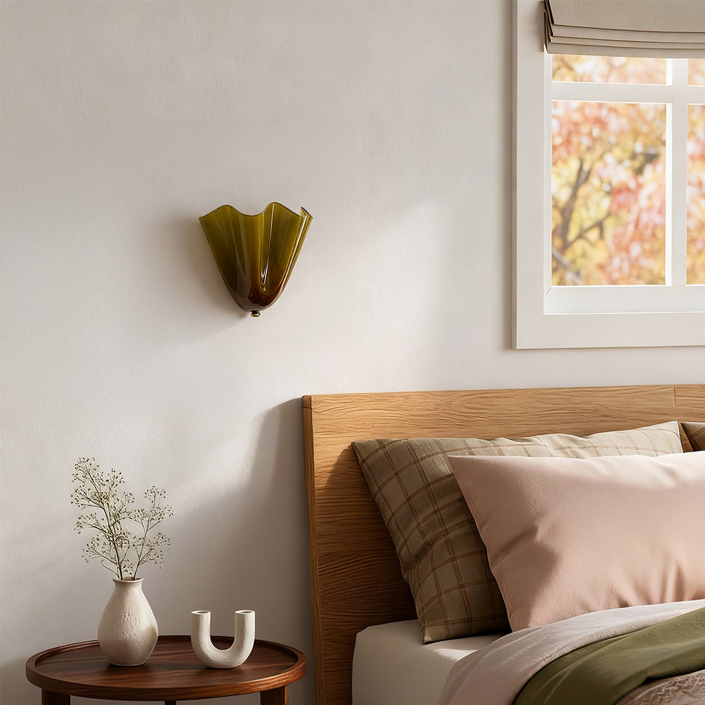 The Beatrice Wall Sconce captures mid century modern elegance with its seashell shaped glass design. Its artistic charm and warm glow bring a refined accent, making it ideal for bedrooms, living rooms, or hallways.