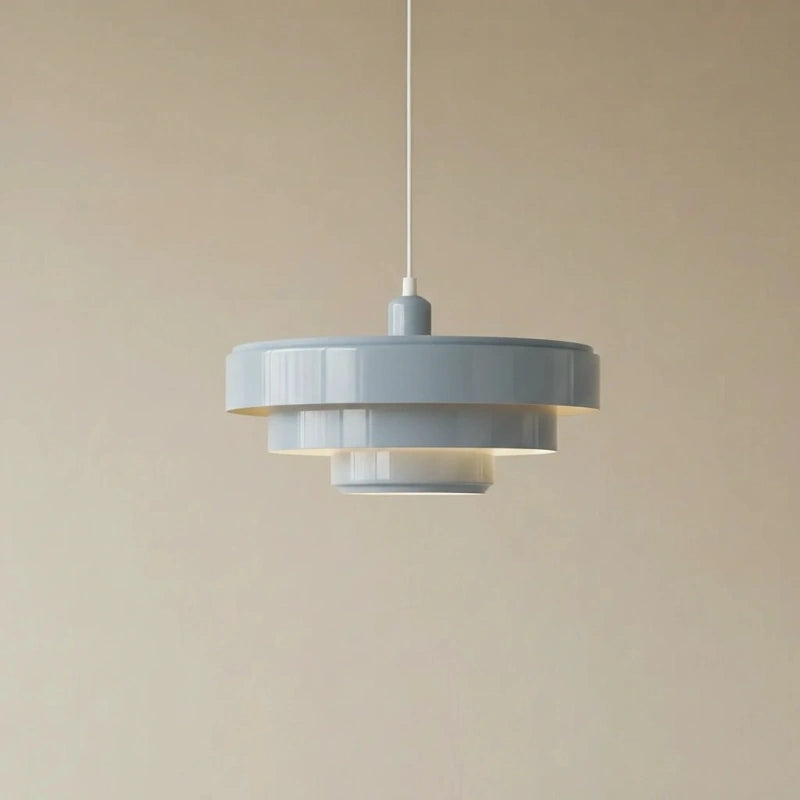 The Aetna Pendant Light combines Nordic charm with a striking triple layer disc design. Its vivid colors and aluminum shade create unique appeal, ideal for dining rooms, kitchens, and creative studios.