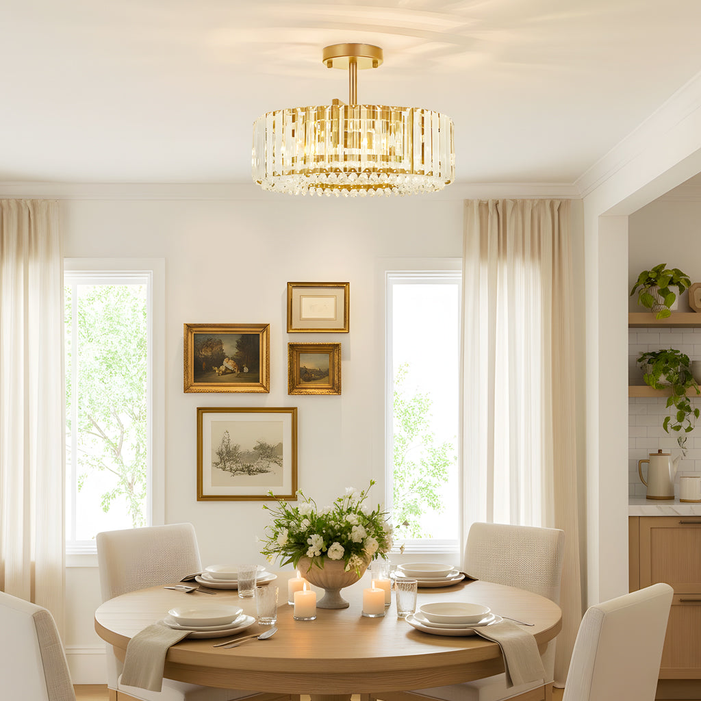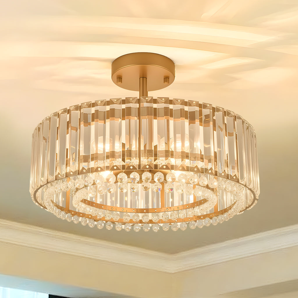 Avra Luxury 4-Light Drum Crystal Semi Flush Mount Light