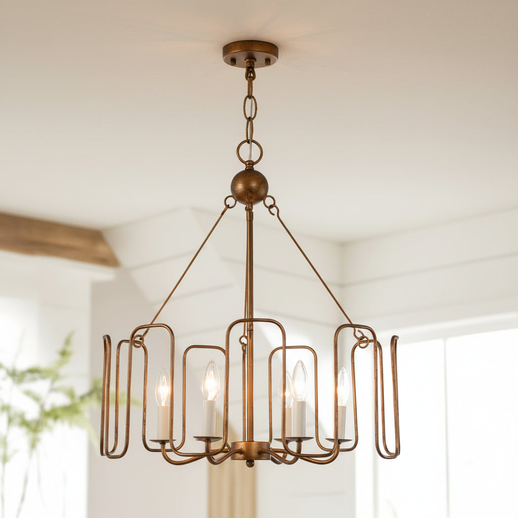 This vintage-rustic chandelier features a sleek metal cage frame that blends mid-century charm. With support for six dimmable bulbs, you can easily adjust the ambiance, blending vintage charm, rustic warmth, and practicality.