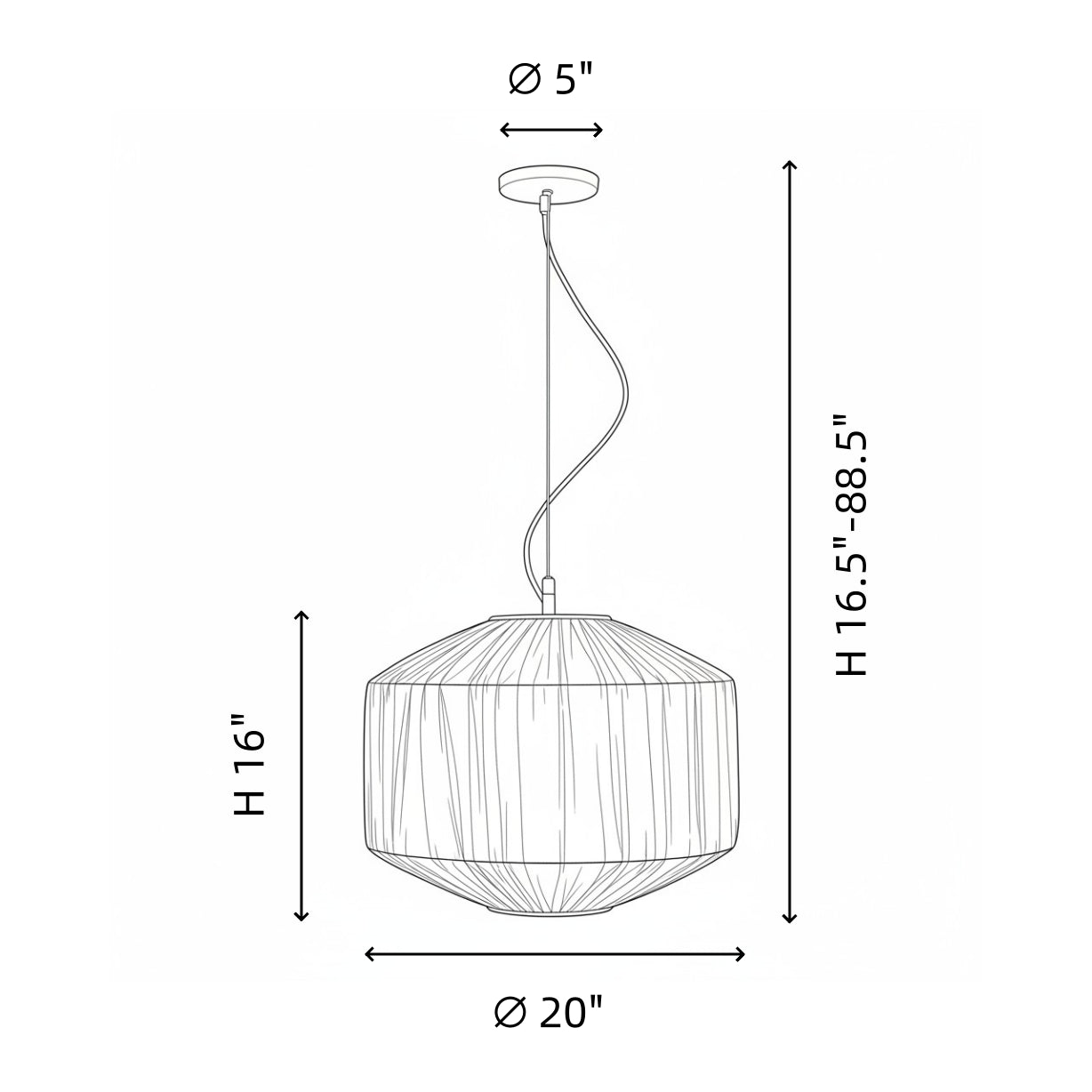 | Size-1 | 20" Dia x 16.5" - 88.5" H |