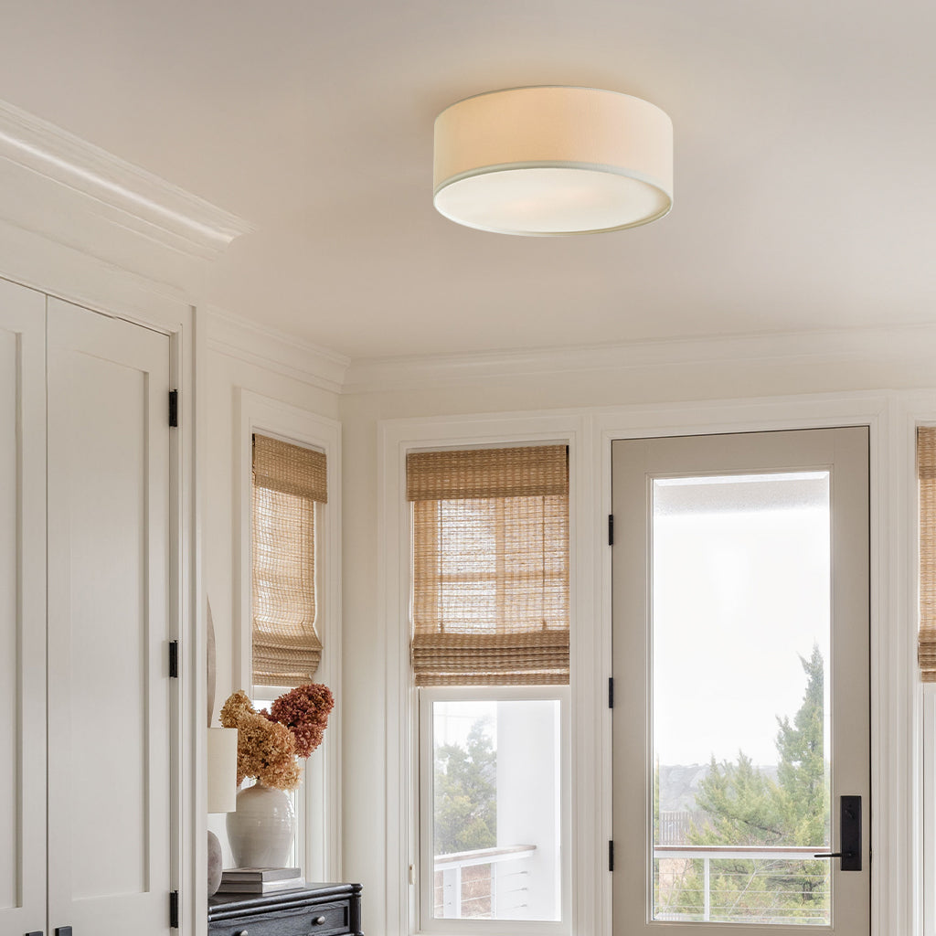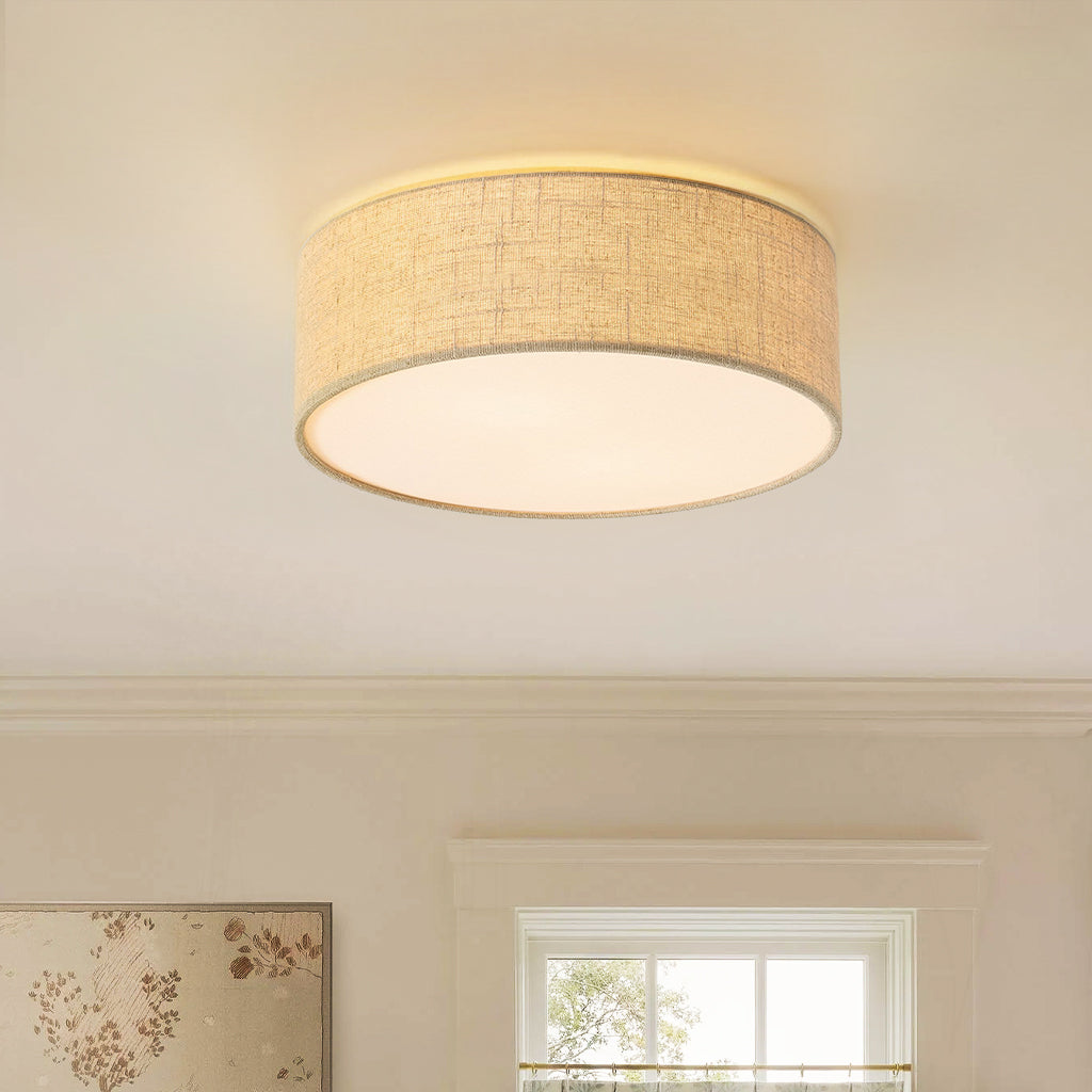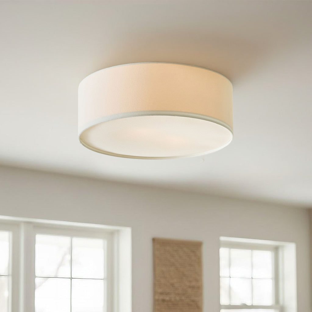 Add understated elegance to your space with this linen drum flush mount. Its iron frame and fabric shade emit a soft, diffused glow, while the low-profile design offers modern sophistication perfect for bedrooms, hallways, and entryways with lower ceilings.