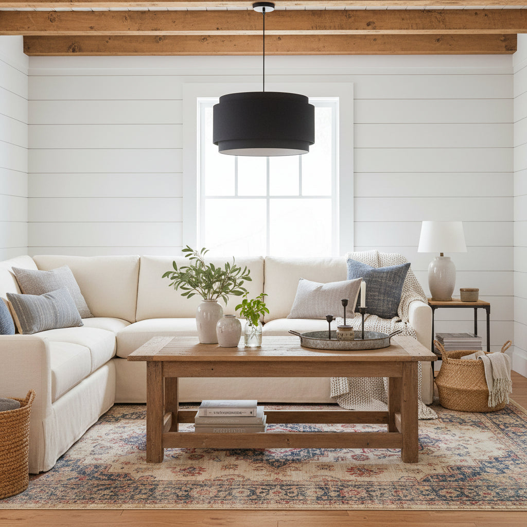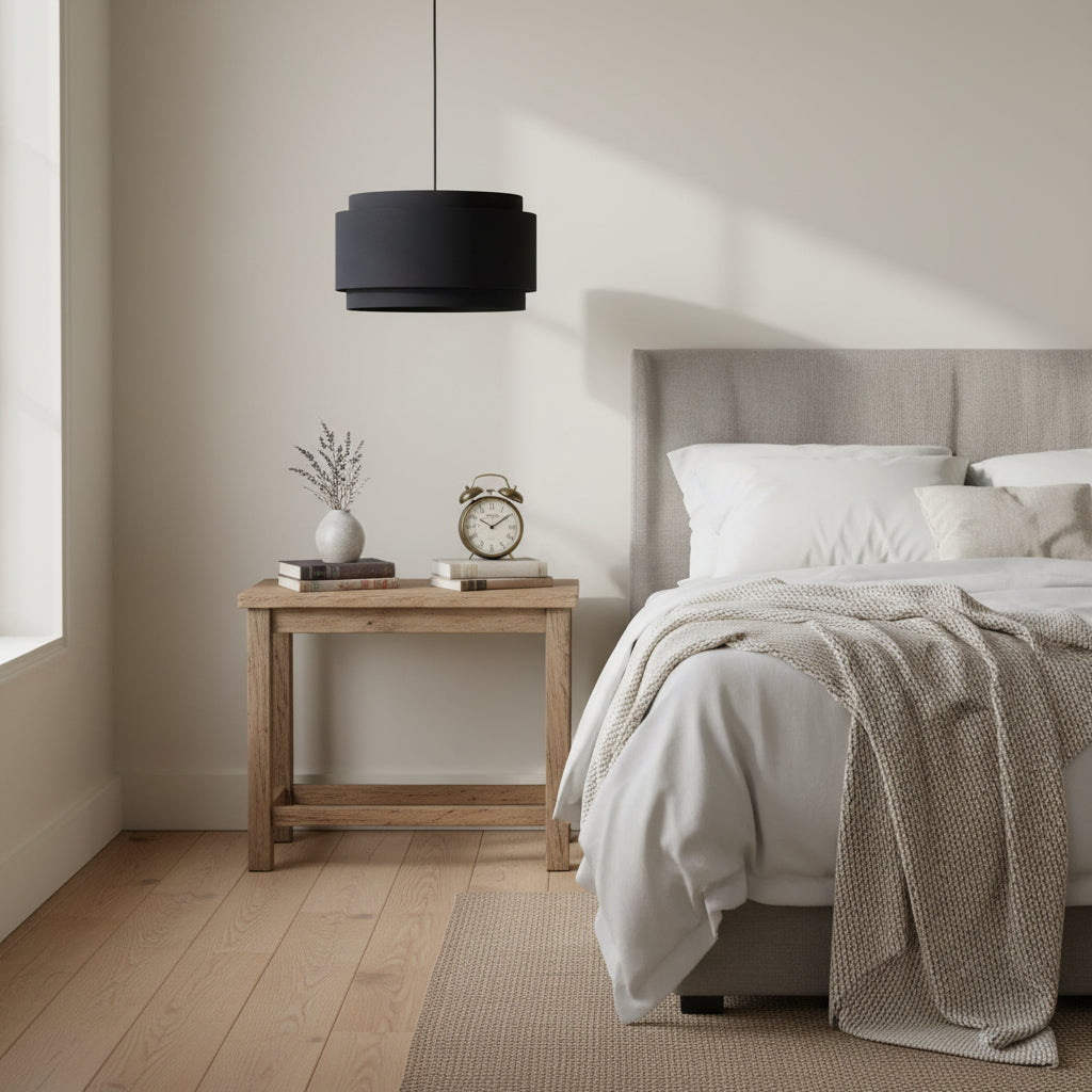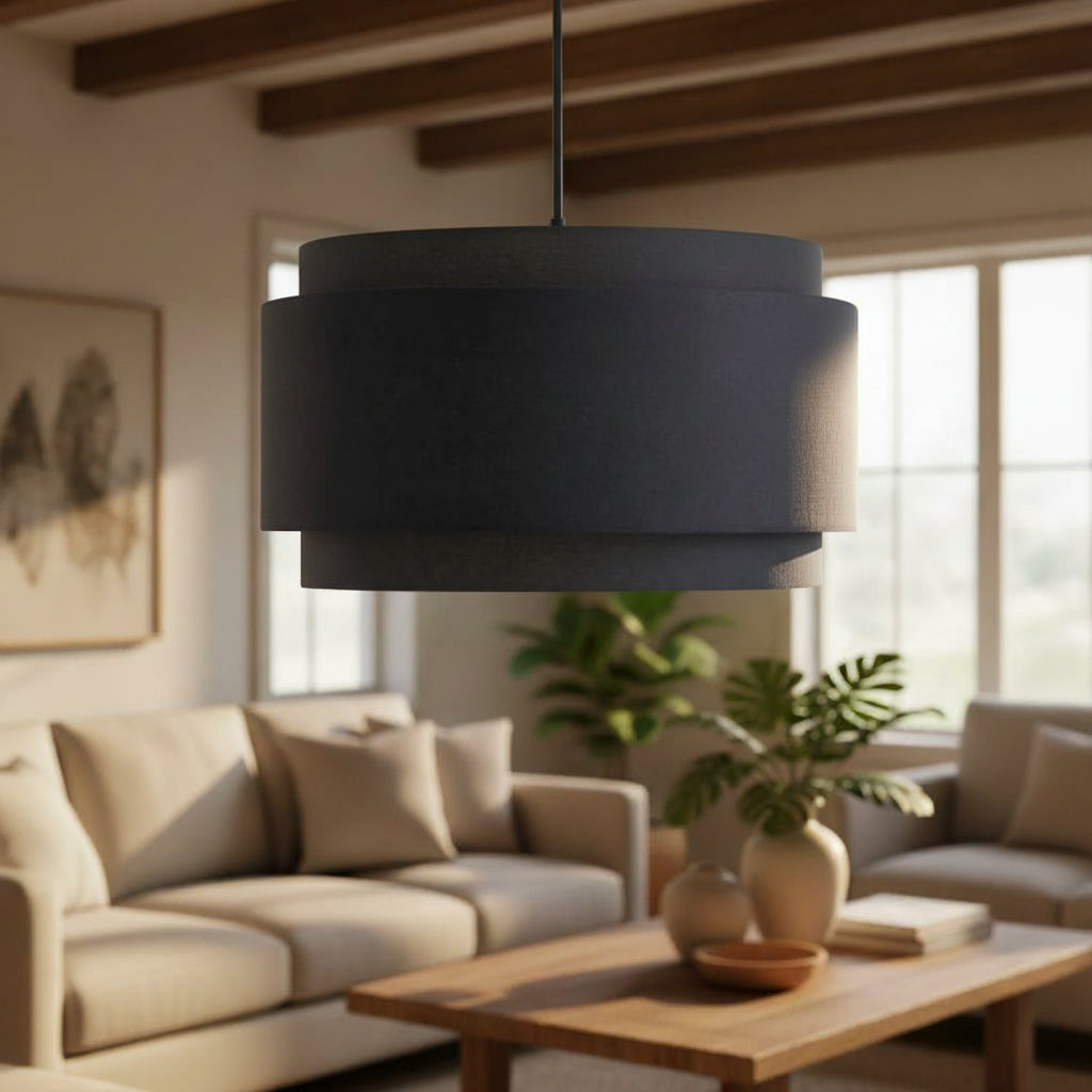 The Hayden Modern Linen Drum Pendant Light, with its layered linen drum shade, adds a touch of modern elegance to any space, blending style and warm illumination seamlessly.