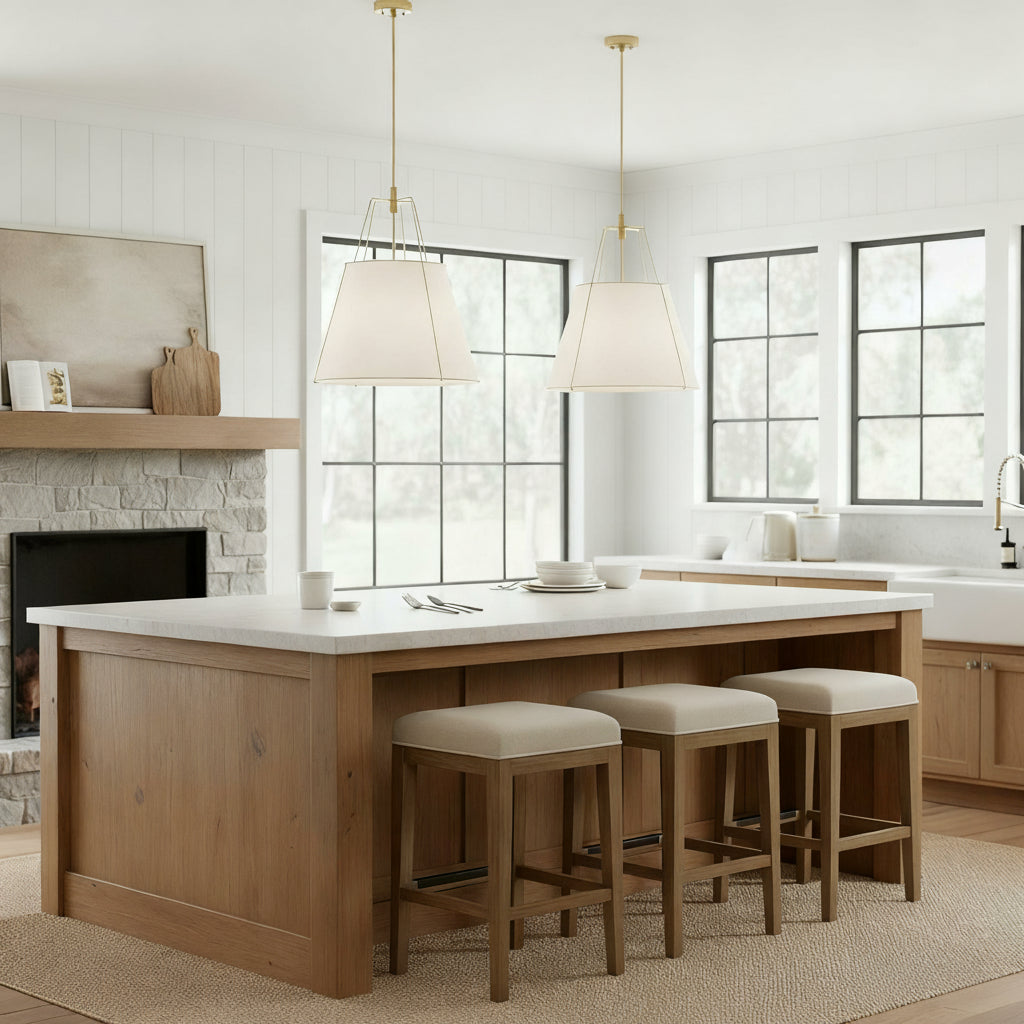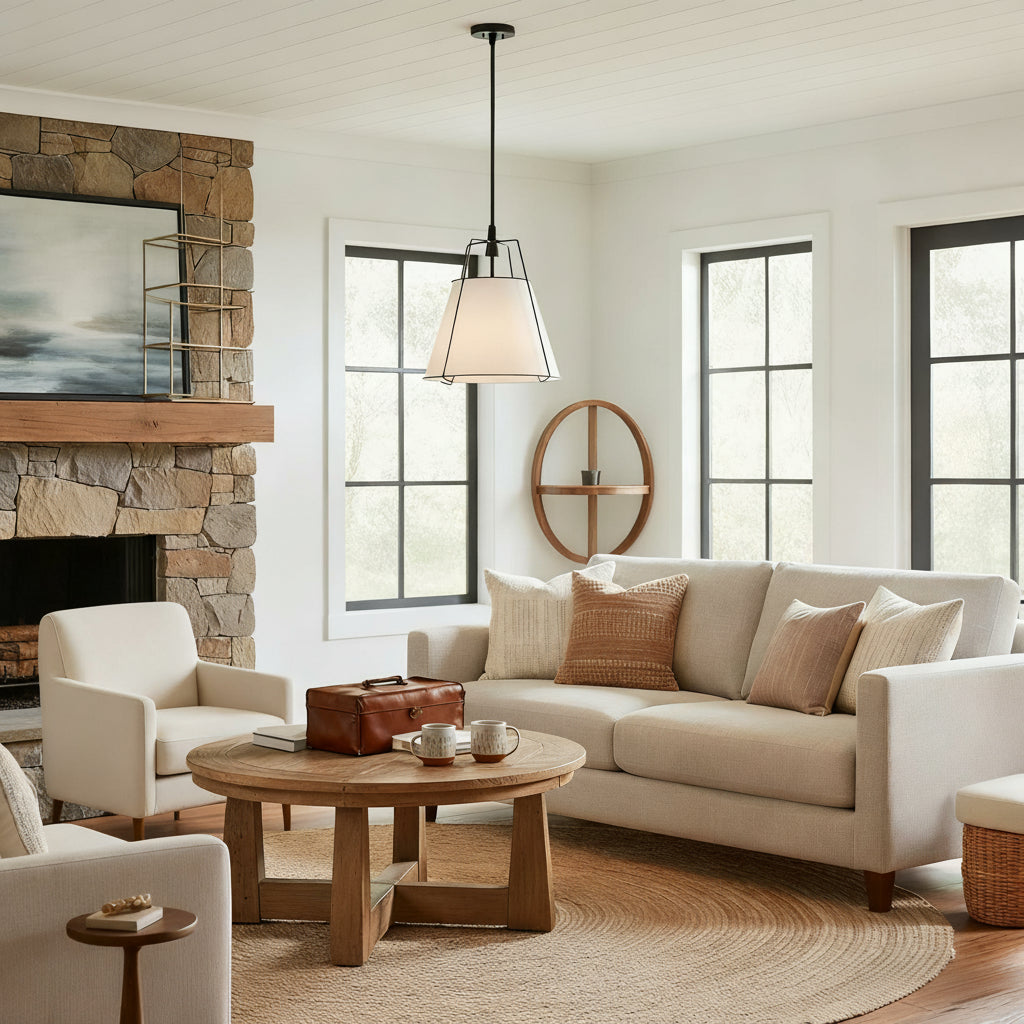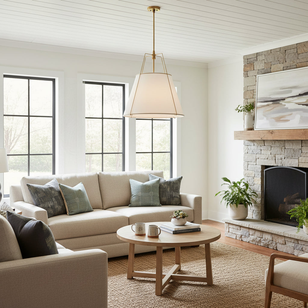 The Lethe Pendant Light combines a sleek drum silhouette with a soft fabric shade, casting a warm, inviting glow. Its versatile design with adjustable hanging height makes it ideal for dining rooms, living areas, or bedrooms.