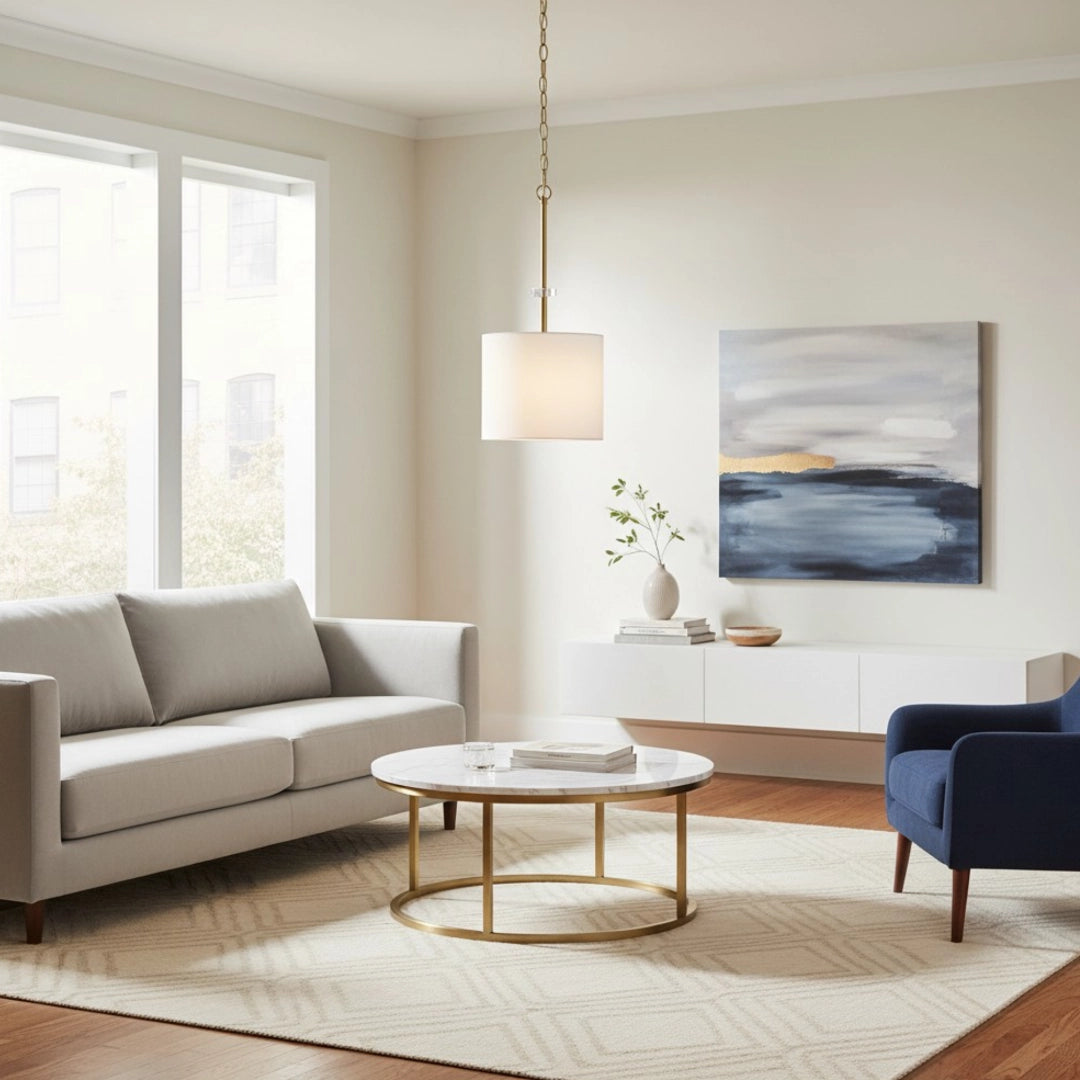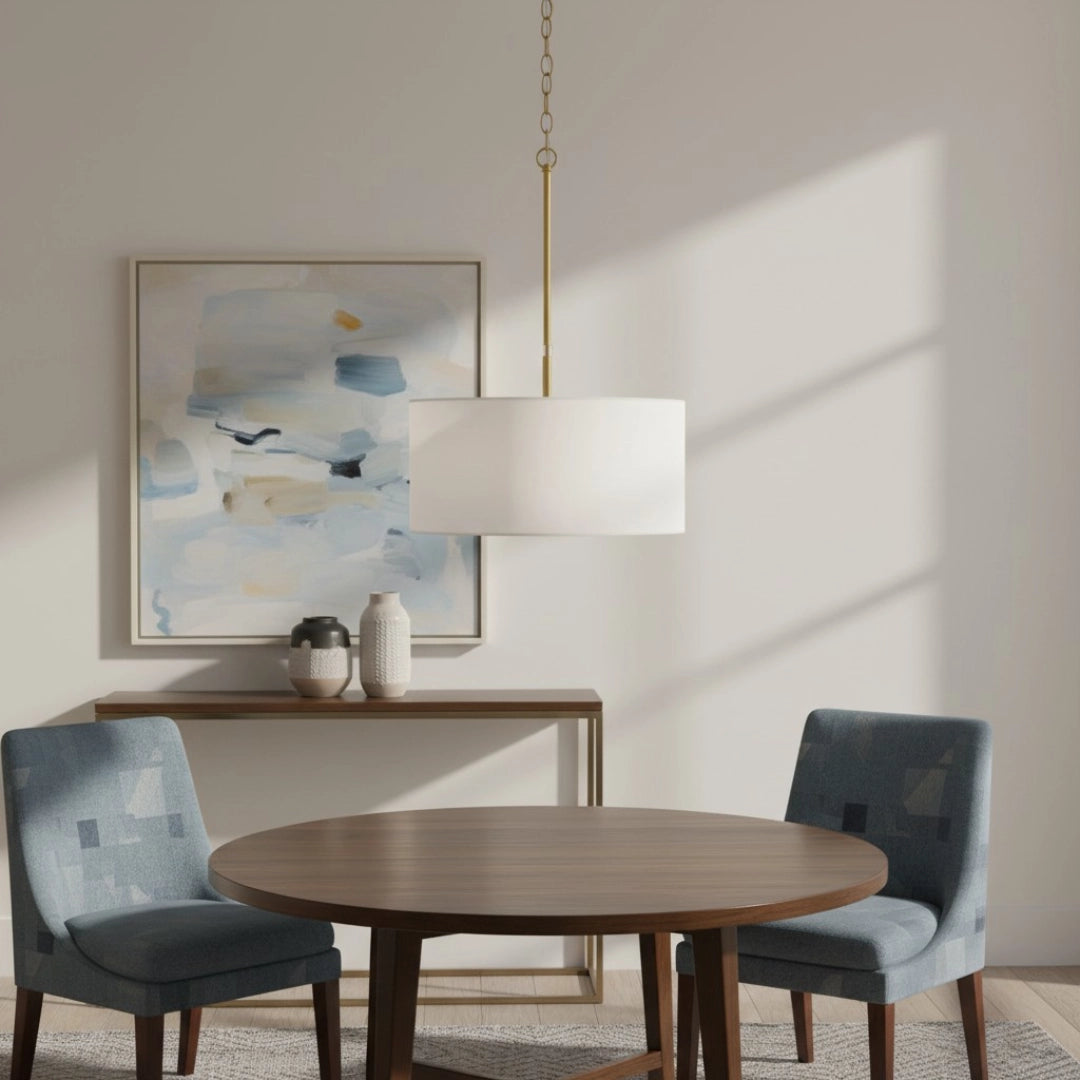 Featuring a crisp white drum shade, this fabric pendant lamp blends classic and modern styles, adapting seamlessly to living rooms, dining rooms, and more.