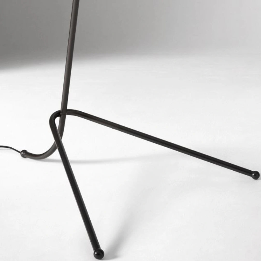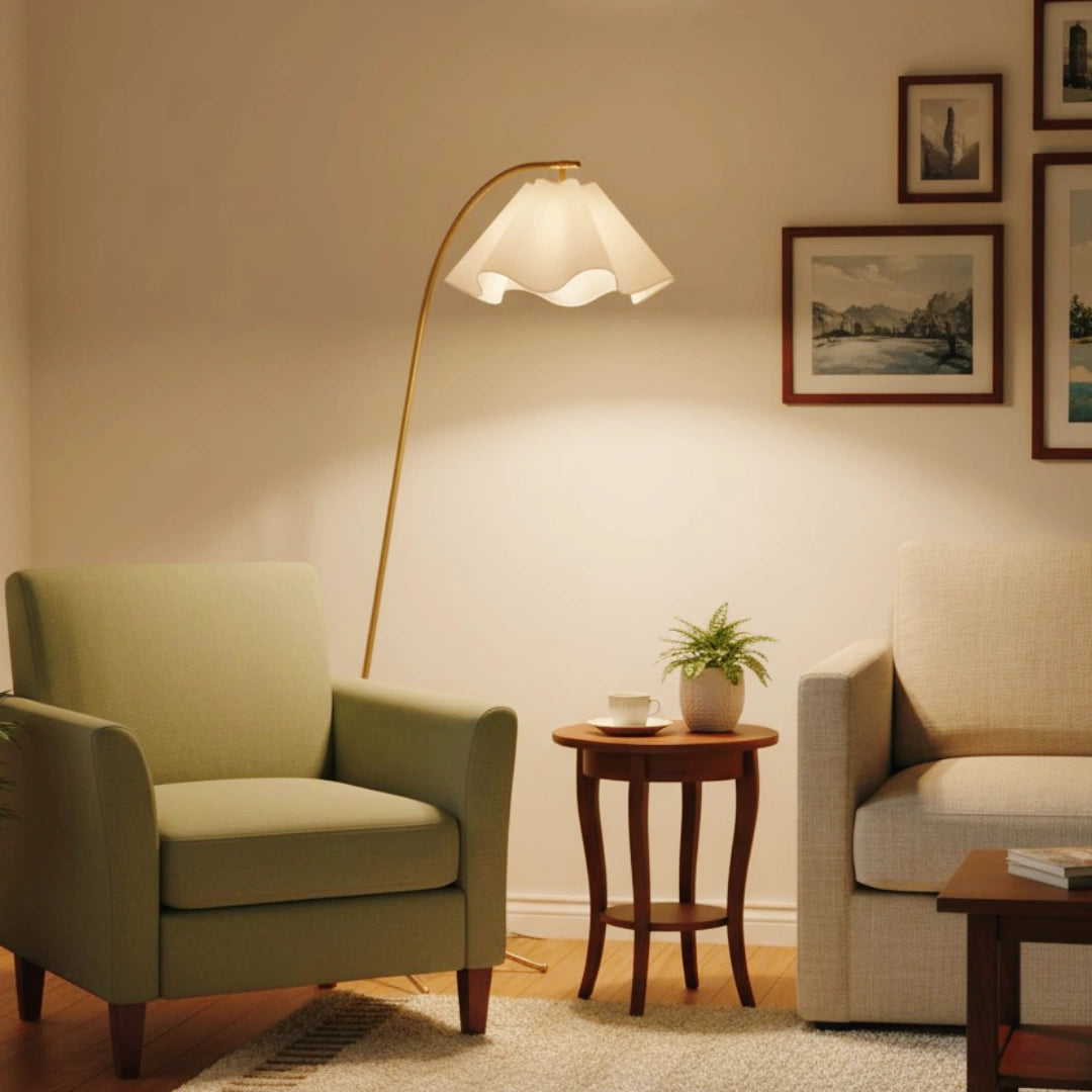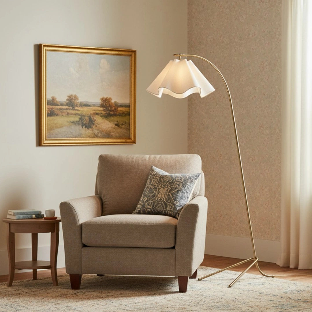 This floor lamp features a unique pleated fabric upholstery for a contemporary look. Its design adds a touch of understated elegance to any space.