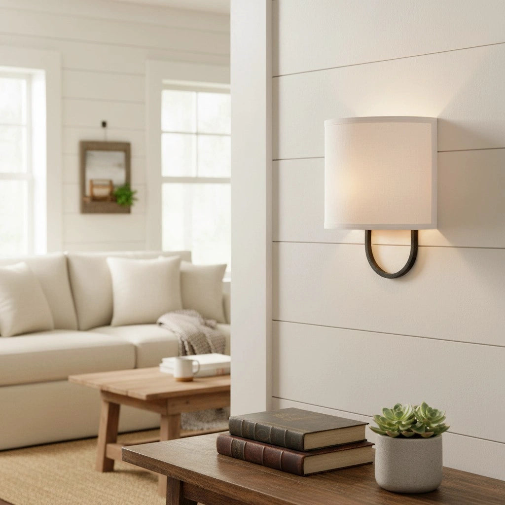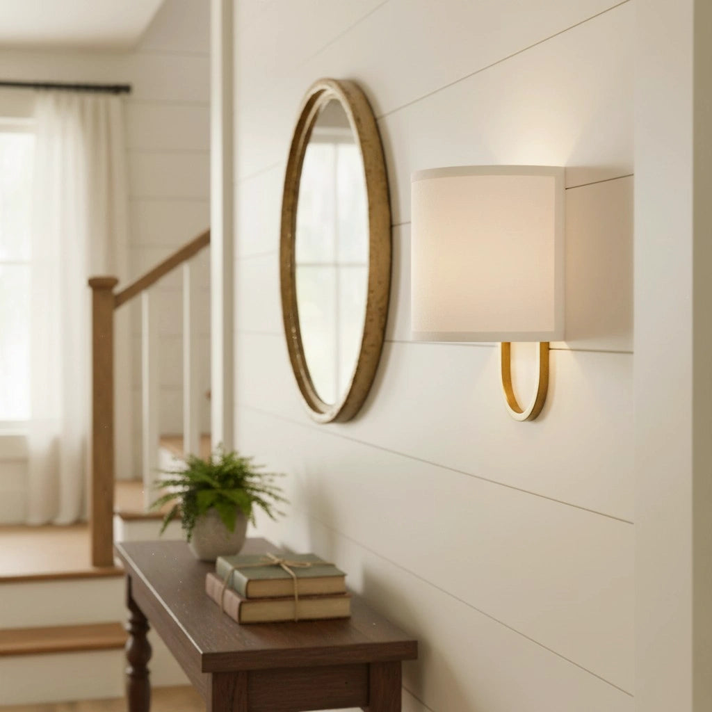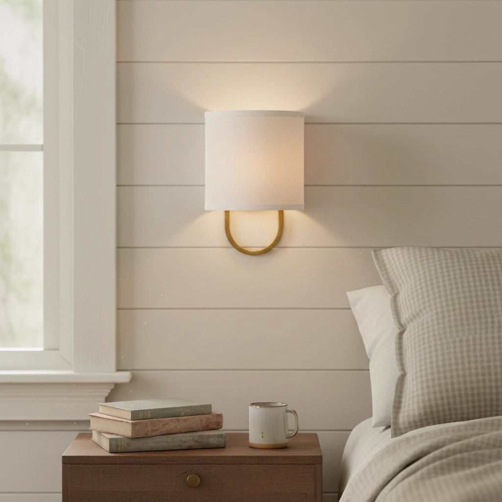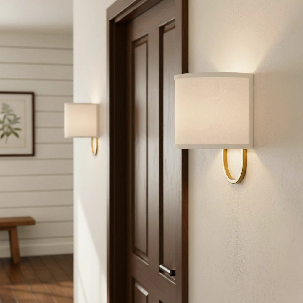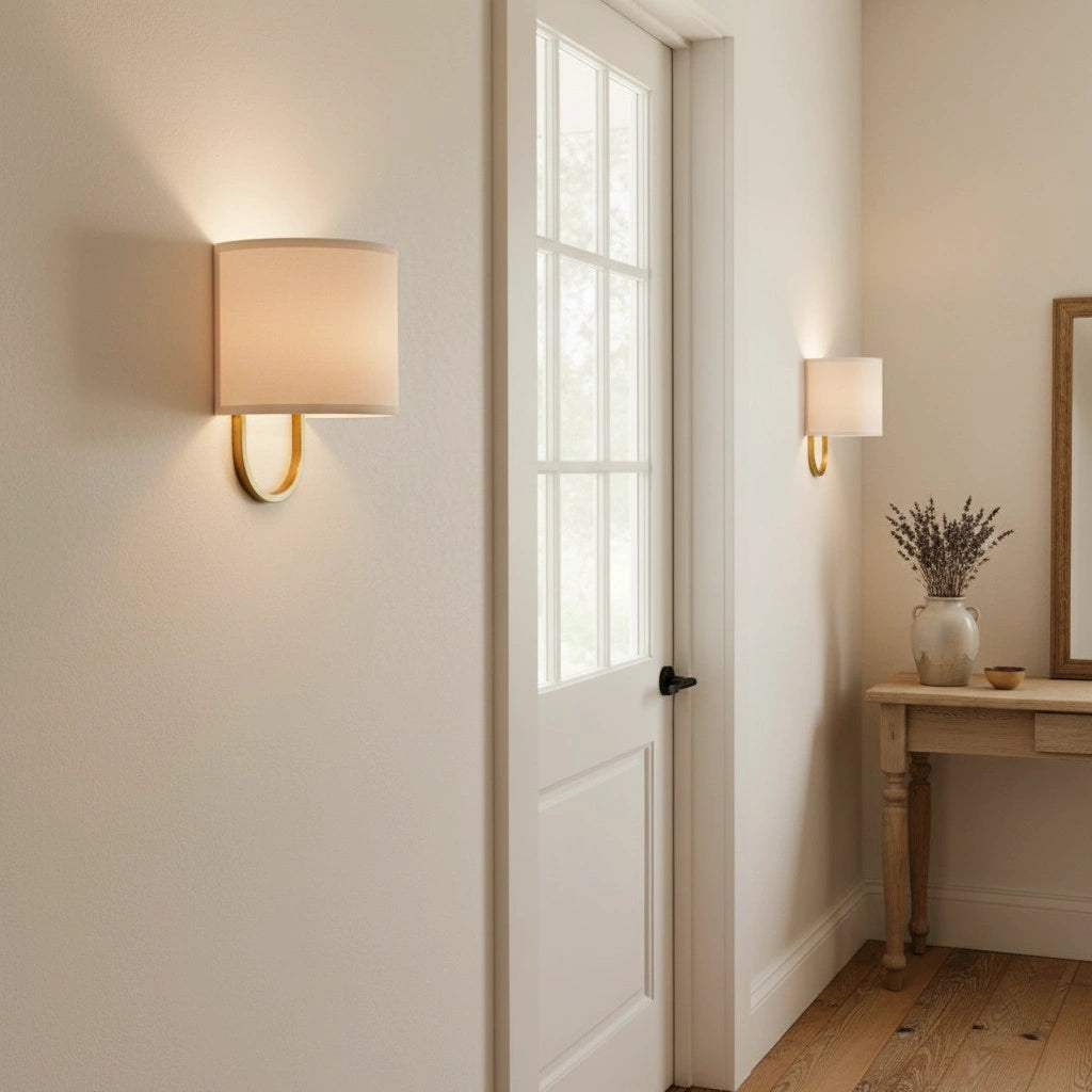 This modern metal wall lamp, with its sleek fabric shade, creates a warm and soothing ambiance. It's perfect for creating a comfortable environment in hallways, bedrooms, reading nooks, and entryways.