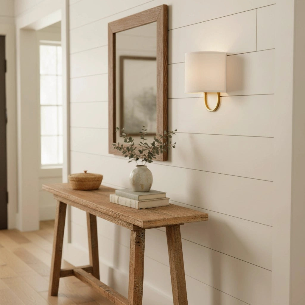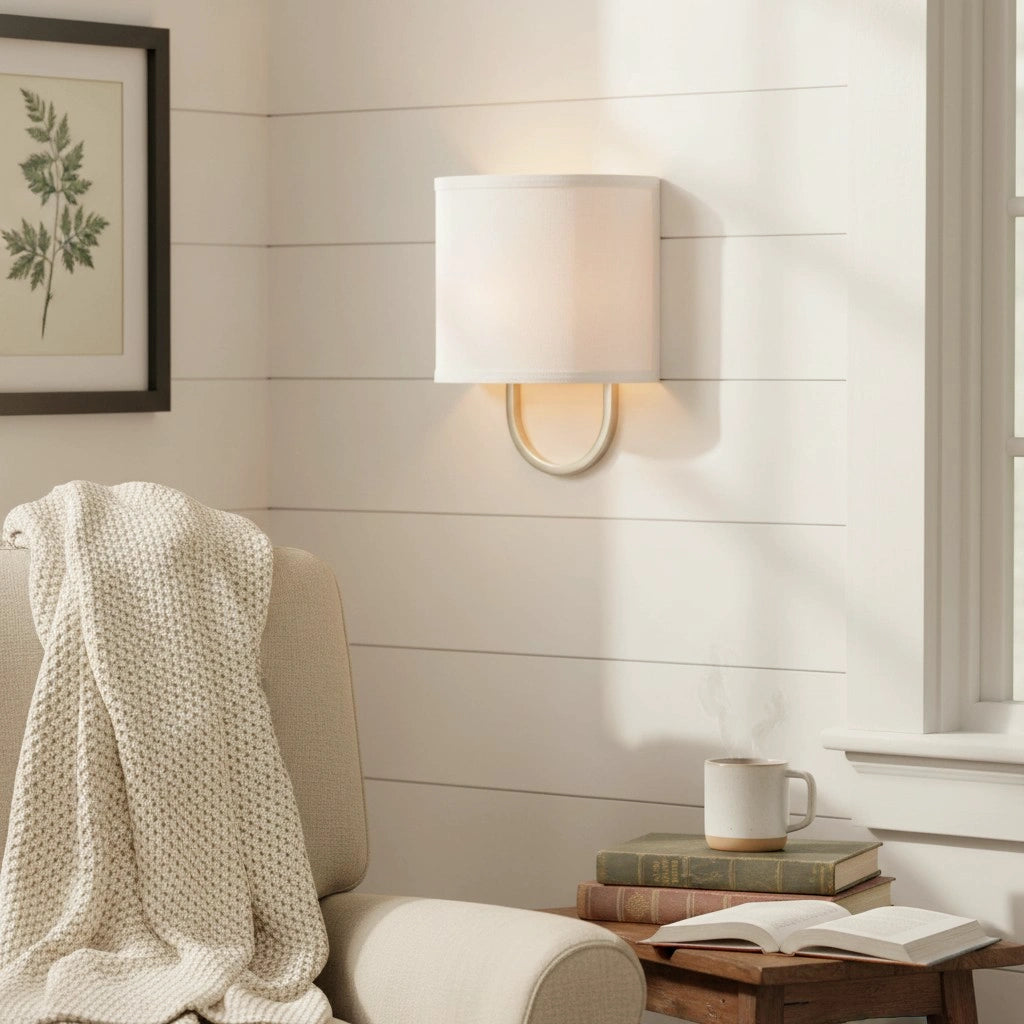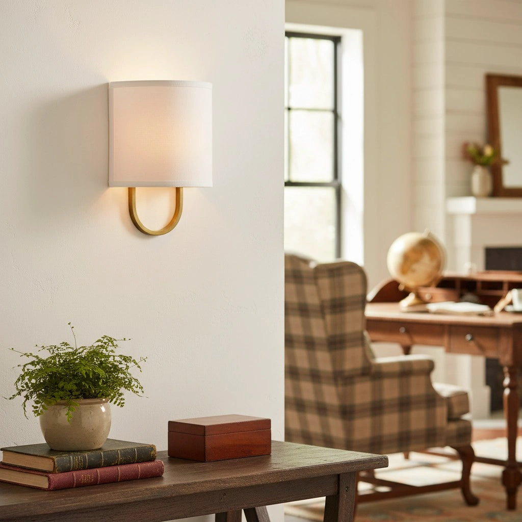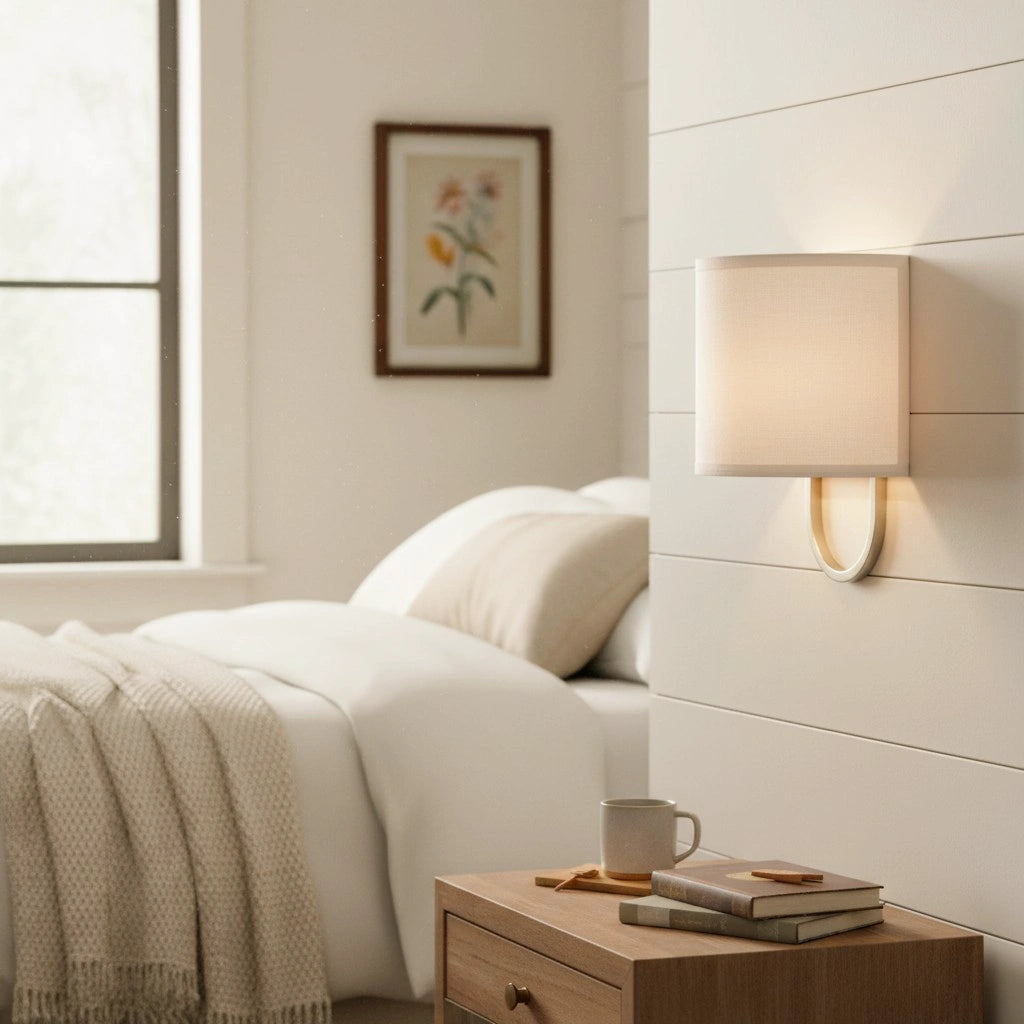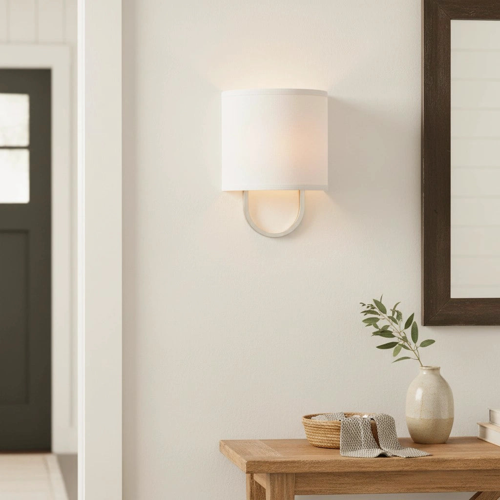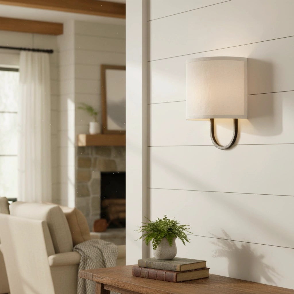 This modern metal wall lamp, with its sleek fabric shade, creates a warm and soothing ambiance. It's perfect for creating a comfortable environment in hallways, bedrooms, reading nooks, and entryways.