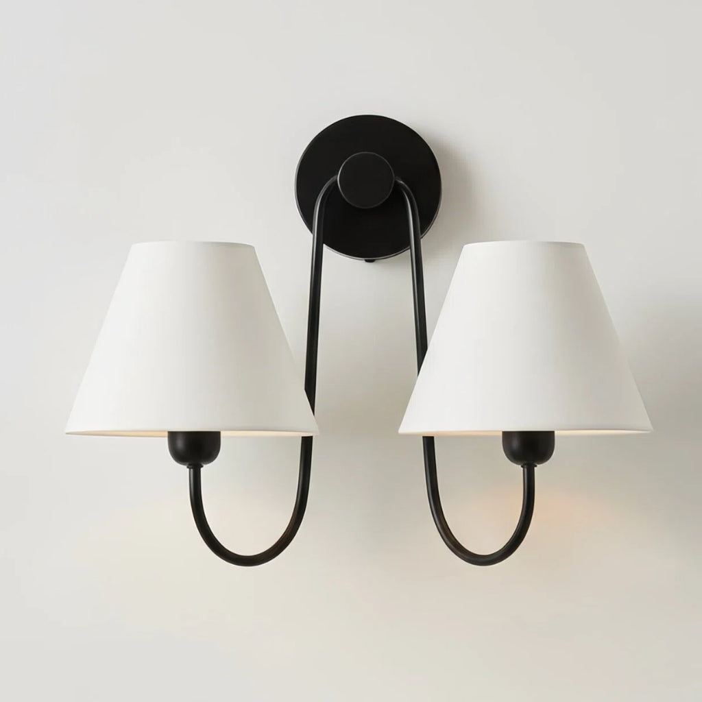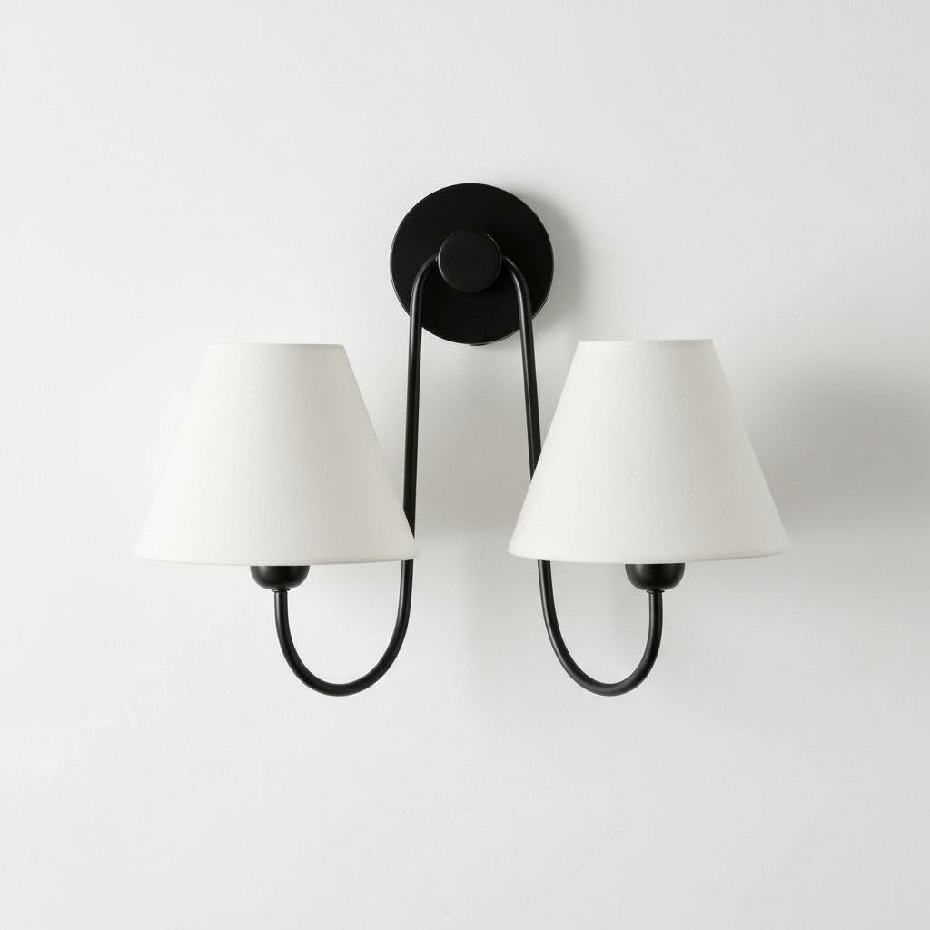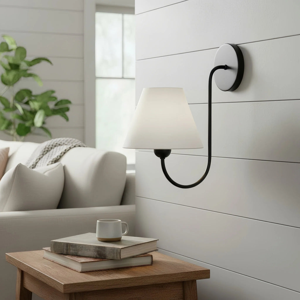 Bring modern elegance to your space with this swoop arm wall sconce, featuring a crisp linen shade and sleek metal frame. Offered in single or double light versions and two finishes, perfect for living rooms, bedrooms, or hallways.