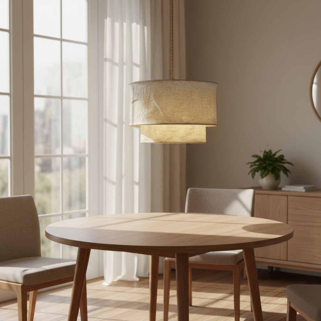 Sophia Natural Fabric Tiered Pendant Light features double - layer natural fabric shades. It emits soft light, perfect for dining rooms, bedrooms, or living spaces.