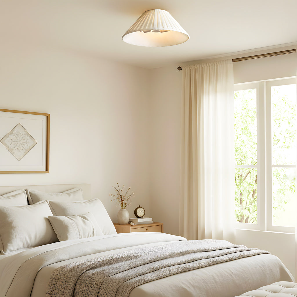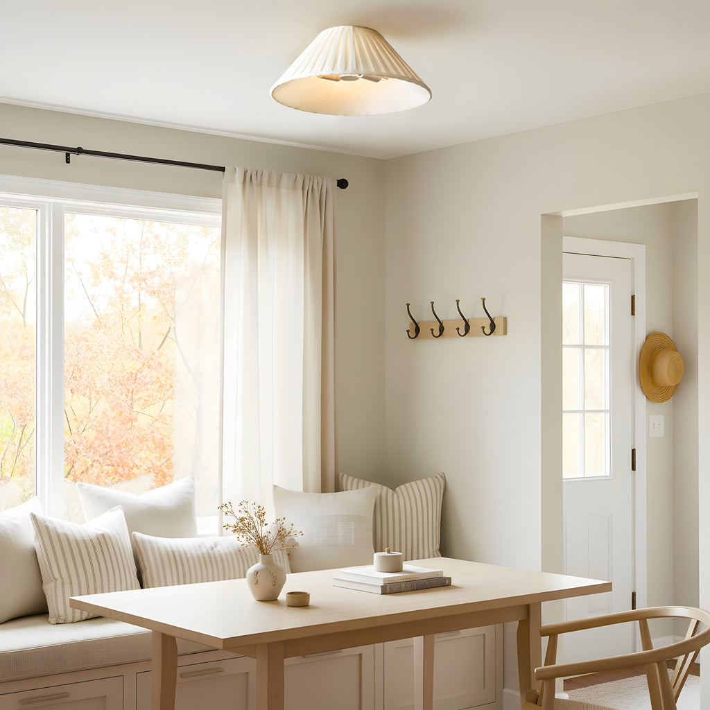 Bring cozy charm and soft elegance to your ceiling with this pleated fabric semi flush mount light. Perfect for bedrooms, hallways, and reading corners, its linen texture and classic shape add timeless warmth to any interior.