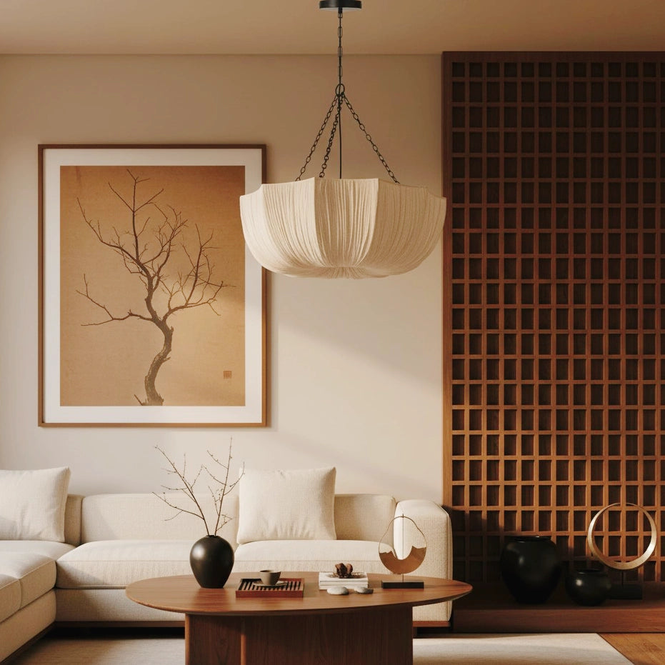 The premium linen fabric shade adds a layer of natural, soft texture, creating a warm and inviting atmosphere.