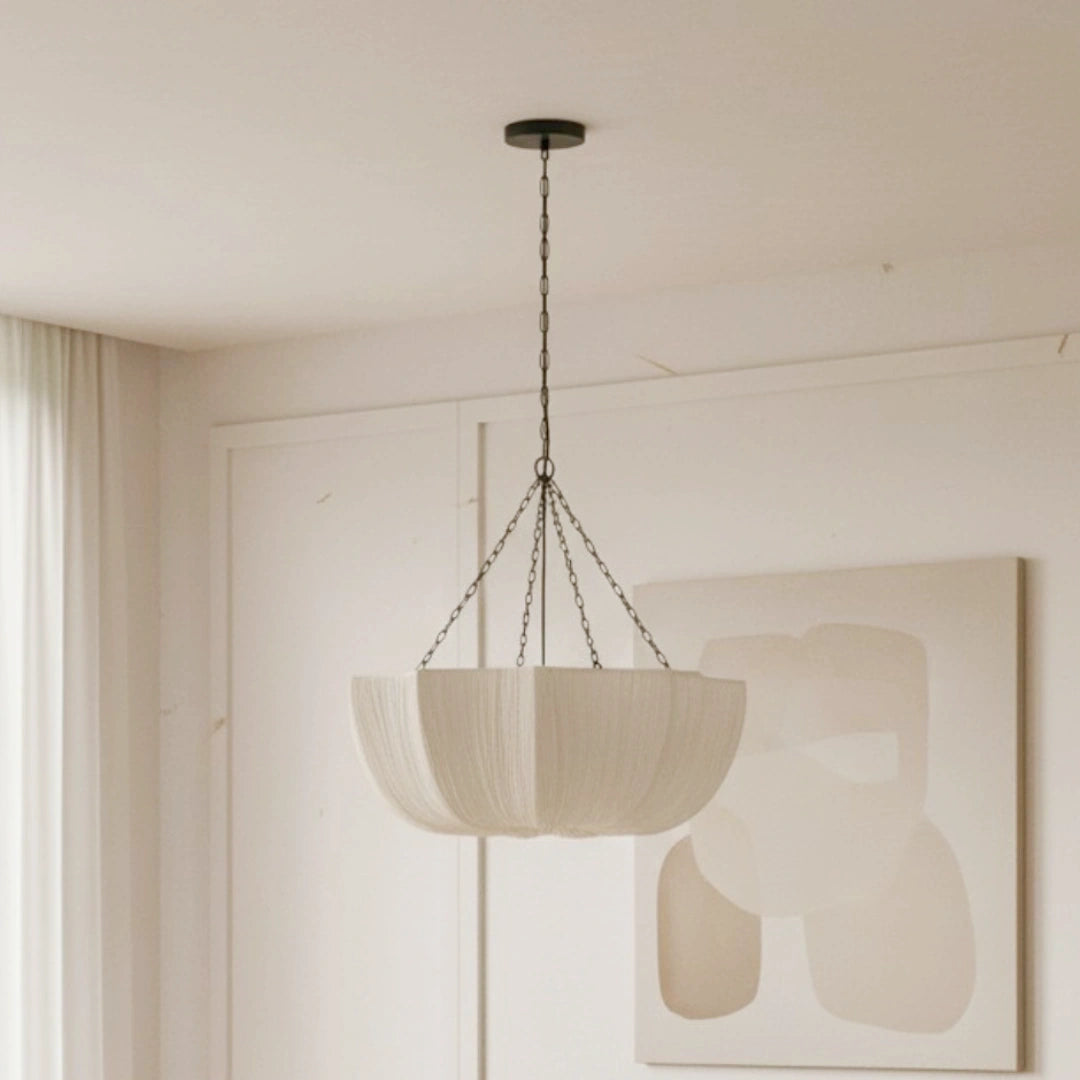 Elevate your interior with the clean aesthetic and soft, textural appeal of the Willy Vintage Linen Bowl Pendant Light. Perfect for living room, dining area or kitchen island.