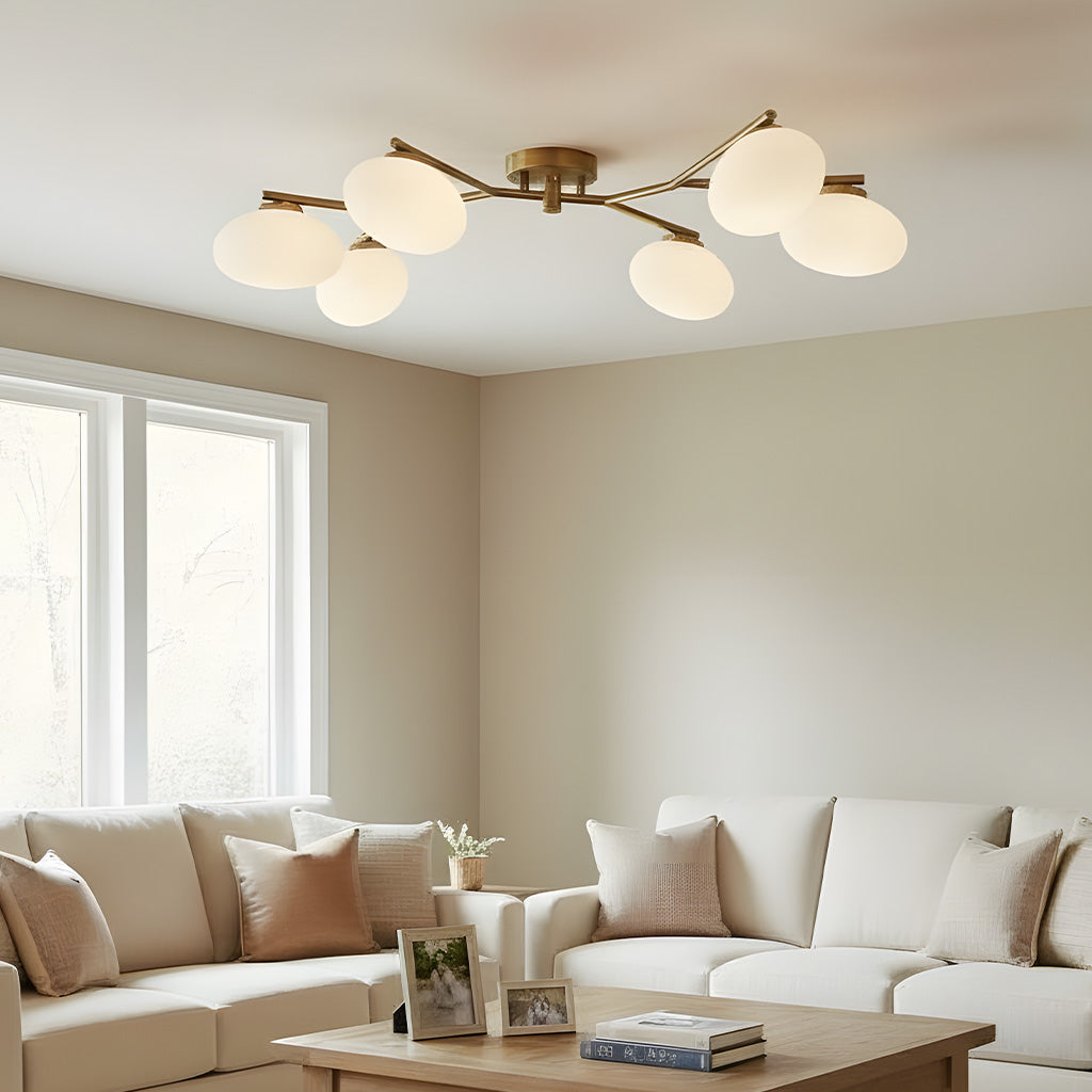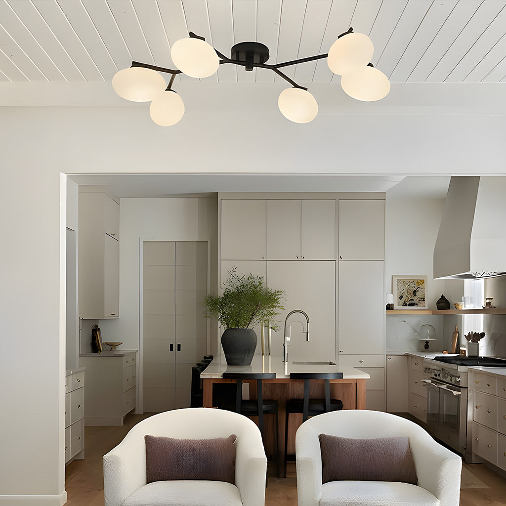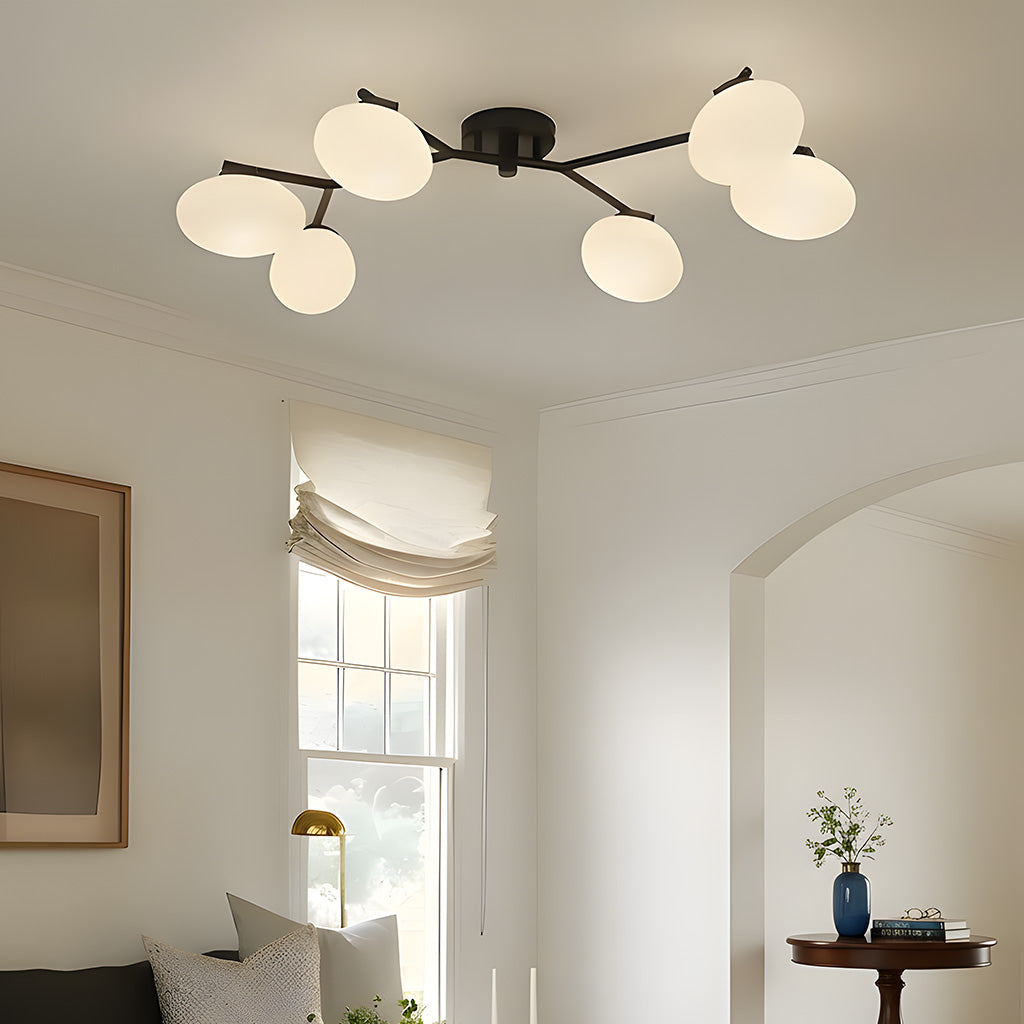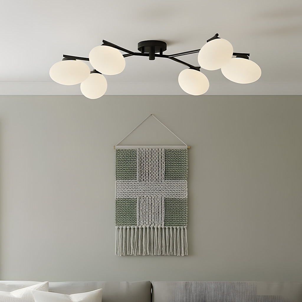 Contemporary 6 Light Branch Frosted Glass Linear Semi Flush Mount Light