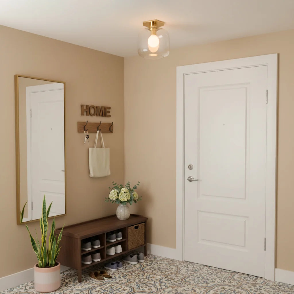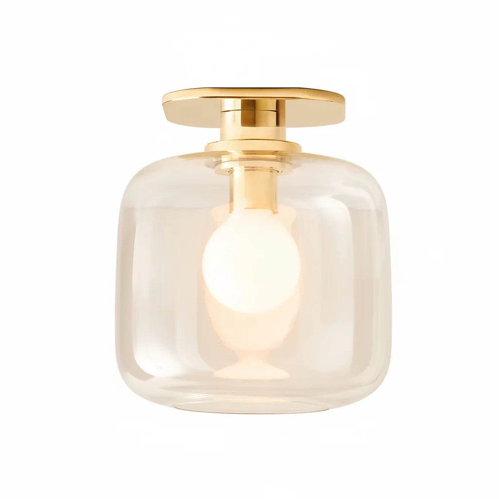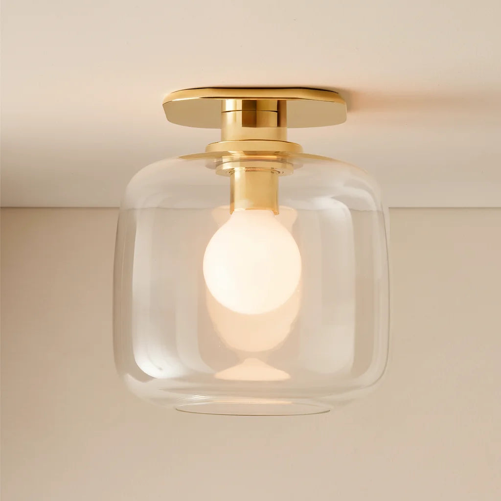 The Flush Mount Light boasts a dreamy, floating aesthetic, with a delicately hand-blown glass globe suspended from a sleek, unobtrusive canopy. The glass features a subtle reverse bevel detail that adds understated sophistication, while the warm unlacquered brass hardware complements the piece’s clean, minimalist geometry and catches the light beautifully. As time passes, the brass develops a unique vintage patina, infusing the design with evolving character and artisanal charm that elevates any interior space.
