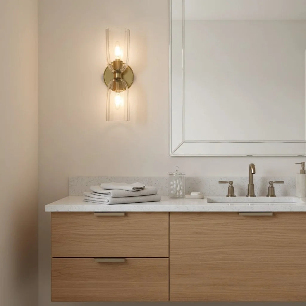 With its refined ribbed glass shade, this 2-Light Wall Sconce introduces a clean, modern statement to your bathroom, bedroom or study.
