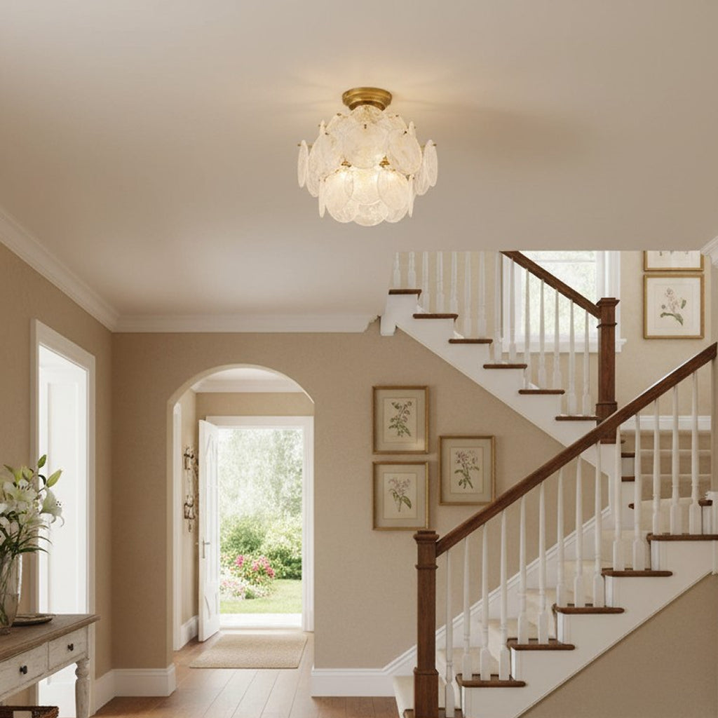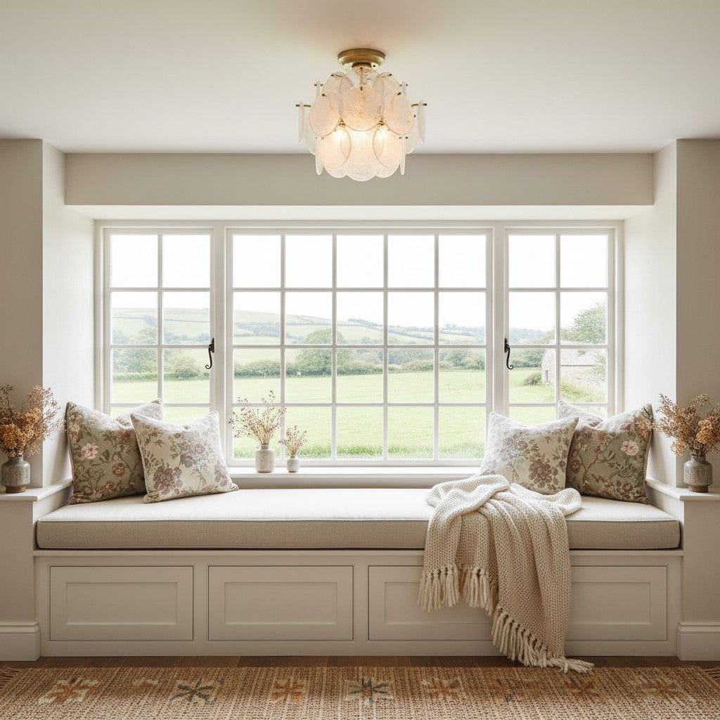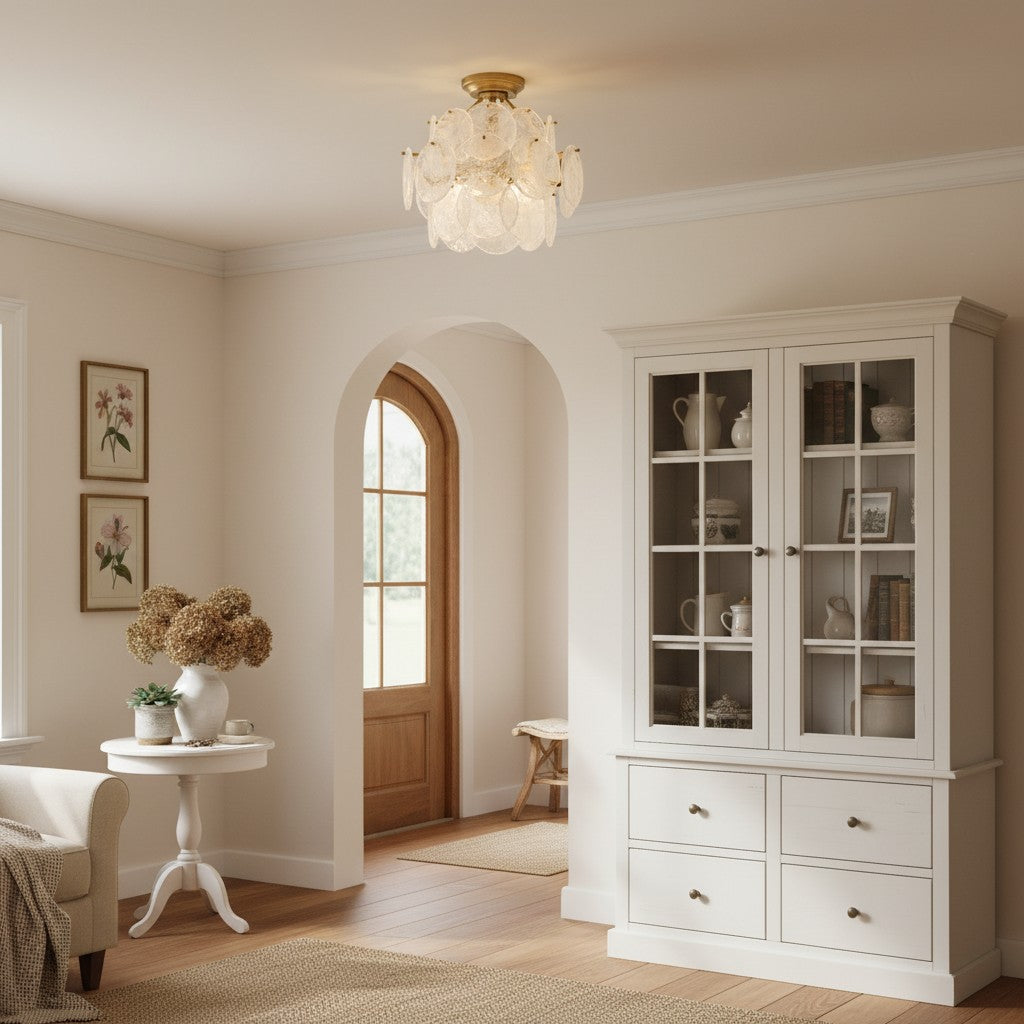 The Kriôs Ceiling Light combines glass and brass for a refined yet modern look. Its elegant form brings timeless charm to living rooms, bedrooms, and bathrooms alike.