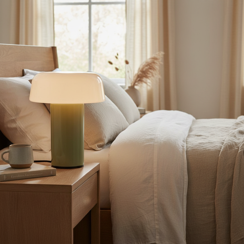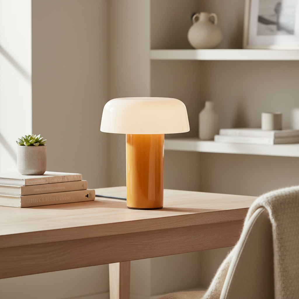 Mushroom-shaped glass body with soft curves creates a stylish, eye-catching accent for modern interiors.