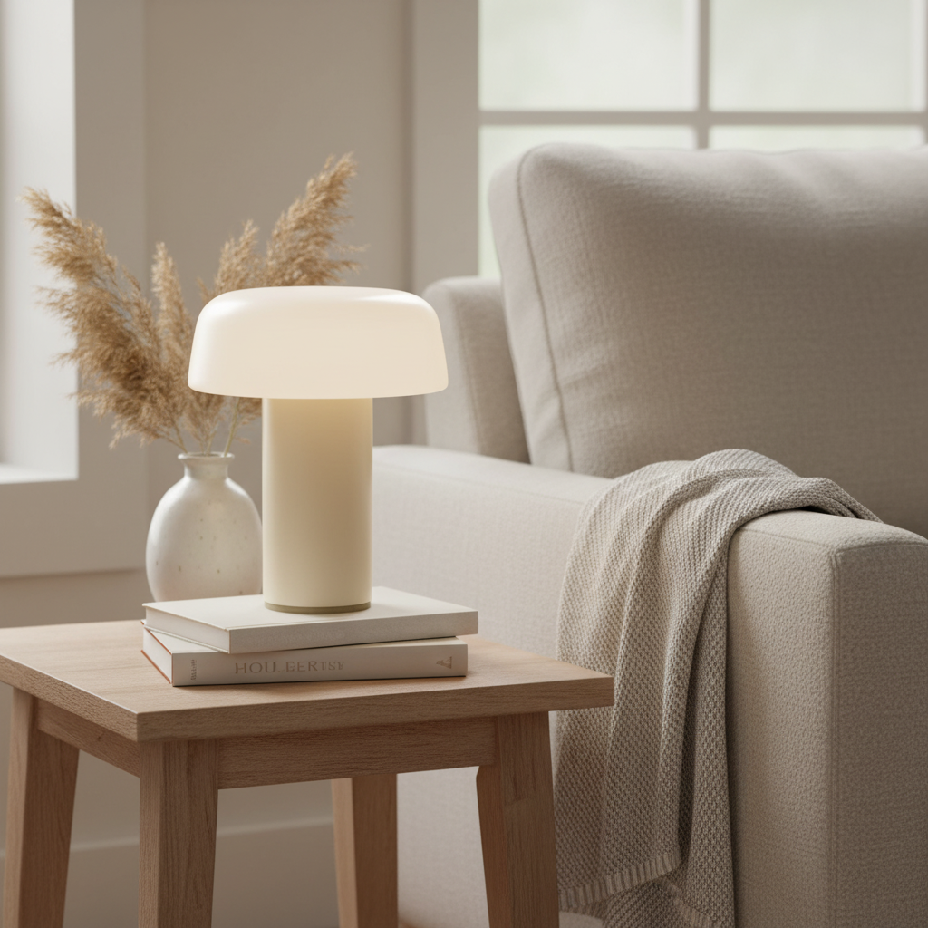 The Lachesis Table Lamp blends playful curves with bold modernist style. Its compact form and warm glow make it a striking accent for nightstands, side tables, or bookshelves.