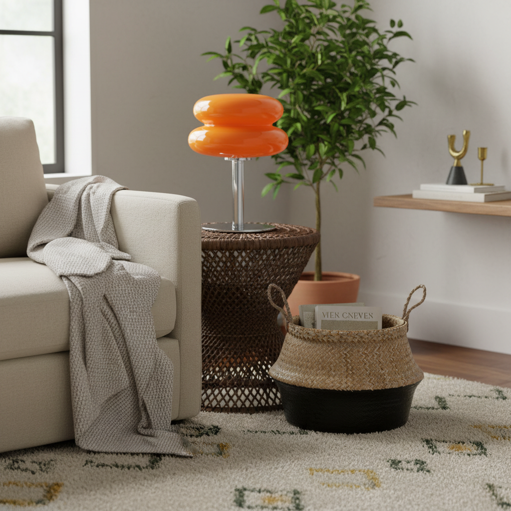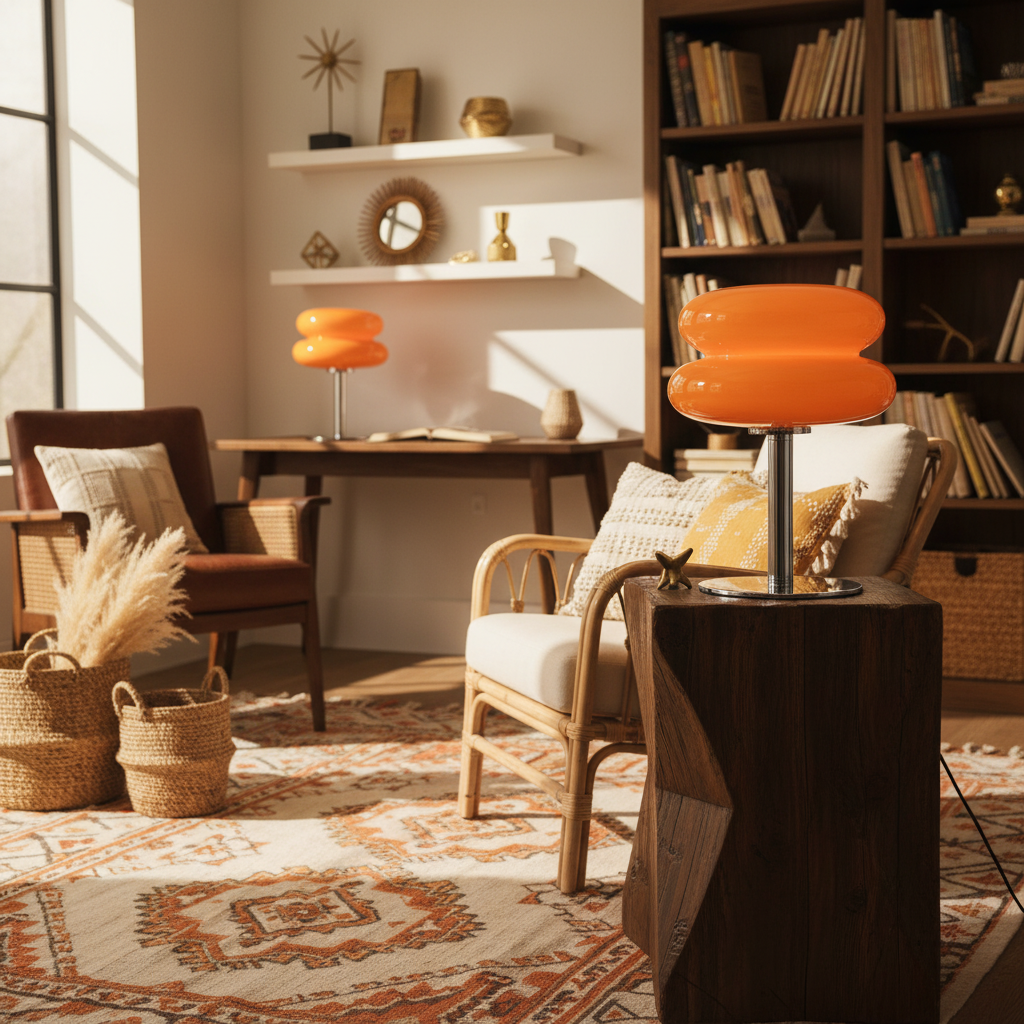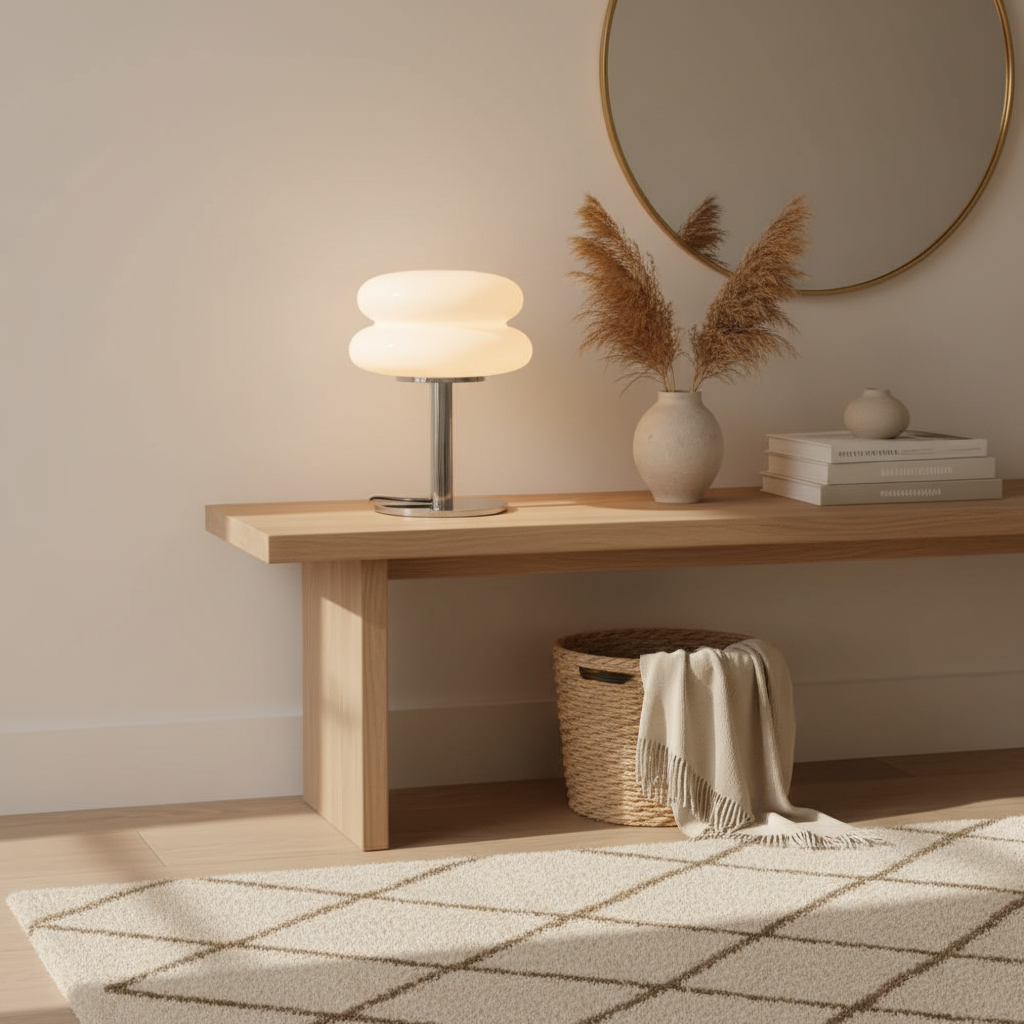 The Marta Modern Bauhaus Glass Table Lamp blends geometric Bauhaus style with modern simplicity. Its dome glass shade and metal base cast warm, elegant light on desks, nightstands, or cozy corners.