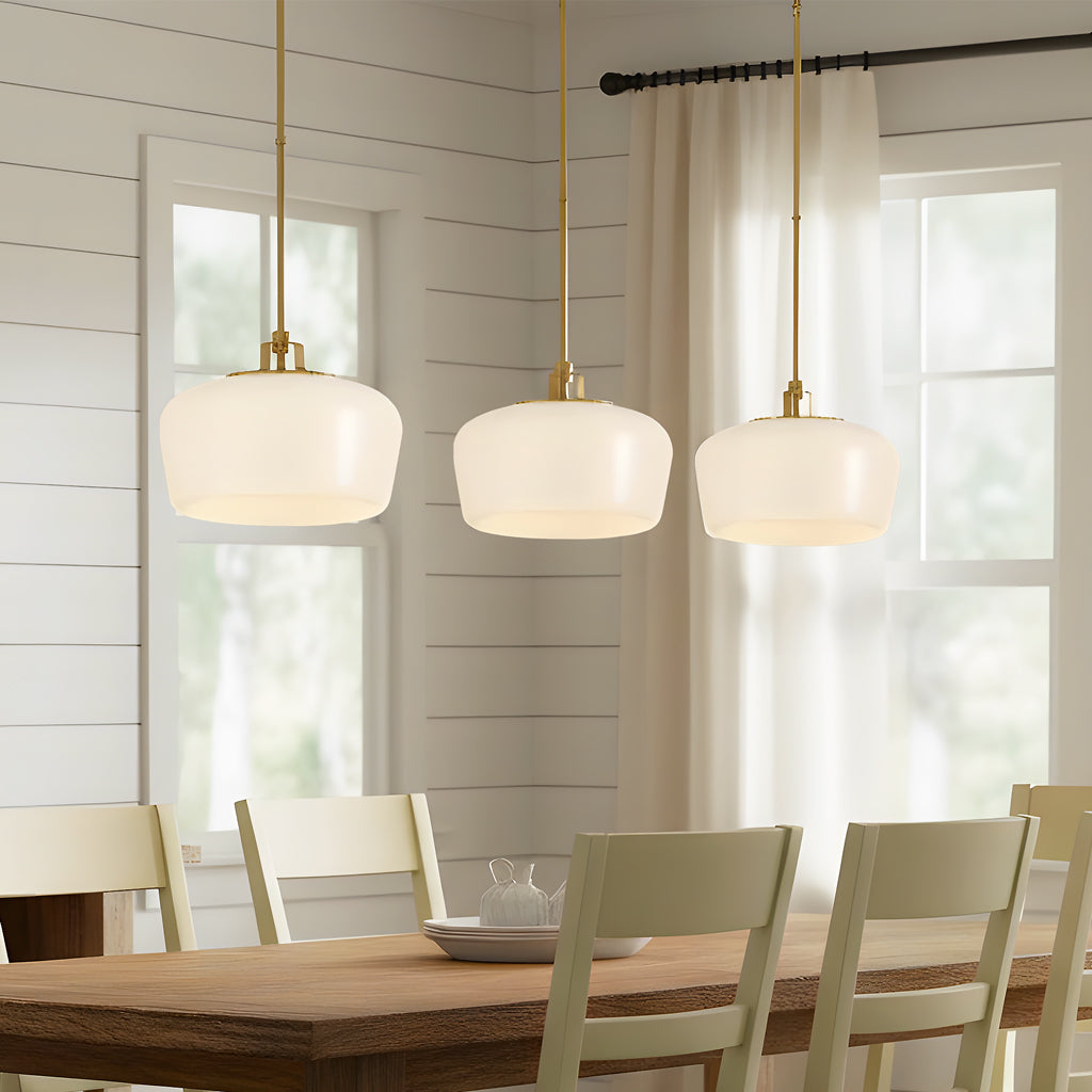 Modern Antique Brass Opal White Glass Shade Pendant Light Kitchen Island