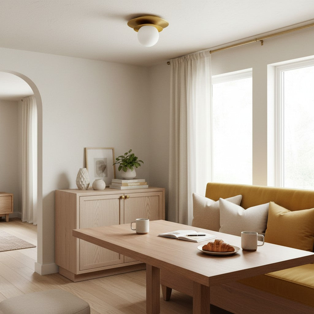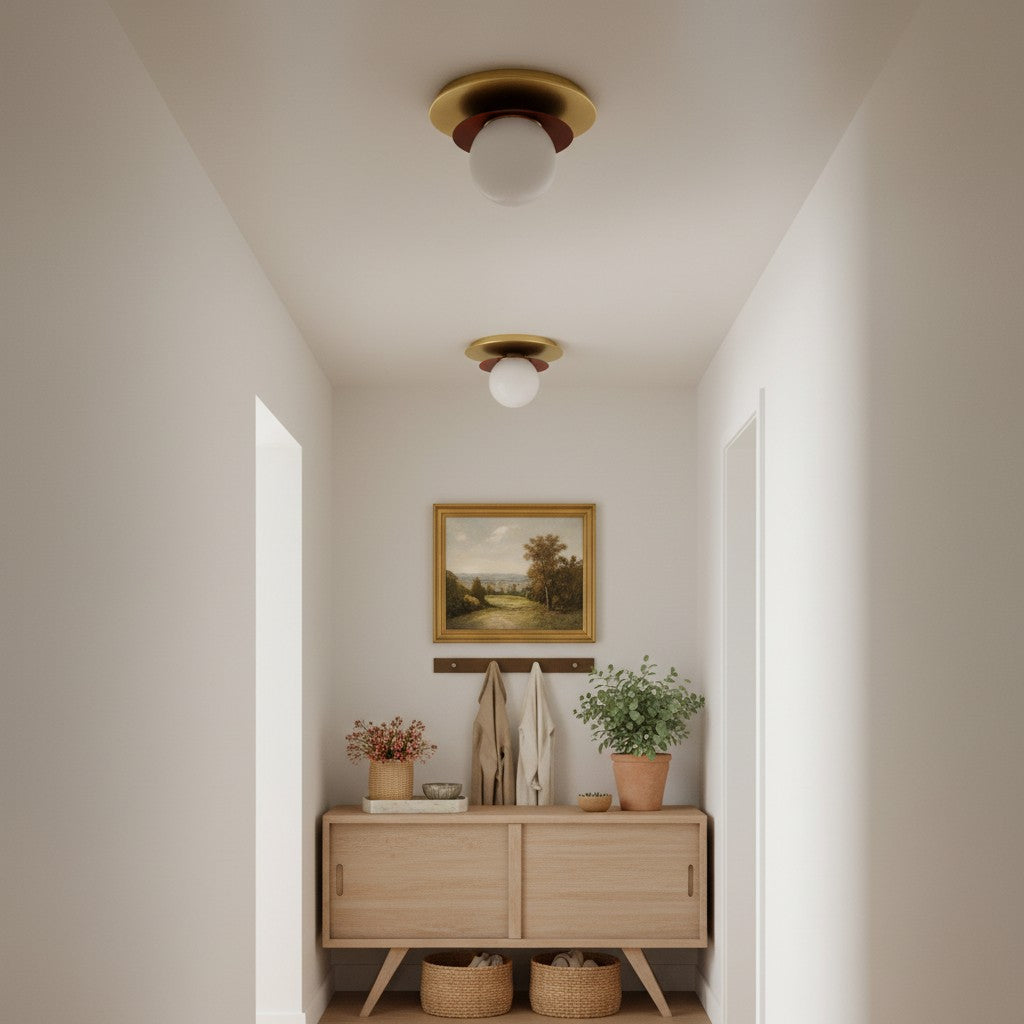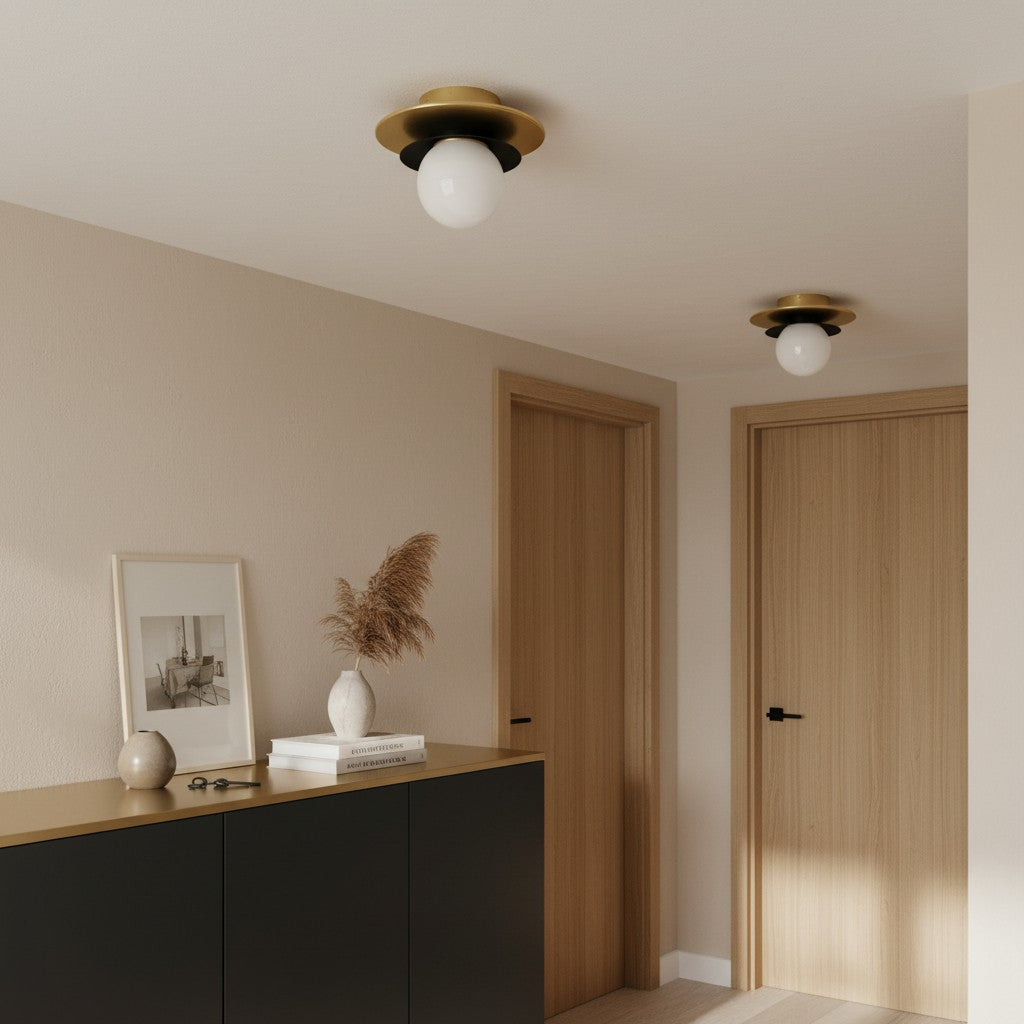 The Modern Layered Brass Opal Glass Ceiling Light combines versatility and style in one elegant form. Designed with a layered silhouette and frosted opal glass, it can be mounted as either a ceiling light or a wall sconce. Available in multiple finishes, it brings a soft, diffused glow that complements both modern and classic interiors. Perfect for bedrooms, hallways, and living spaces.