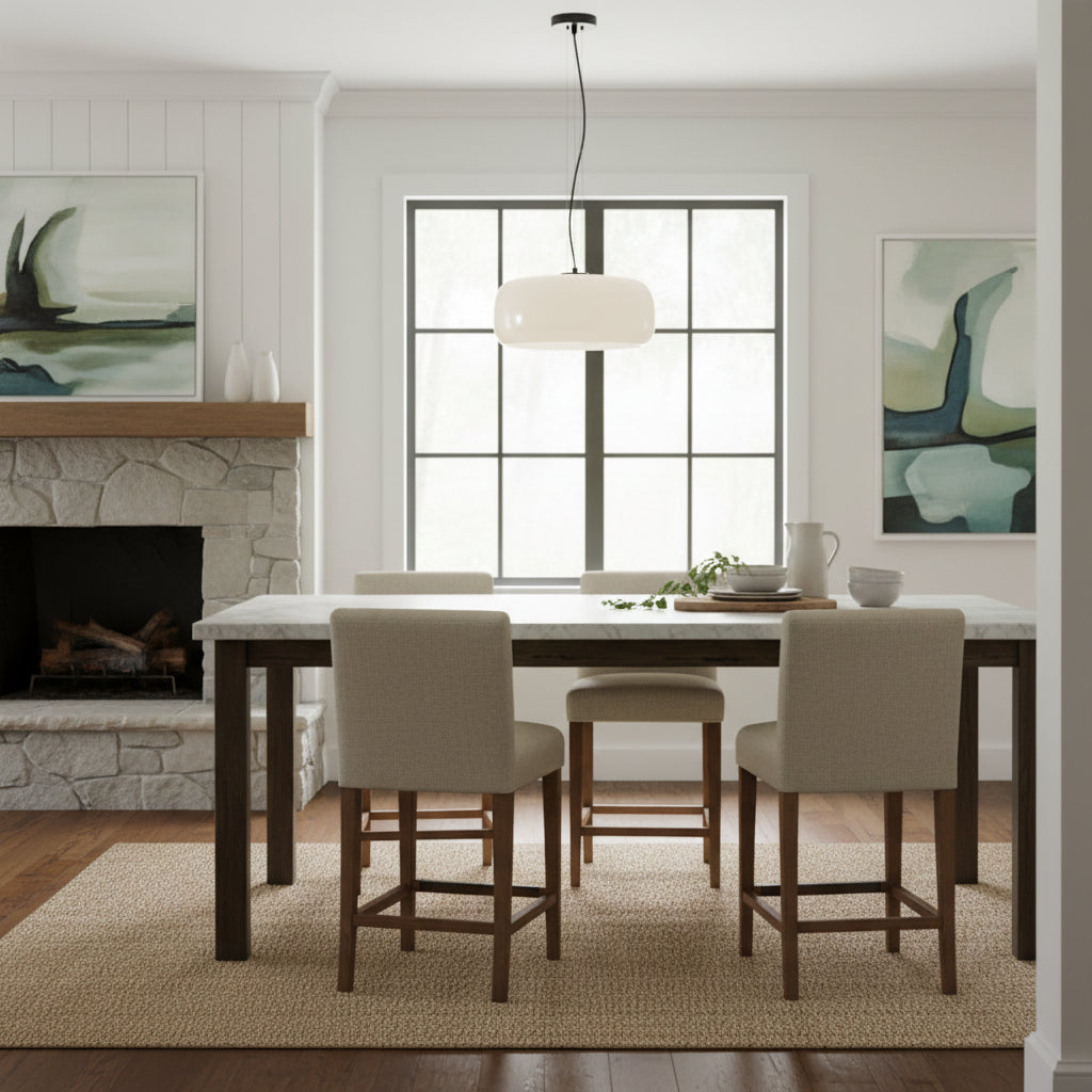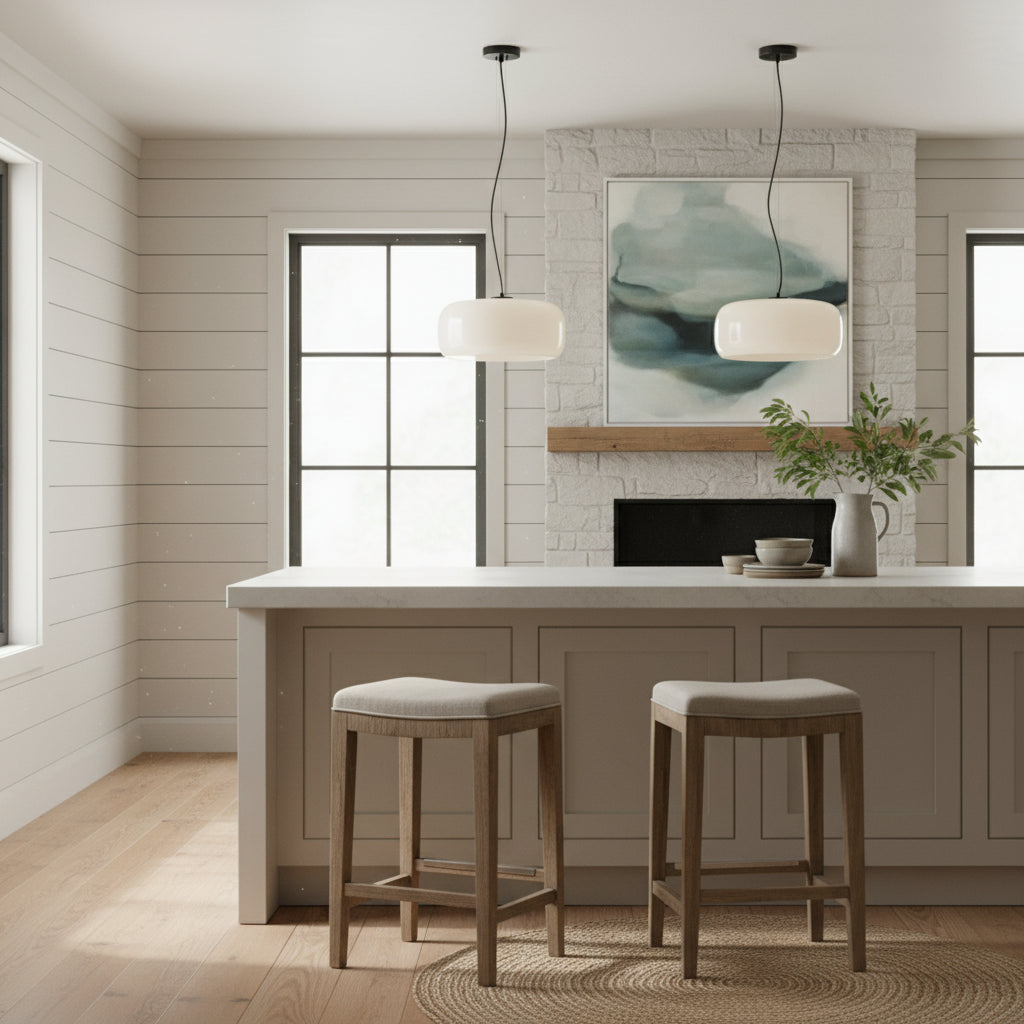 The Pronoe pendant blends sleek curves with luminous glass for a modern yet timeless look. Its subtle glow shifts with the finish, creating a warm ambiance. Perfect for kitchens, dining rooms, or cozy lounge spaces.