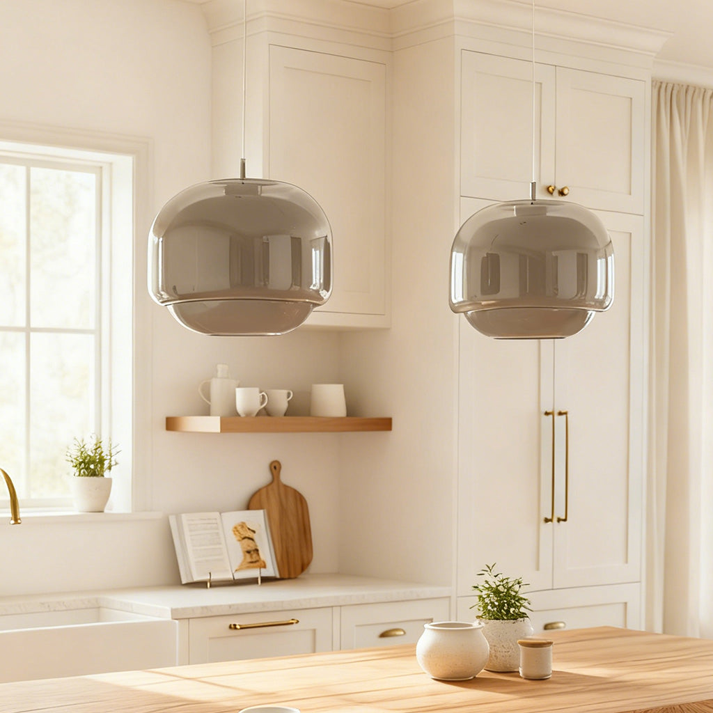 This double-dome pendant combines translucent and opaque colored glass to create a soft, cheerful ambiance. The rounded shape and warm hues bring a touch of modern charm to dining rooms, kitchen islands, or cozy corners.