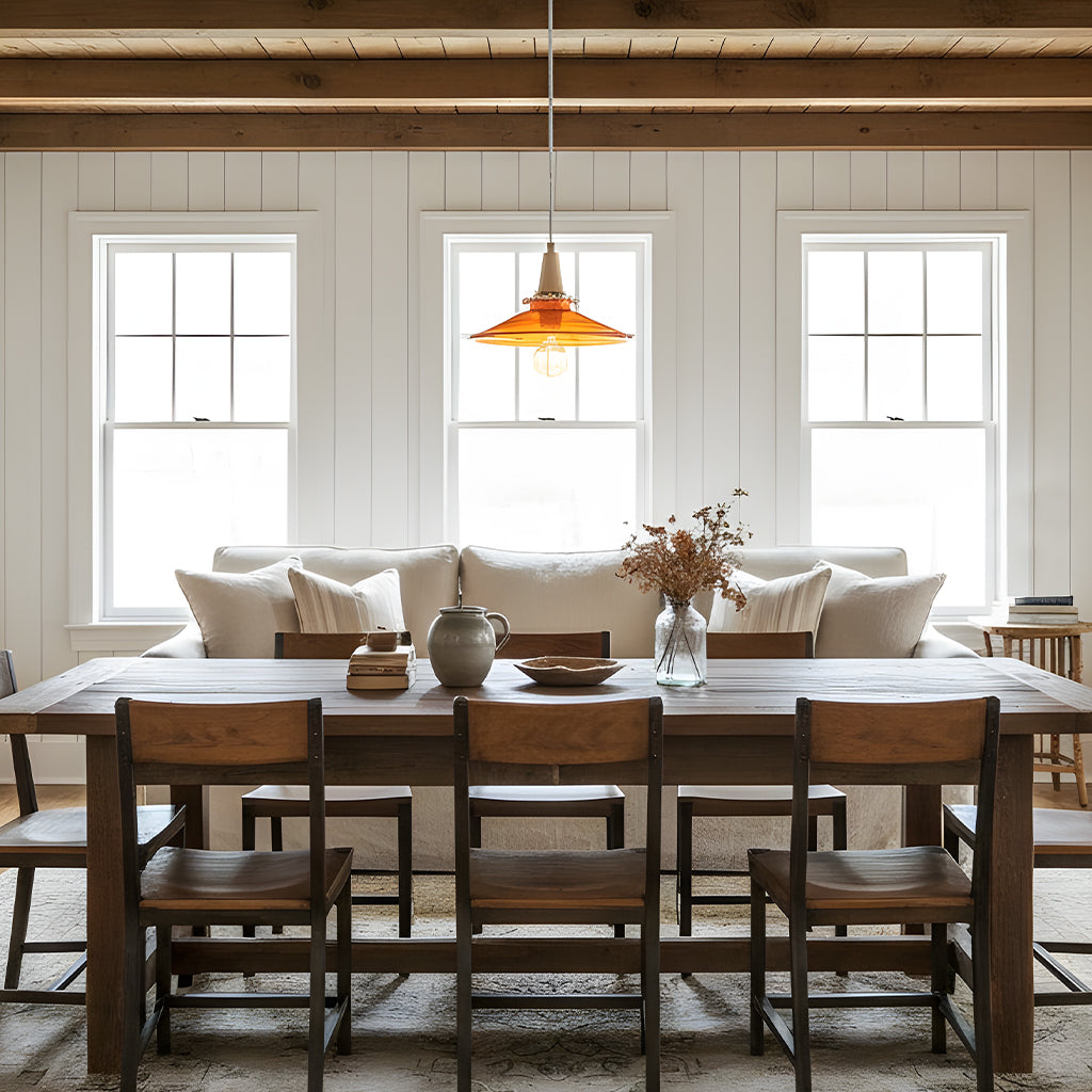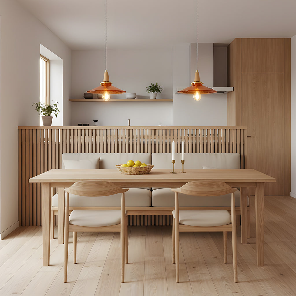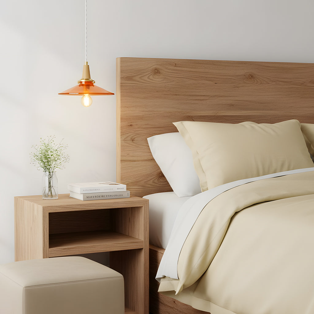 The Stilbon Pendant Light showcases a vibrant orange glass shade paired with a refined wooden top, bringing a splash of color and modern Nordic charm. Ideal for kitchens, dining rooms, or cozy cafés.