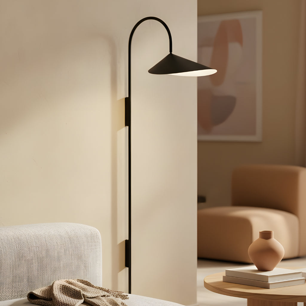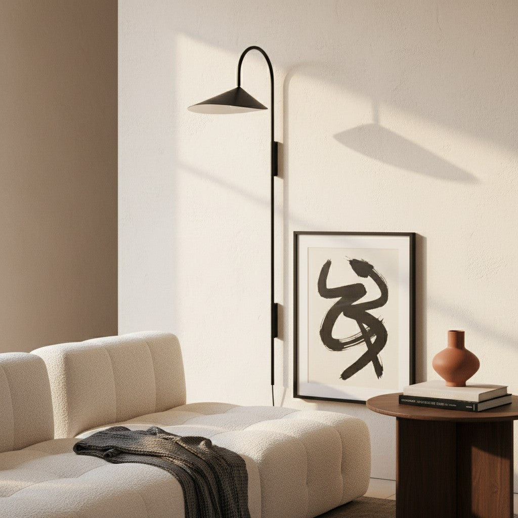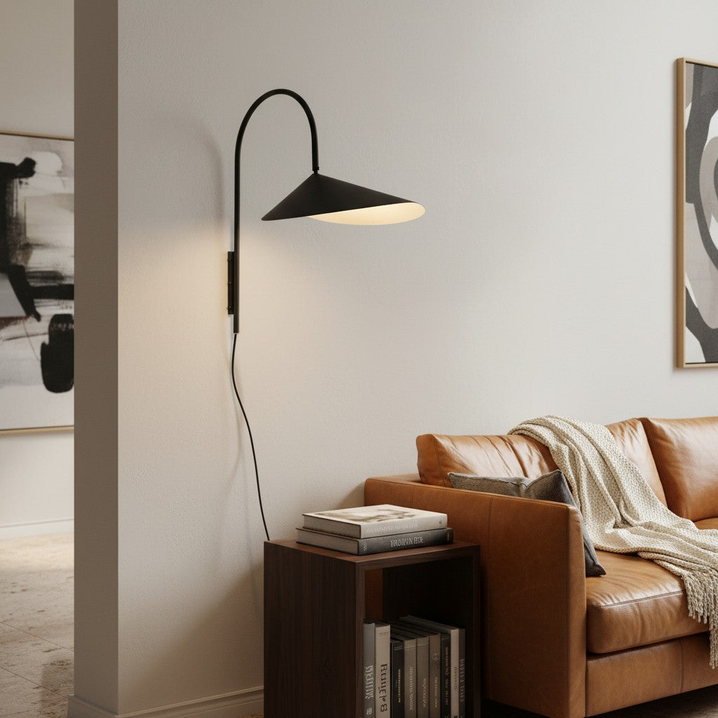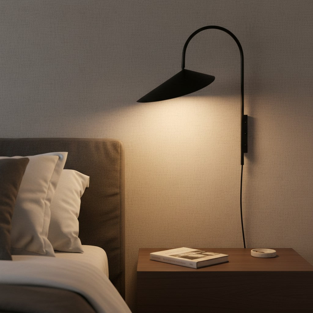 The Haruki Wall Sconce blends modern design with functional elegance. Its leaf-shaped shade swivels to direct light where needed. Available in bronze, black and cashmere, it brings a minimalist touch to bedrooms, living rooms and hallways.