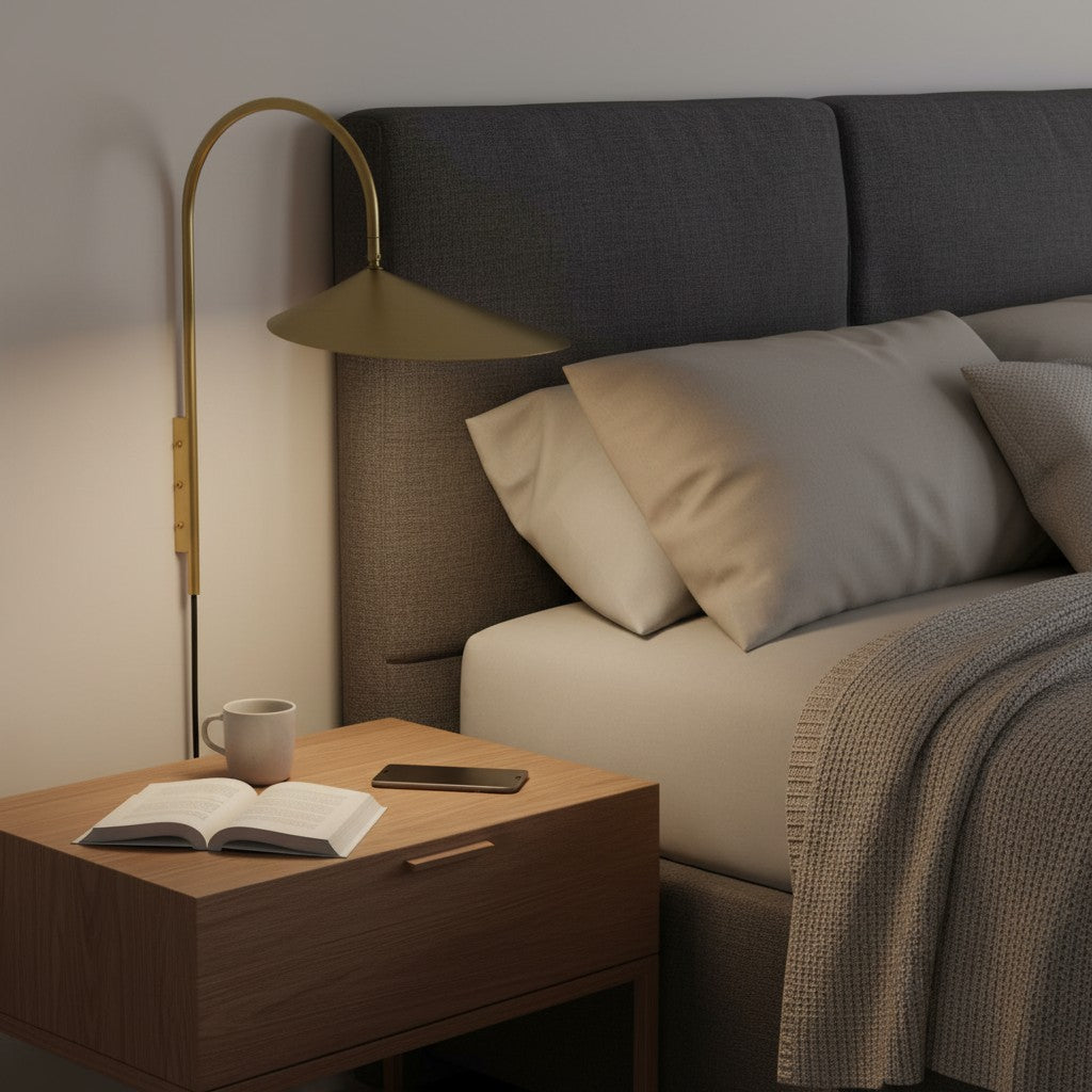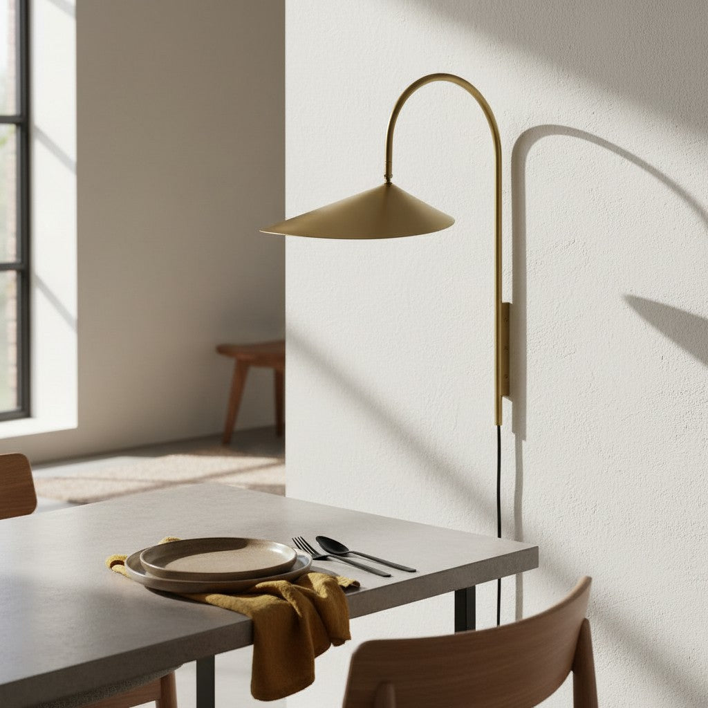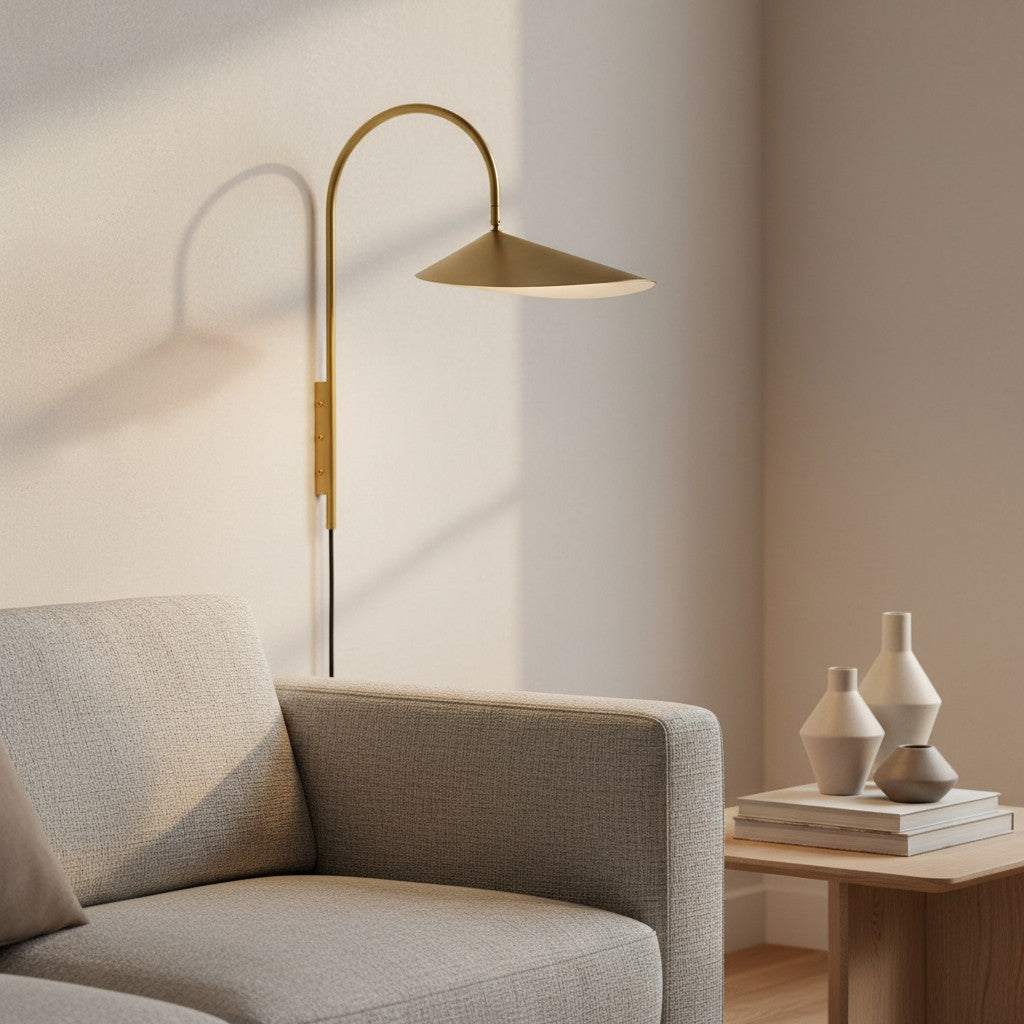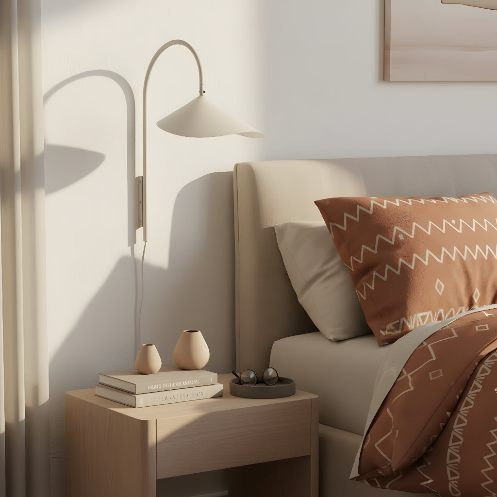 The Haruki Wall Sconce blends modern design with functional elegance. Its leaf-shaped shade swivels to direct light where needed. Available in bronze, black and cashmere, it brings a minimalist touch to bedrooms, living rooms and hallways.