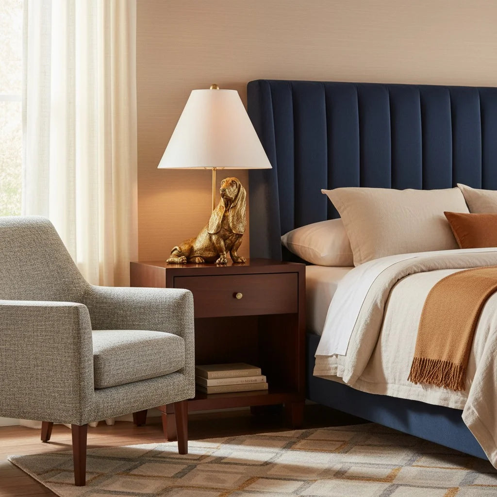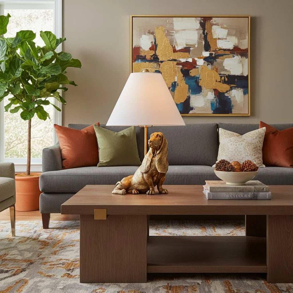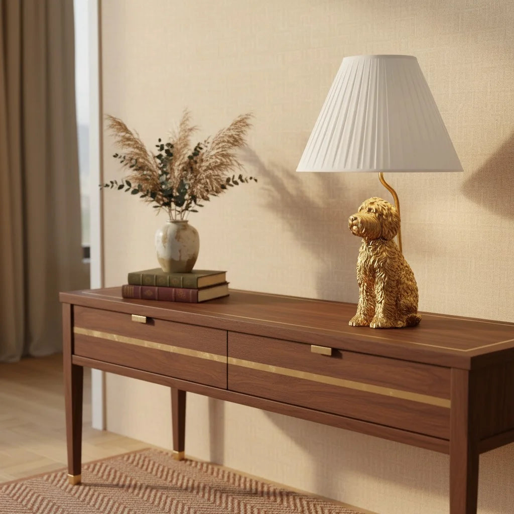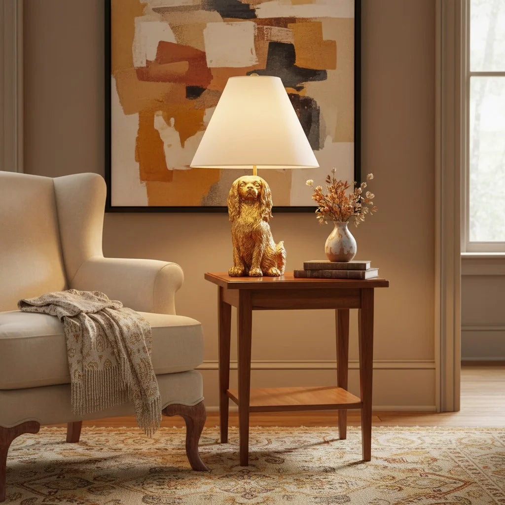This table lamp blends retro allure with whimsical charm. Its sculpted metal dog base and soft fabric shade cast a warm glow, turning bedside nooks, coffee tables or shelves into delightful focal points and adding storybook vibes to living spaces.