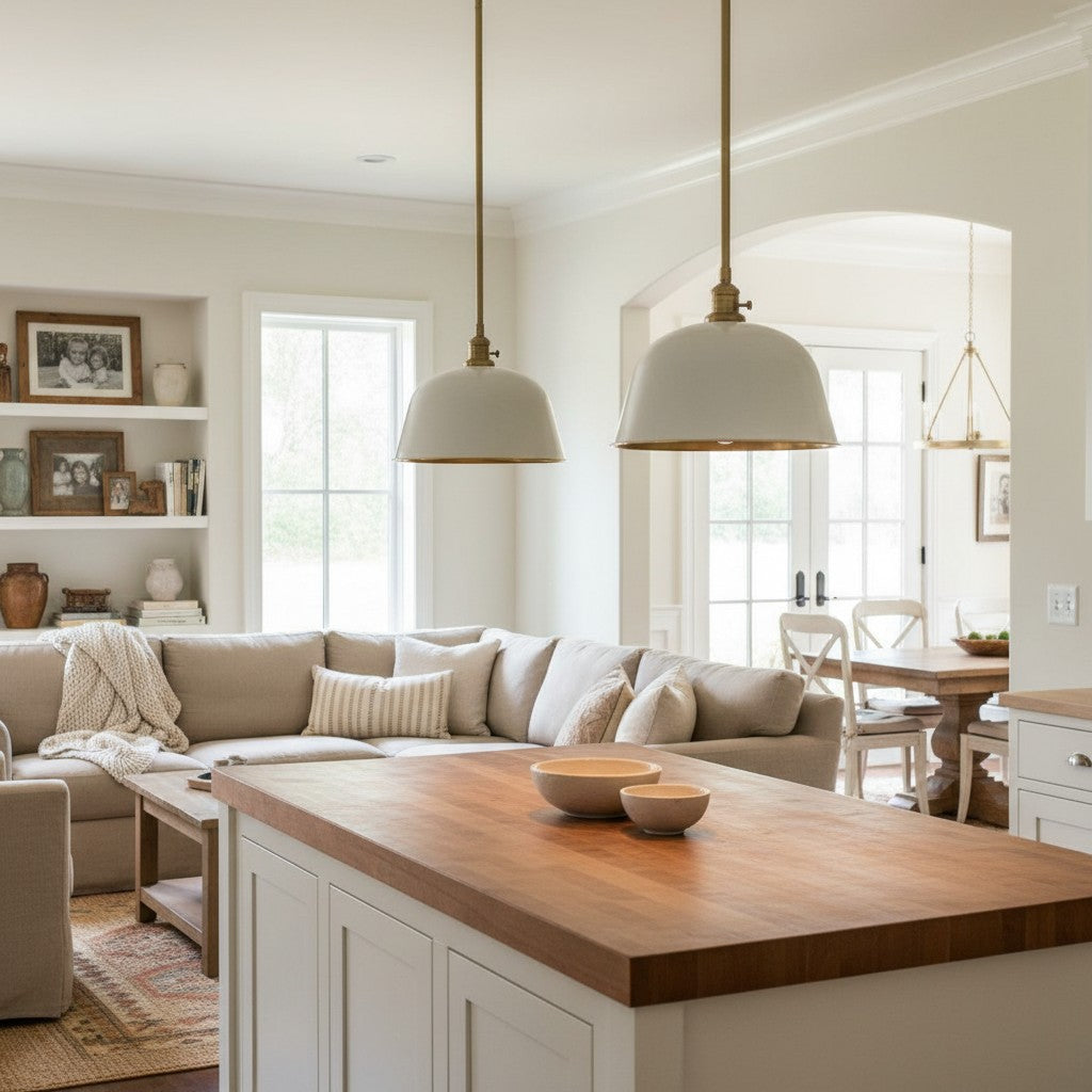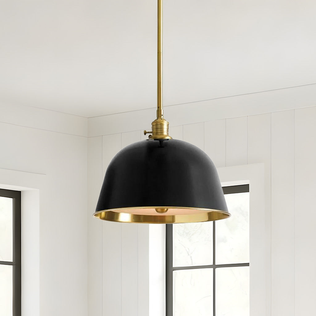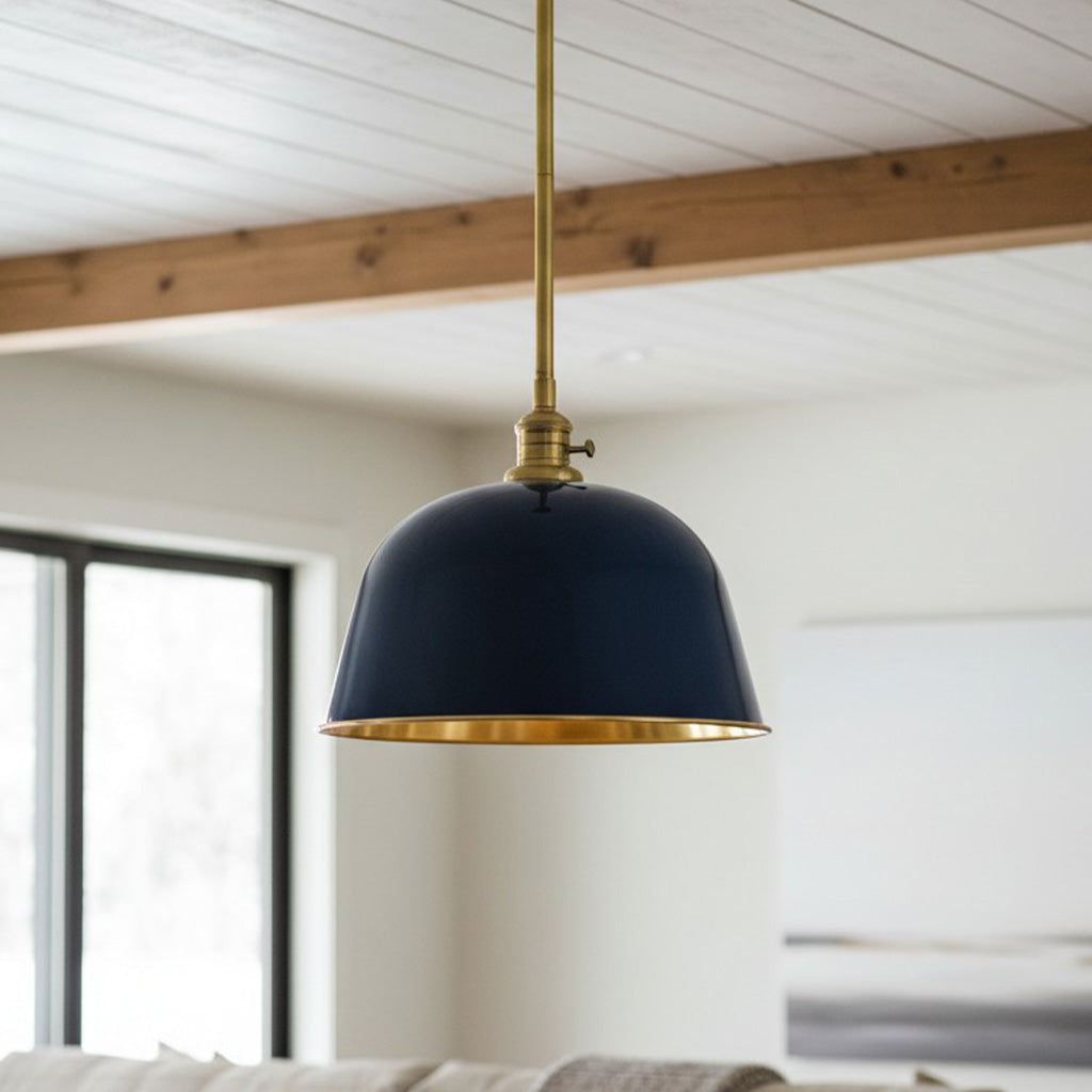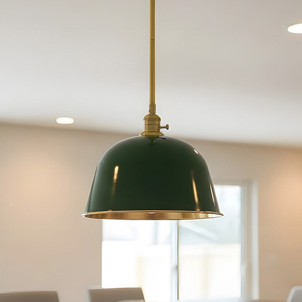 The metal pendant light boasts a timeless minimalist appearance, yet it is rich in detail and functionality. The dome-shaped design is inspired by vintage industrial aesthetics, featuring enamel finish that enhances light and color. Perfect for farmhouse kitchens, dining rooms, or workspaces.