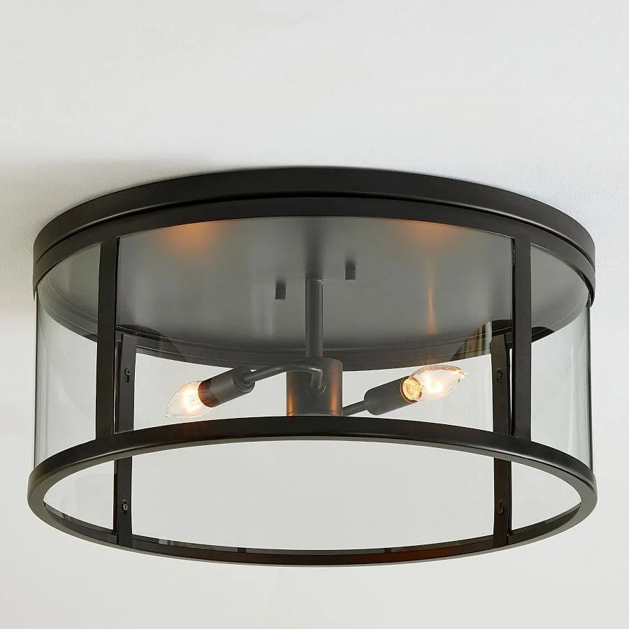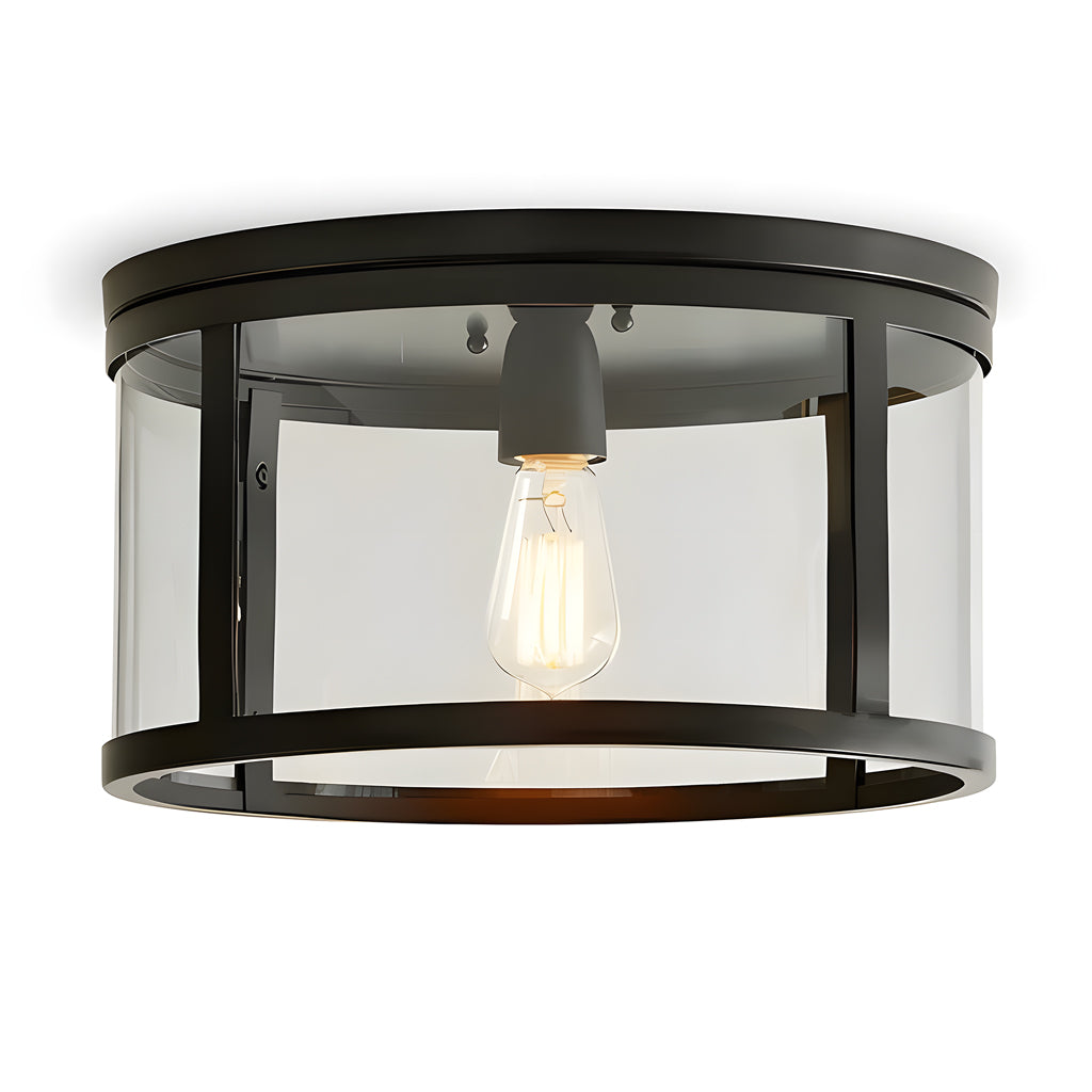 Nolan Industrial Round Clear Glass Flush Mount Ceiling Light