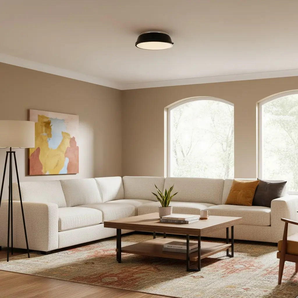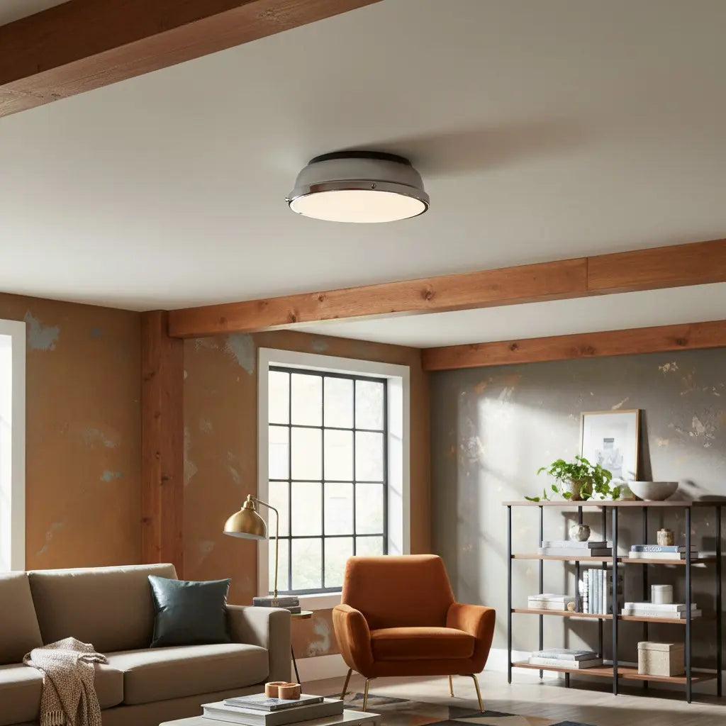 This modern industrial flush mount pairs sleek metal finishes with a streamlined silhouette, merging rugged charm and contemporary simplicity. Ideal for living room, bedroom, or hallway.