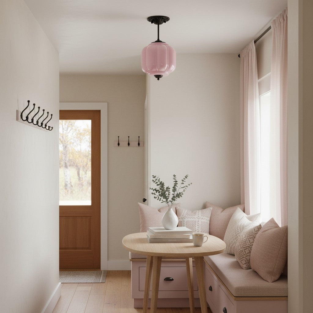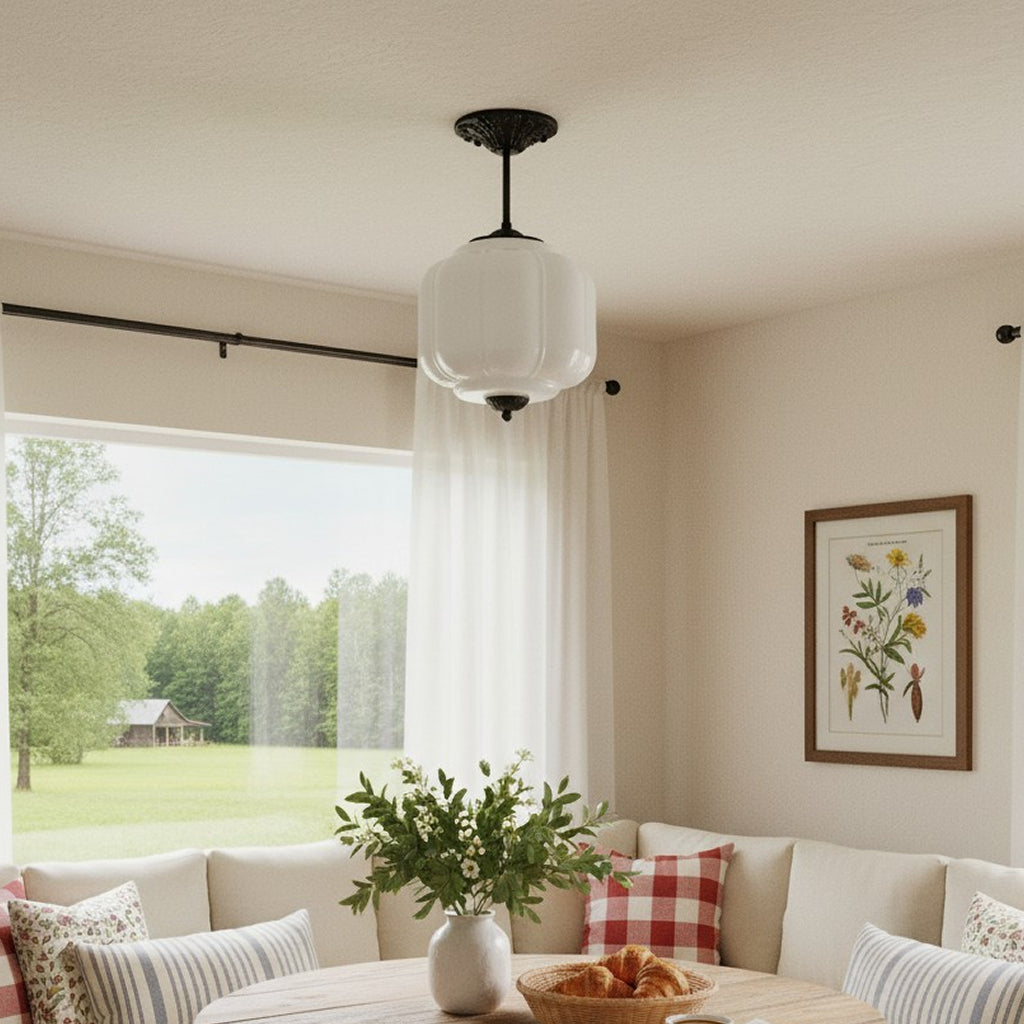 Featuring a lantern-inspired cream glass shade and black metal accents, this lamp brings a refined vintage flair to any living space, bedroom, or dining area.