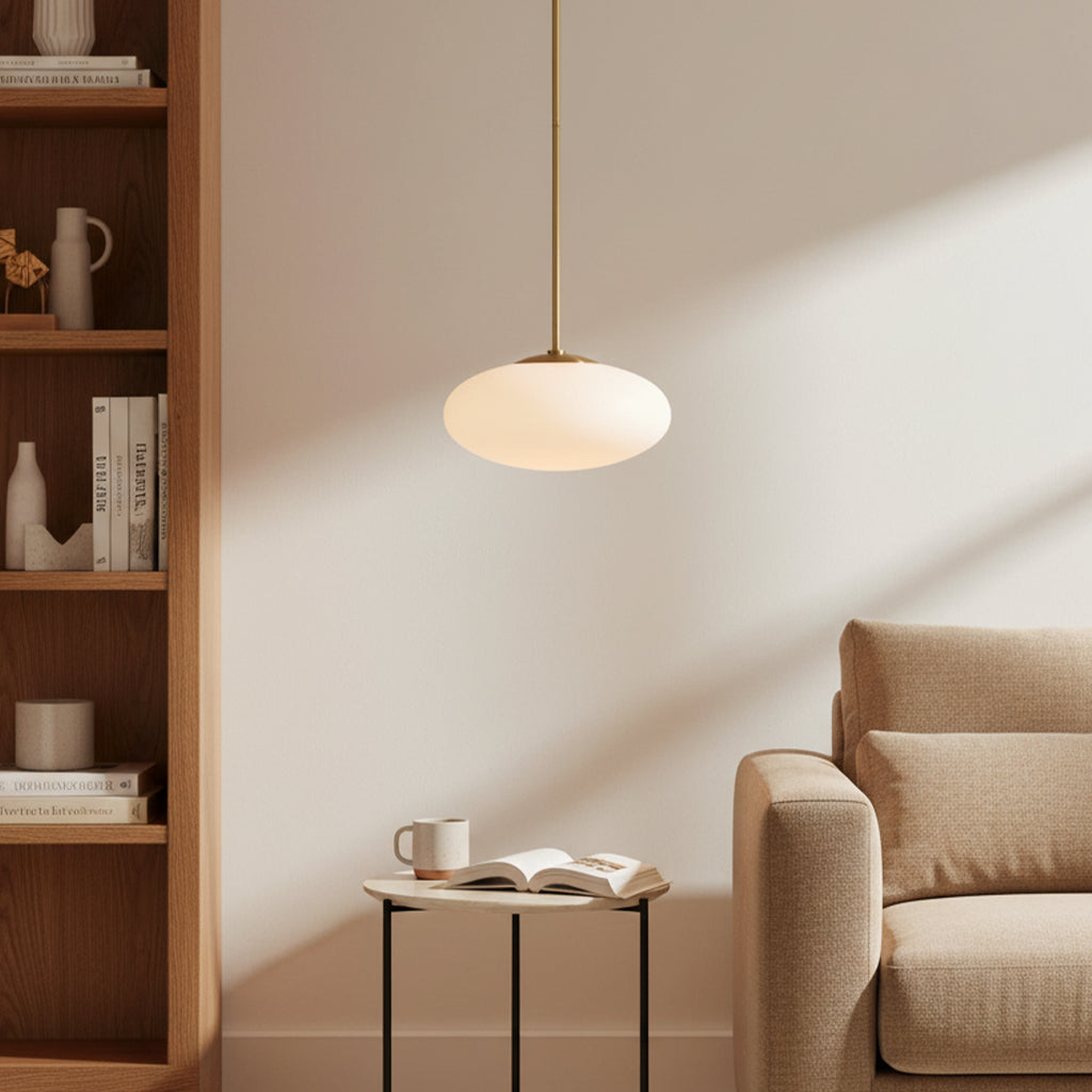 Combining sleek brass accents with soft opal glass, the Thalia Modern Brass Opal Glass Pendant Light adds contemporary elegance to kitchens, dining areas, or entryways. Its minimalist silhouette emits a warm, diffused glow.