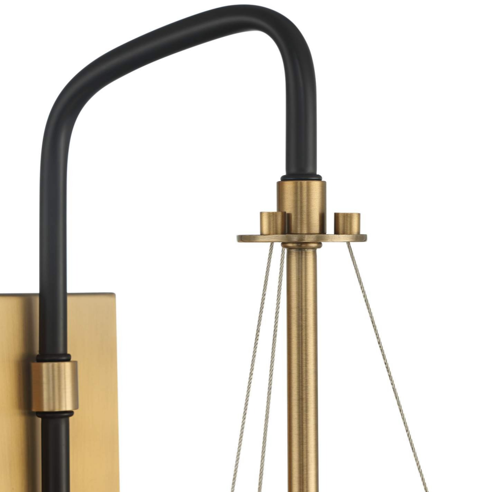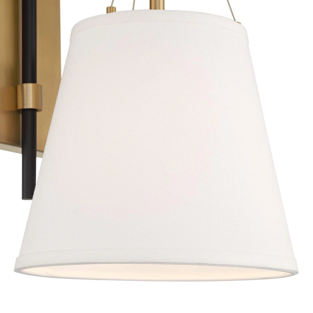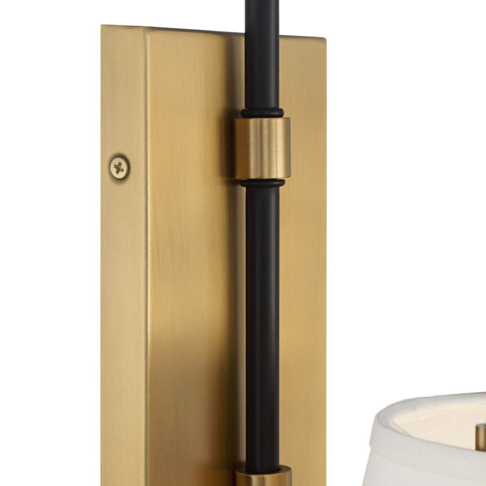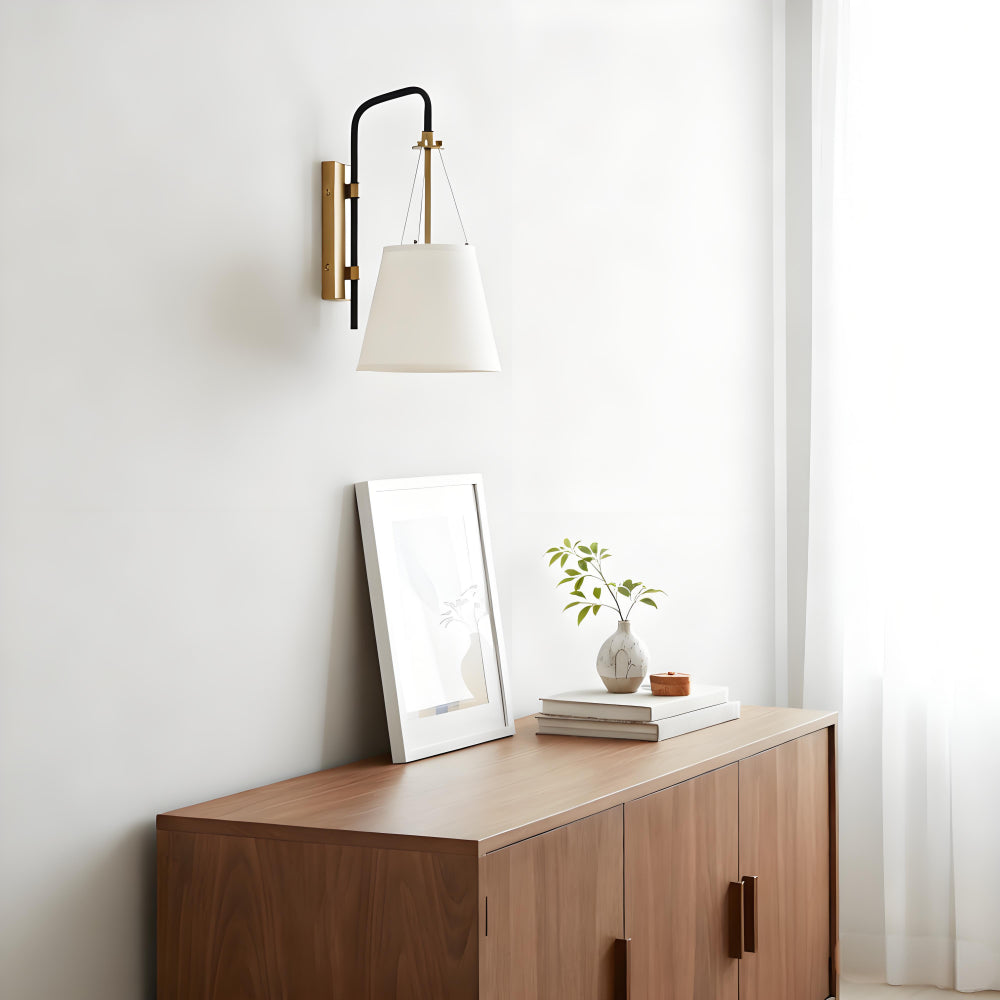 The Wall Sconce combines warm brass - toned metal with a sleek black arm, crowned by a soft white linen shade. Perfect for bedside nooks, entryways.