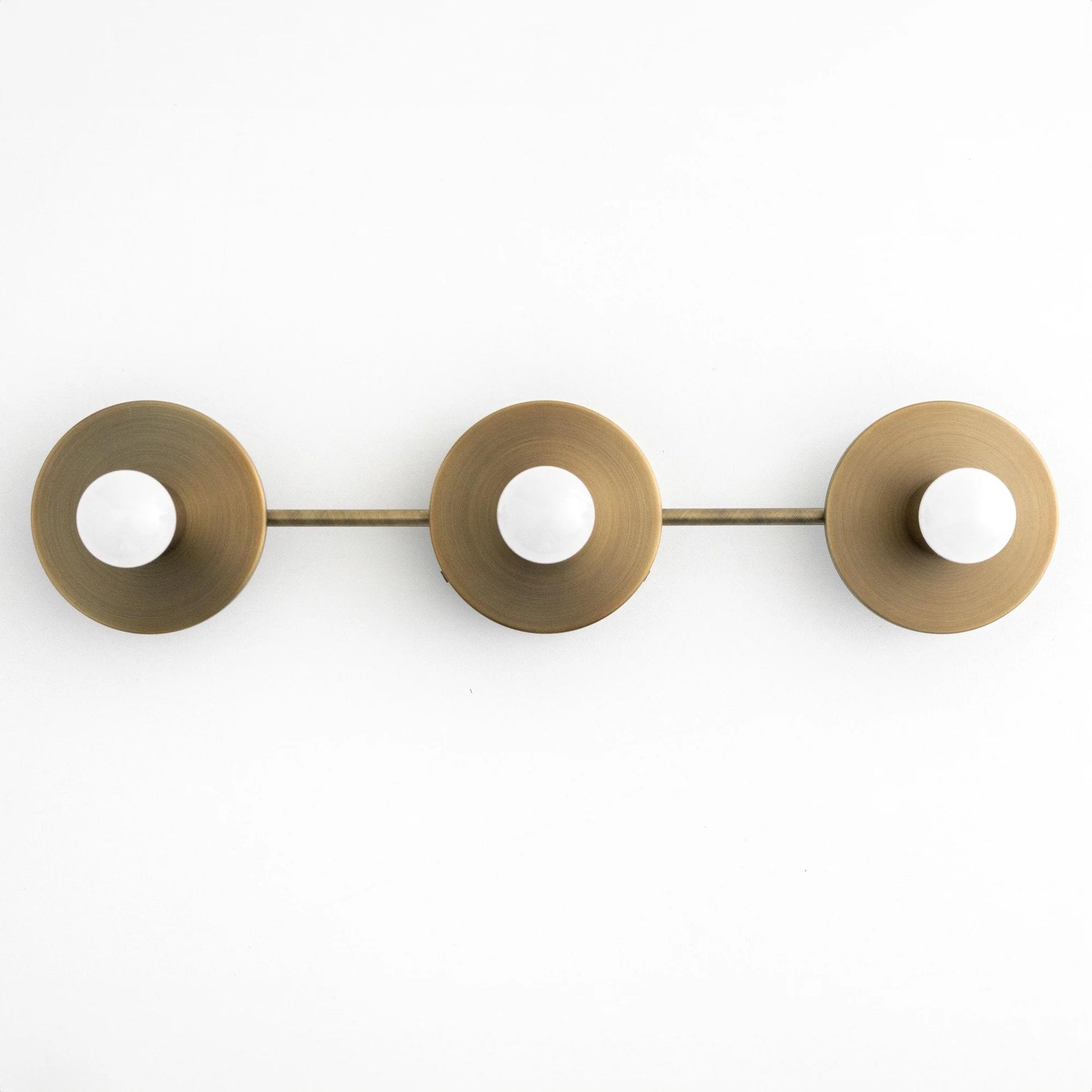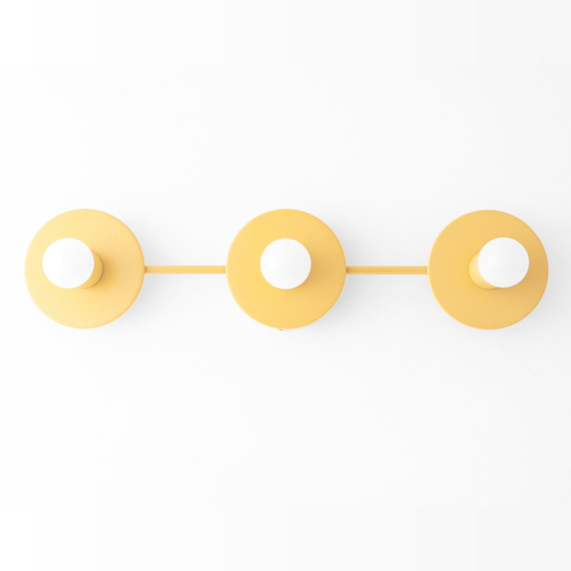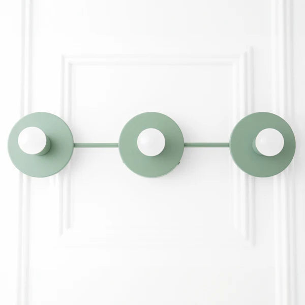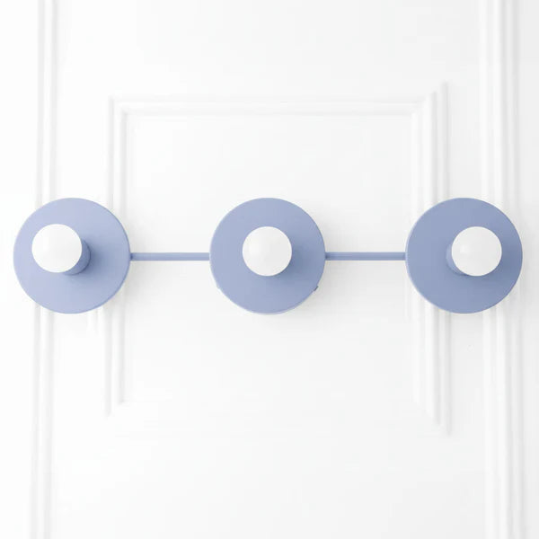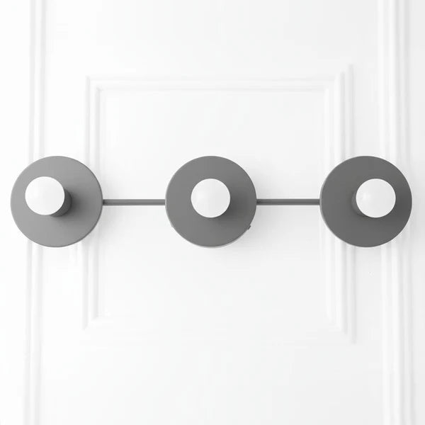 The light is a modern, spherical-inspired 3-light vanity fixture that balances minimalist form with soft elegance. Its clean lines are grounded by a 5″ wall backplate and finished in a durable powder-coat—available in 10 refined hues. It delivers striking vertical presence without overt bulk.
