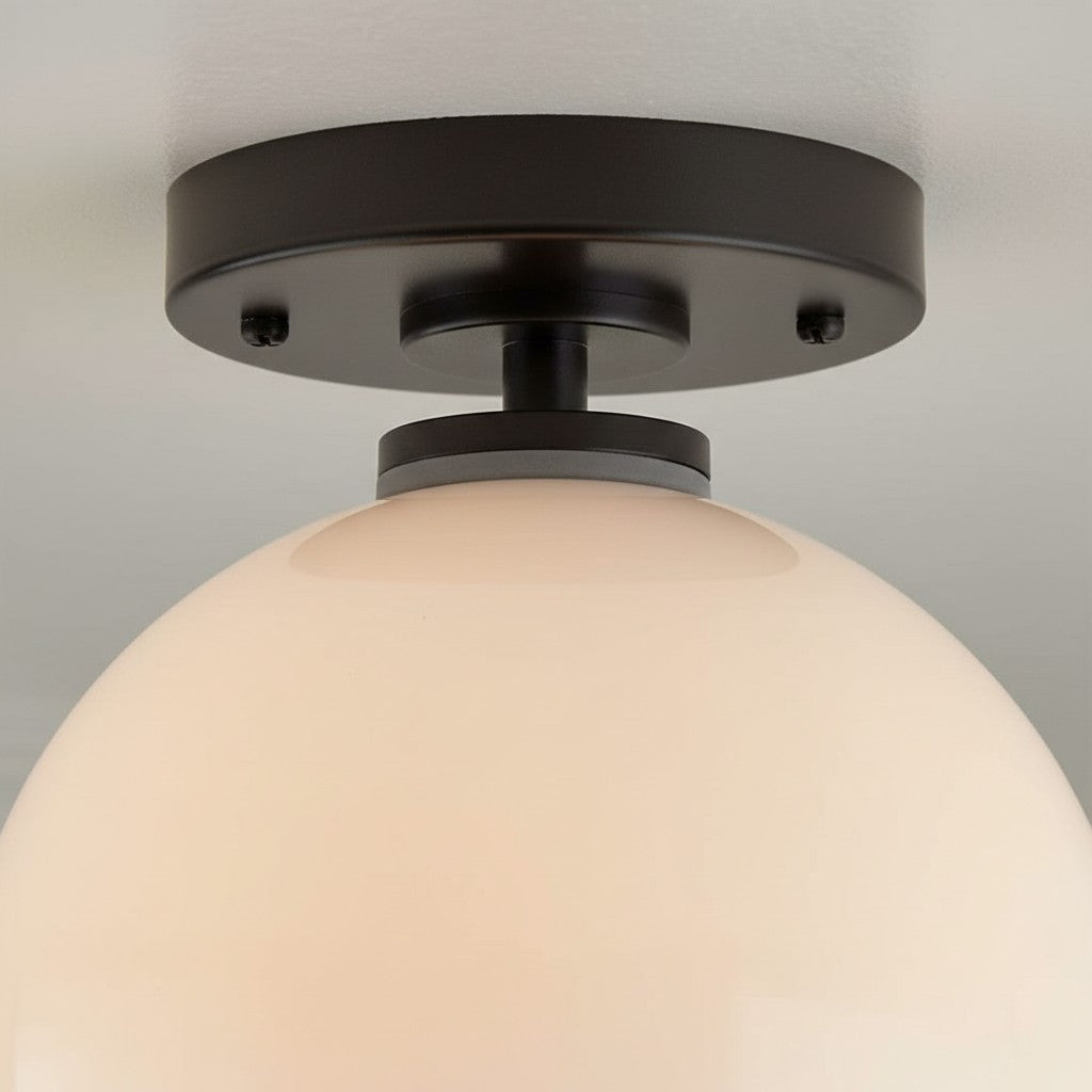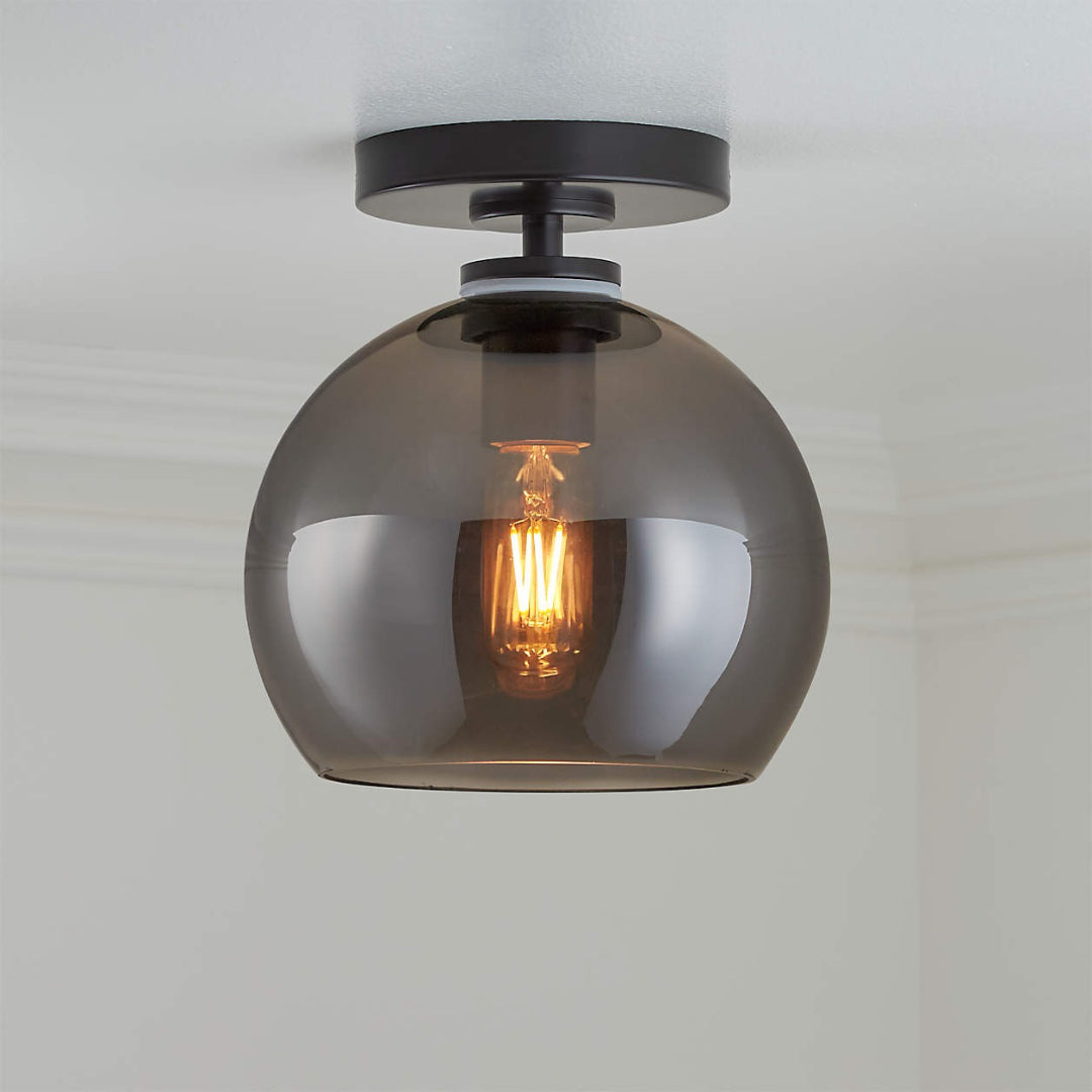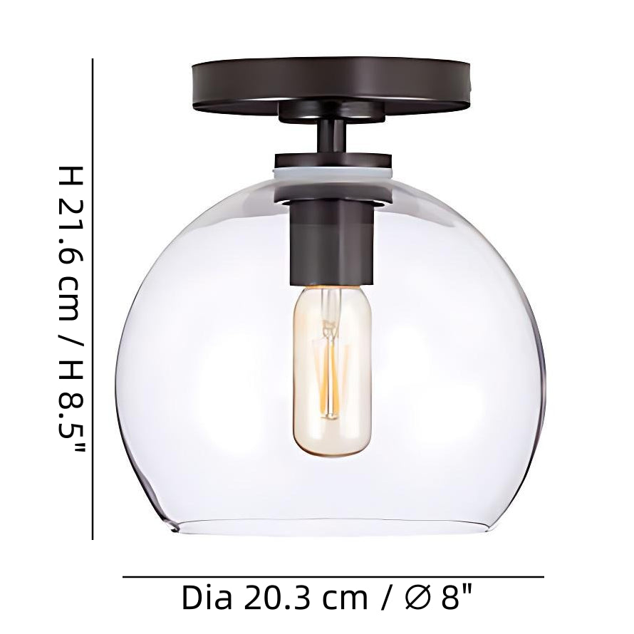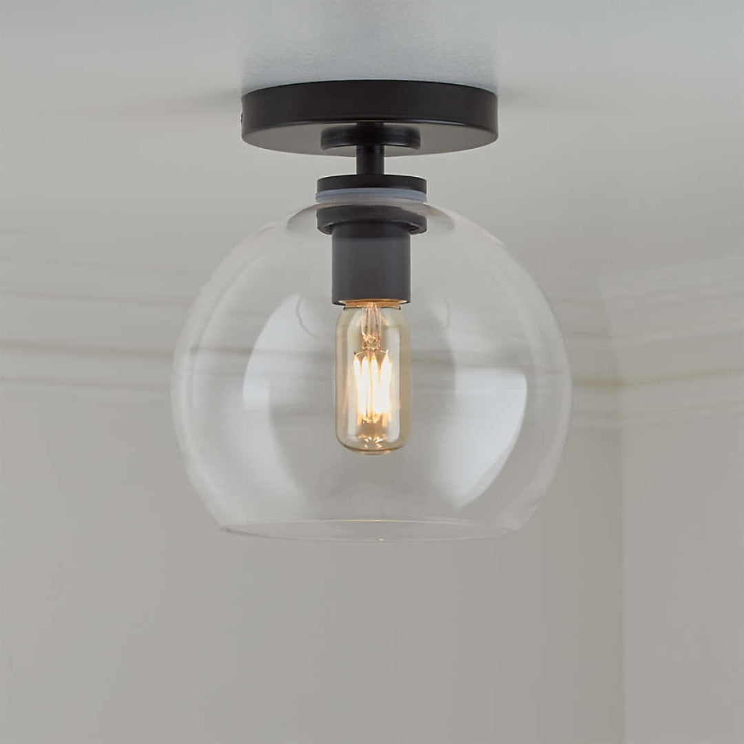 This ceiling light features clean lines, and its rounded glass shade creates a beautiful contrast with the iron fixture.