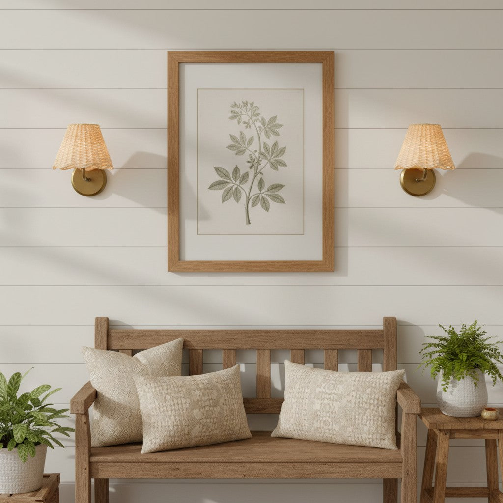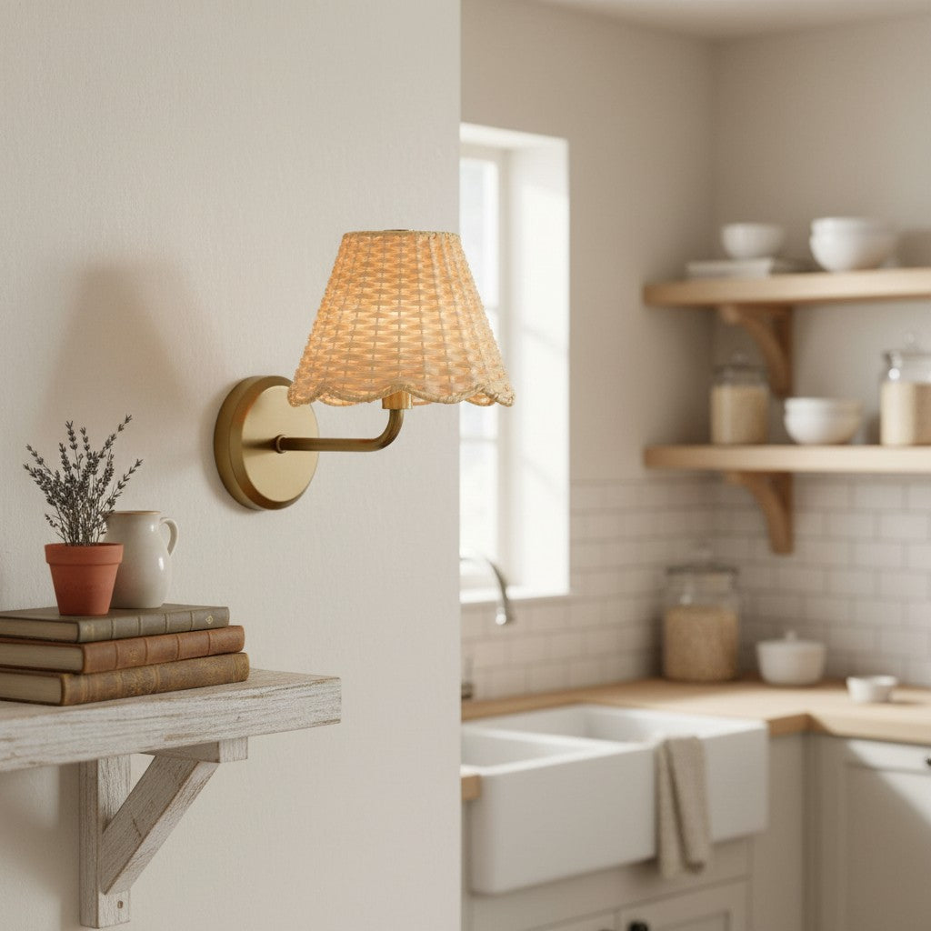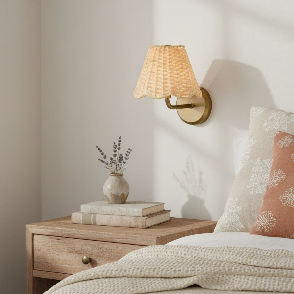 The Crosby Wall Sconce combines rustic charm with modern sophistication. Its woven rattan shade and iron base create a warm and inviting glow, making it ideal for living rooms, bedrooms, or hallways.