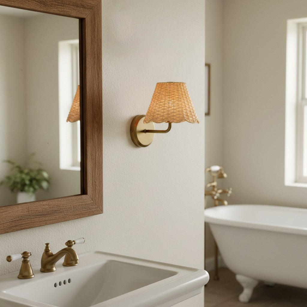 Crosby Rustic Woven Rattan Lantern Wall Sconce