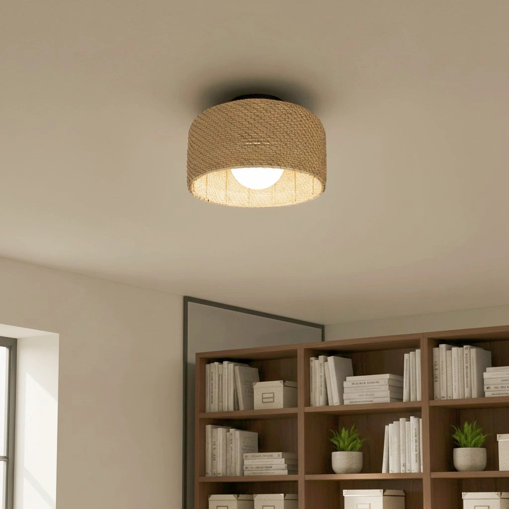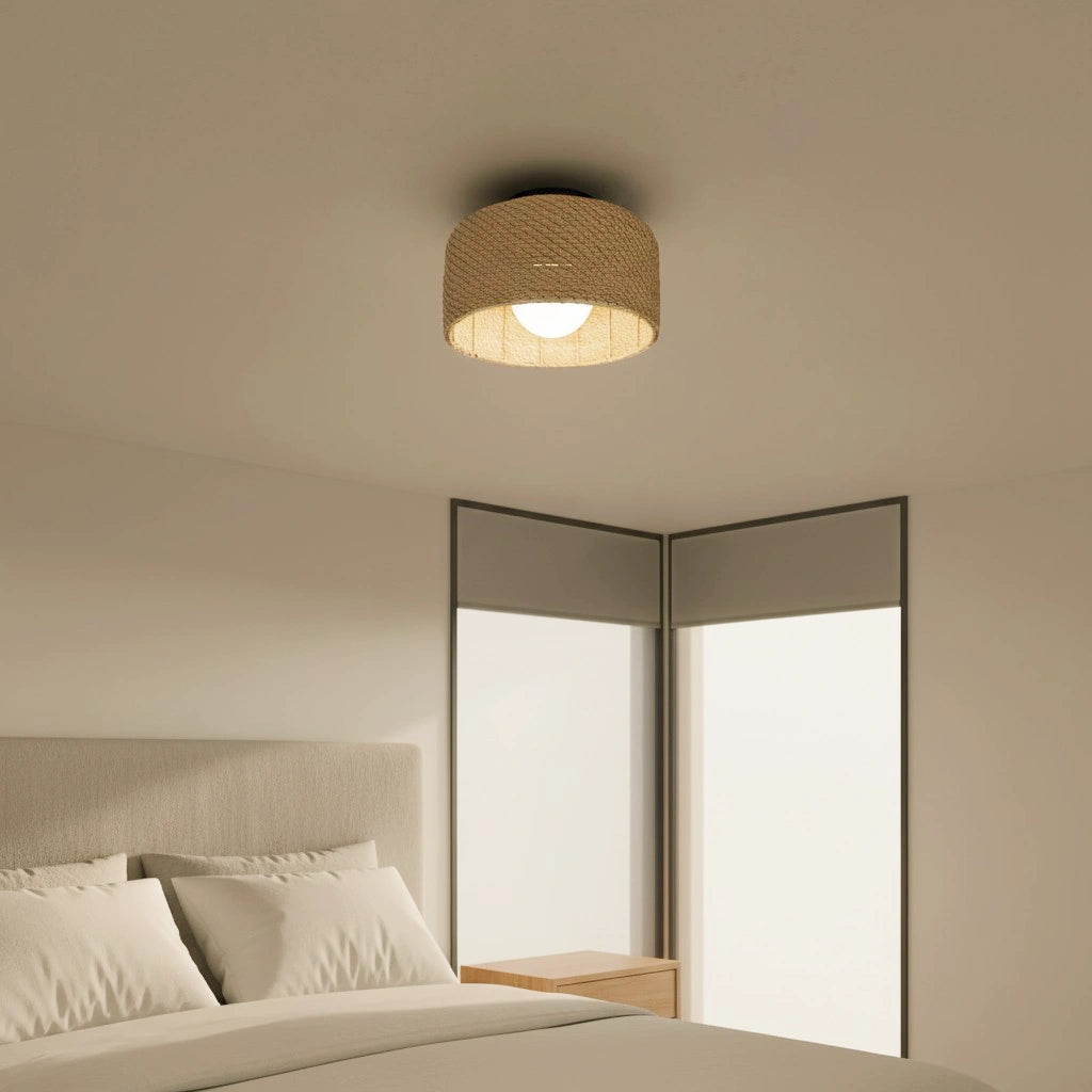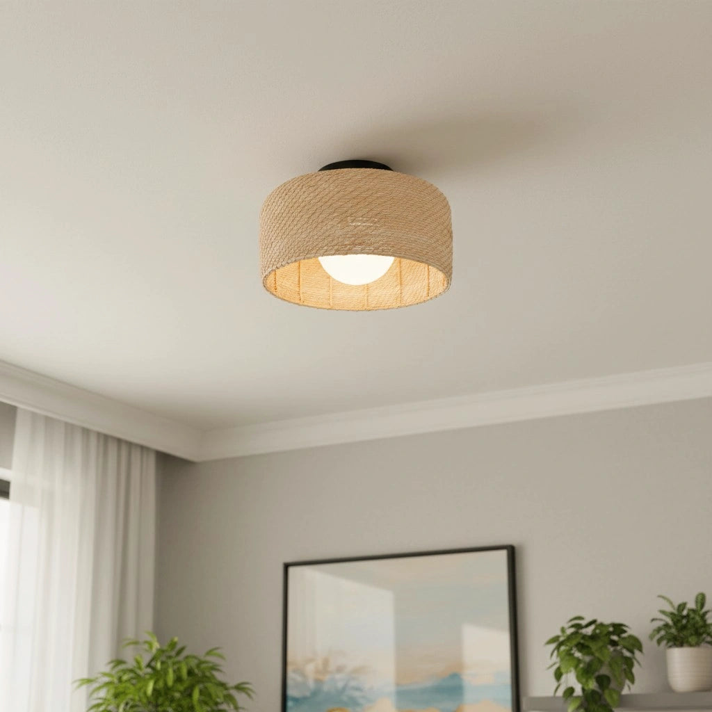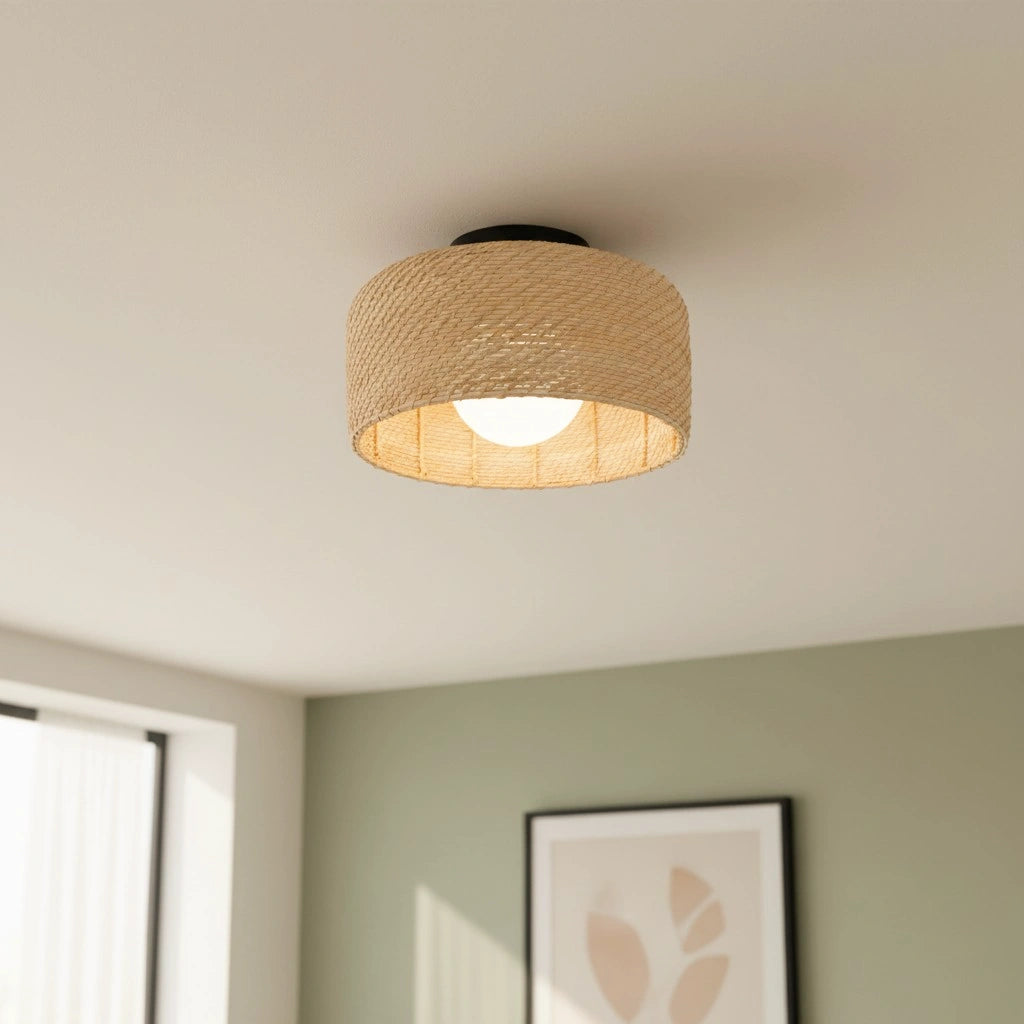 This erica ceiling light features a rattan shade that provides a soft, even ambiance, while the frosted plastic diffuser adds a touch of understated elegance. It's perfect for living rooms, bedrooms, hallways, and entryways.