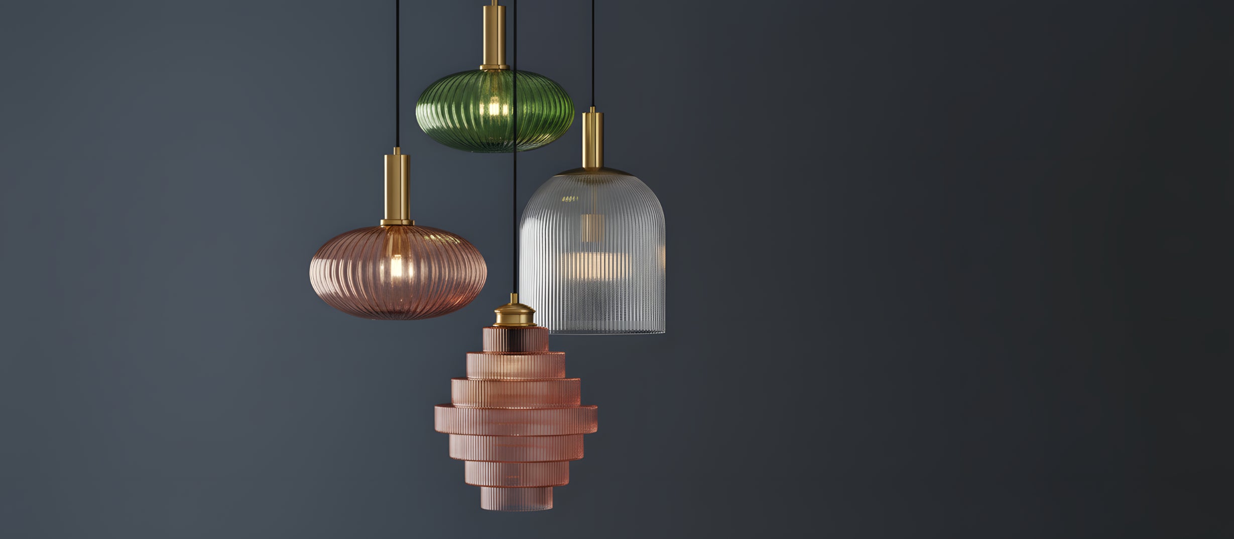 ribbed glass and bright colors to enhance the stunning illumination reflected on glass. Lucia ribbed-glass series blends stylish design into timeless elegance of glass to create lights with rich texture and fun.
